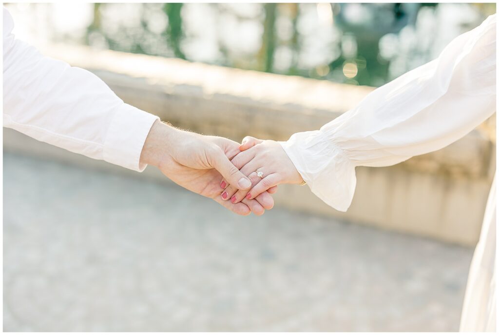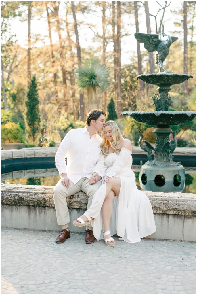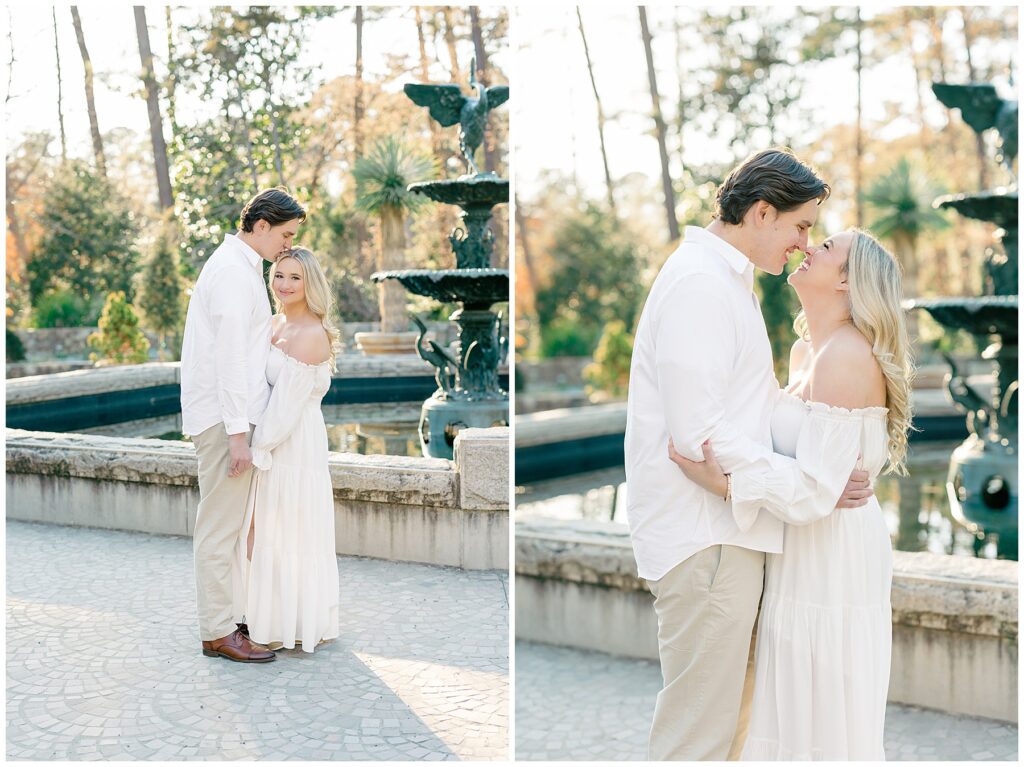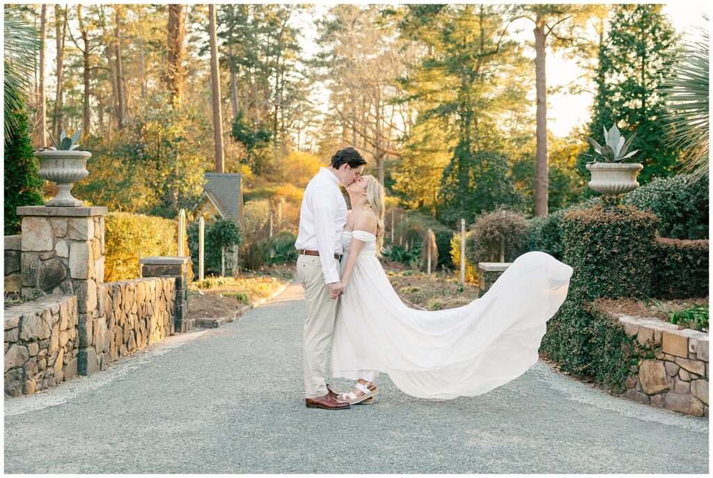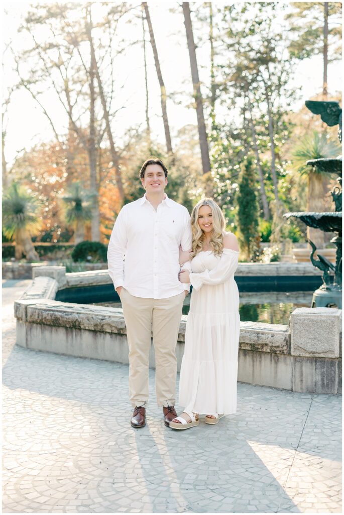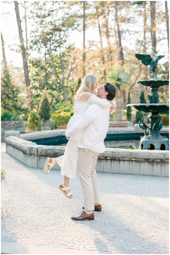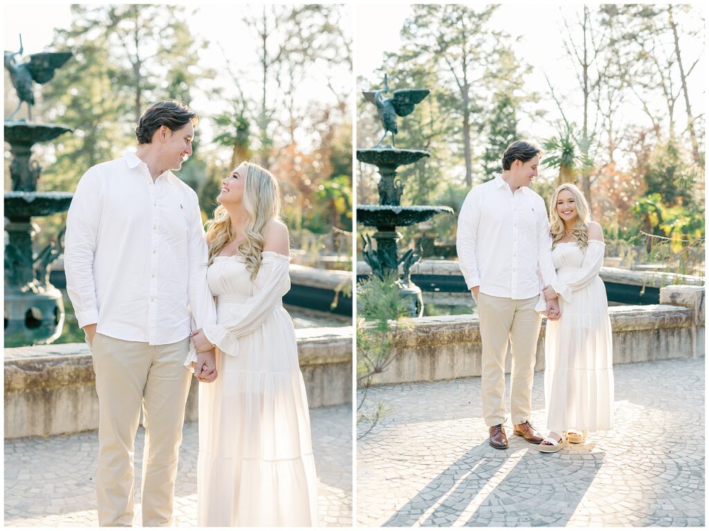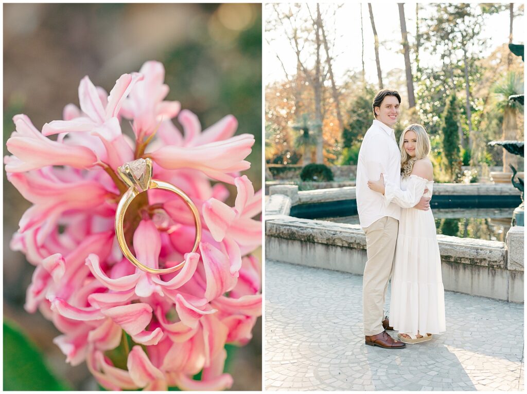 We had such a beautiful and sunny day for Diana and Alex’s Engagement Session! It was our first time meeting these two in person since they live in Atlanta, and we just had the best time together exploring the pretty spots in the gardens, chasing the lighting, and listening to 2000’s pop music! Diana was going for an “angelic” vibe with the photos – and thanks to that stunning sunshine – we got the glowiest photos where Diana in those white dresses truly looked like an angel!!! Wow!!! :)