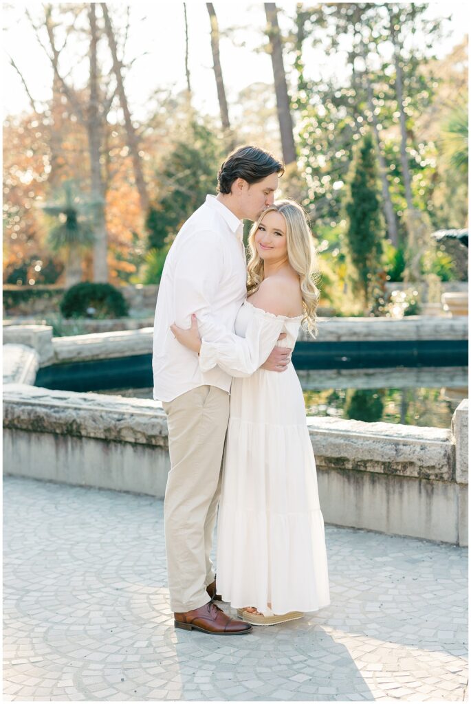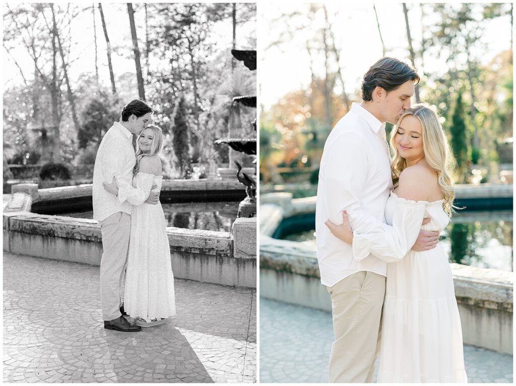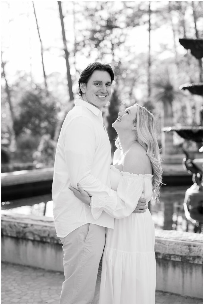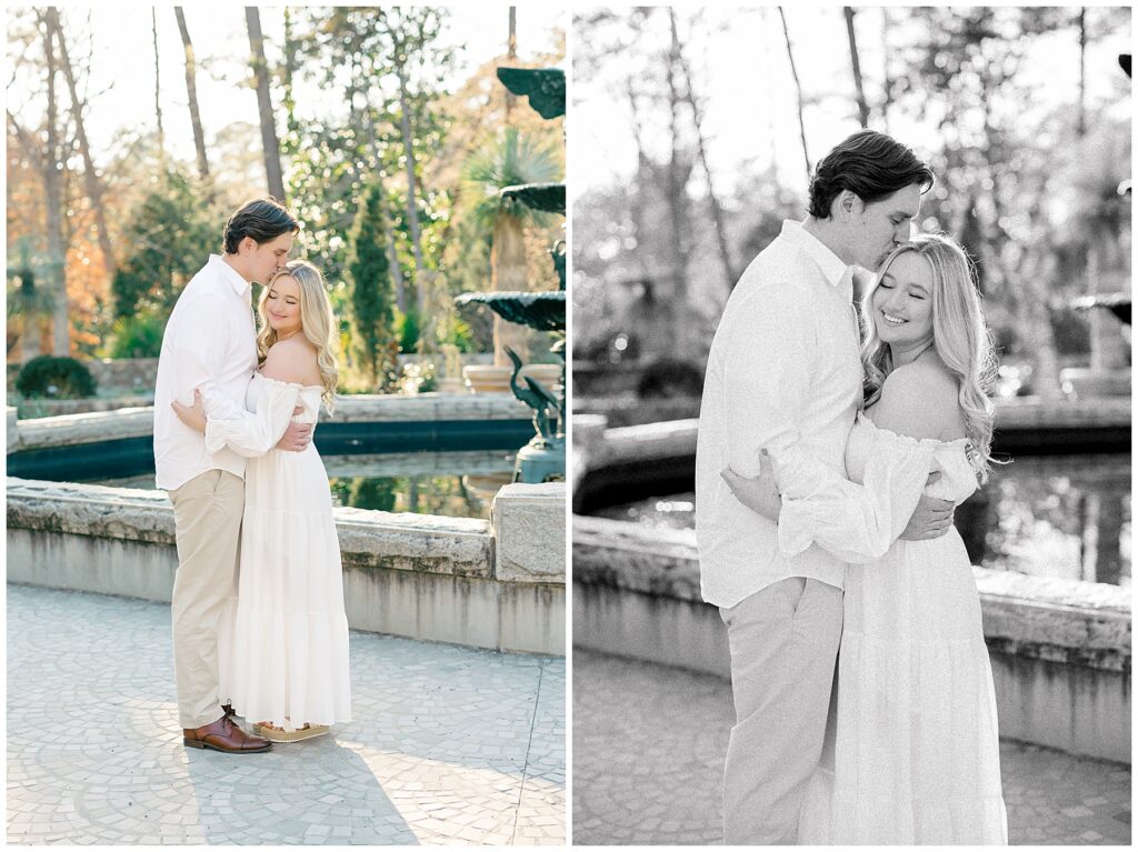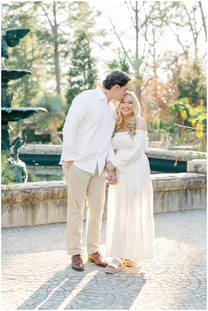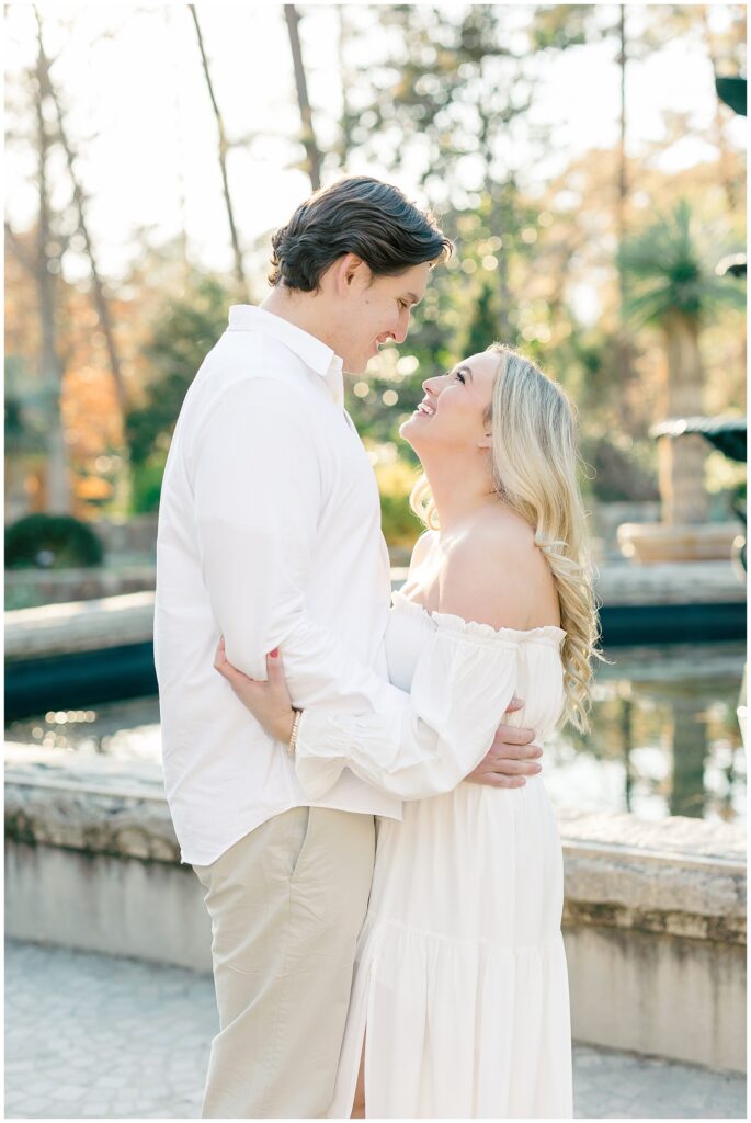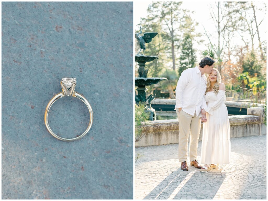 We had such a beautiful and sunny day for Diana and Alex’s Engagement Session! It was our first time meeting these two in person since they live in Atlanta, and we just had the best time together exploring the pretty spots in the gardens, chasing the lighting, and listening to 2000’s pop music! Diana was going for an “angelic” vibe with the photos – and thanks to that stunning sunshine – we got the glowiest photos where Diana in those white dresses truly looked like an angel!!! Wow!!! :)