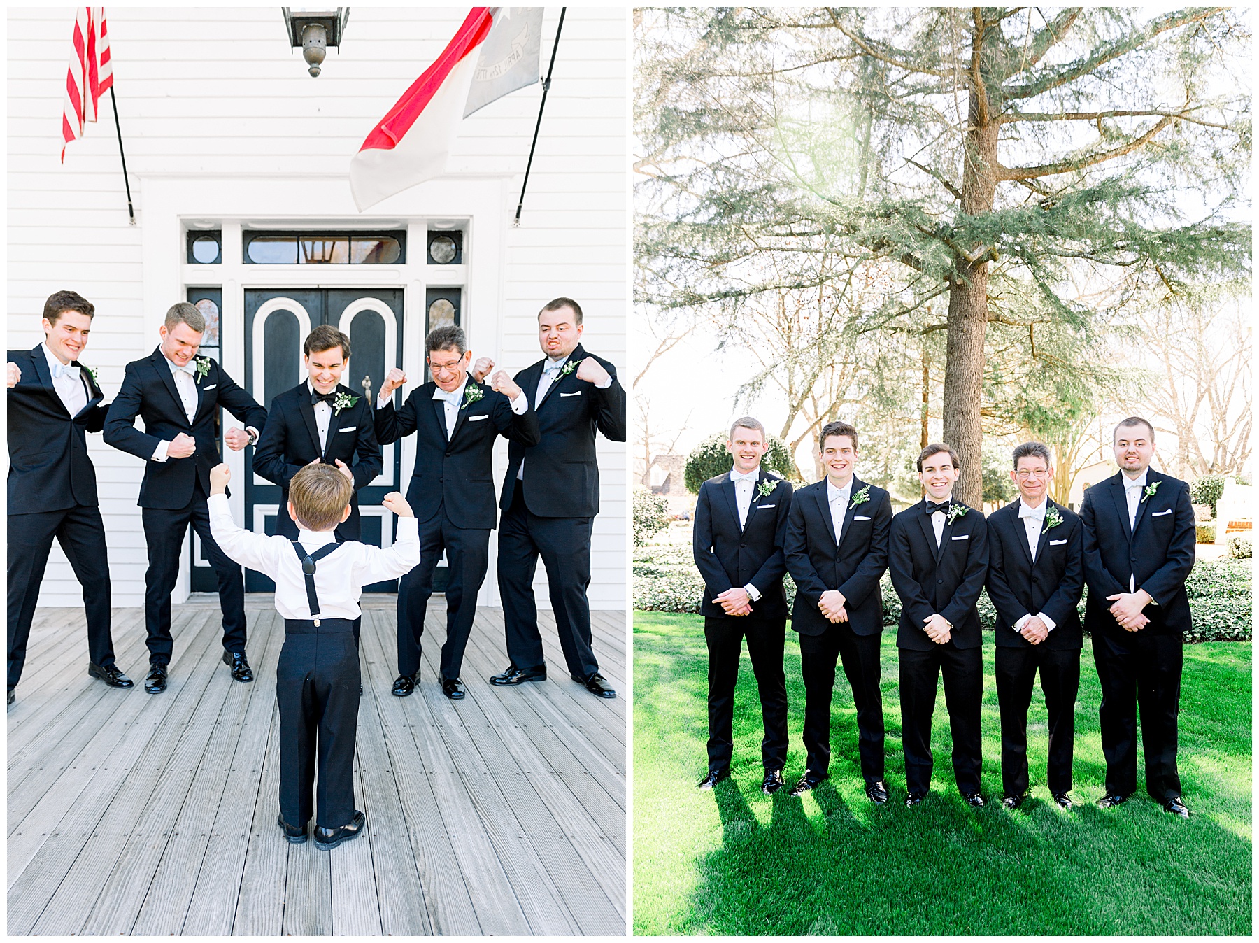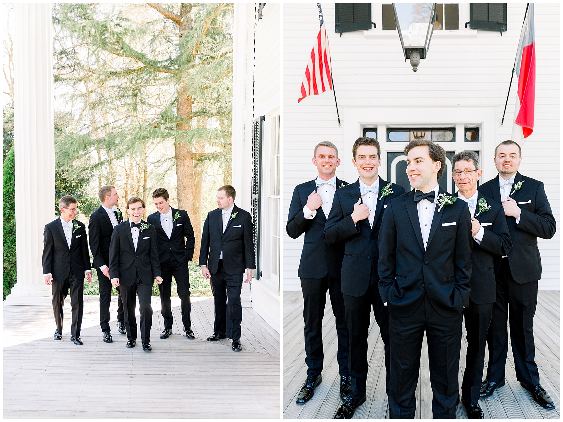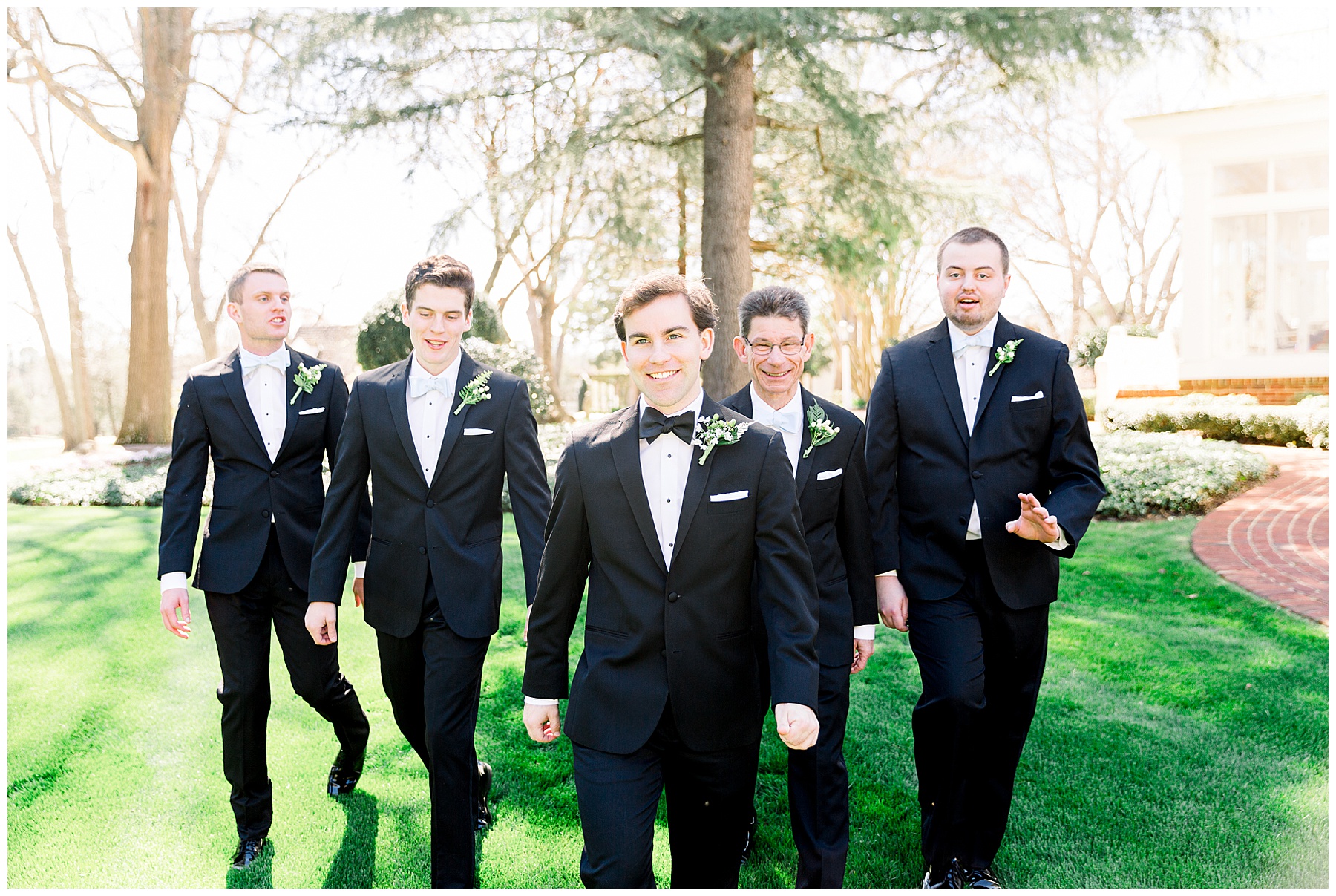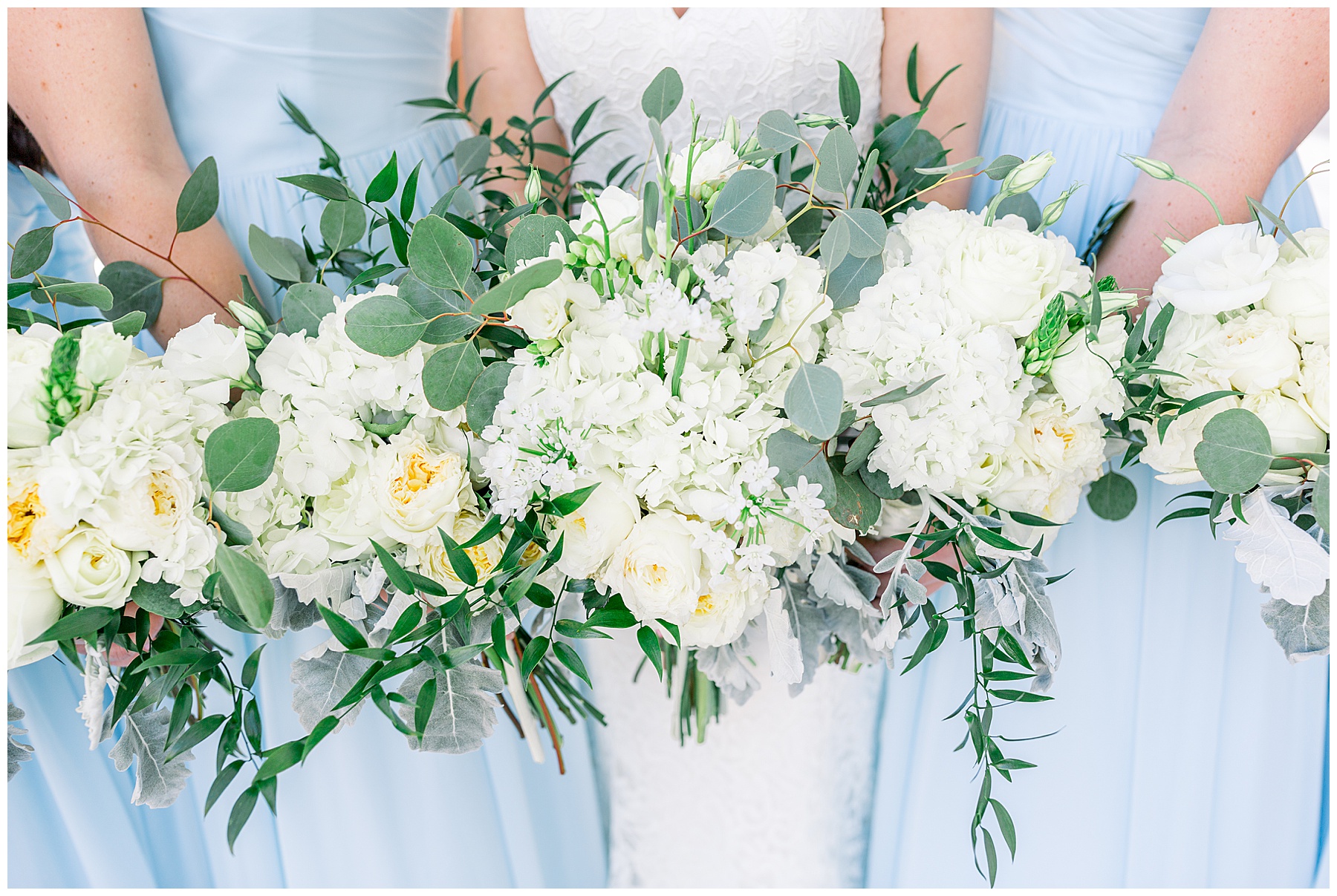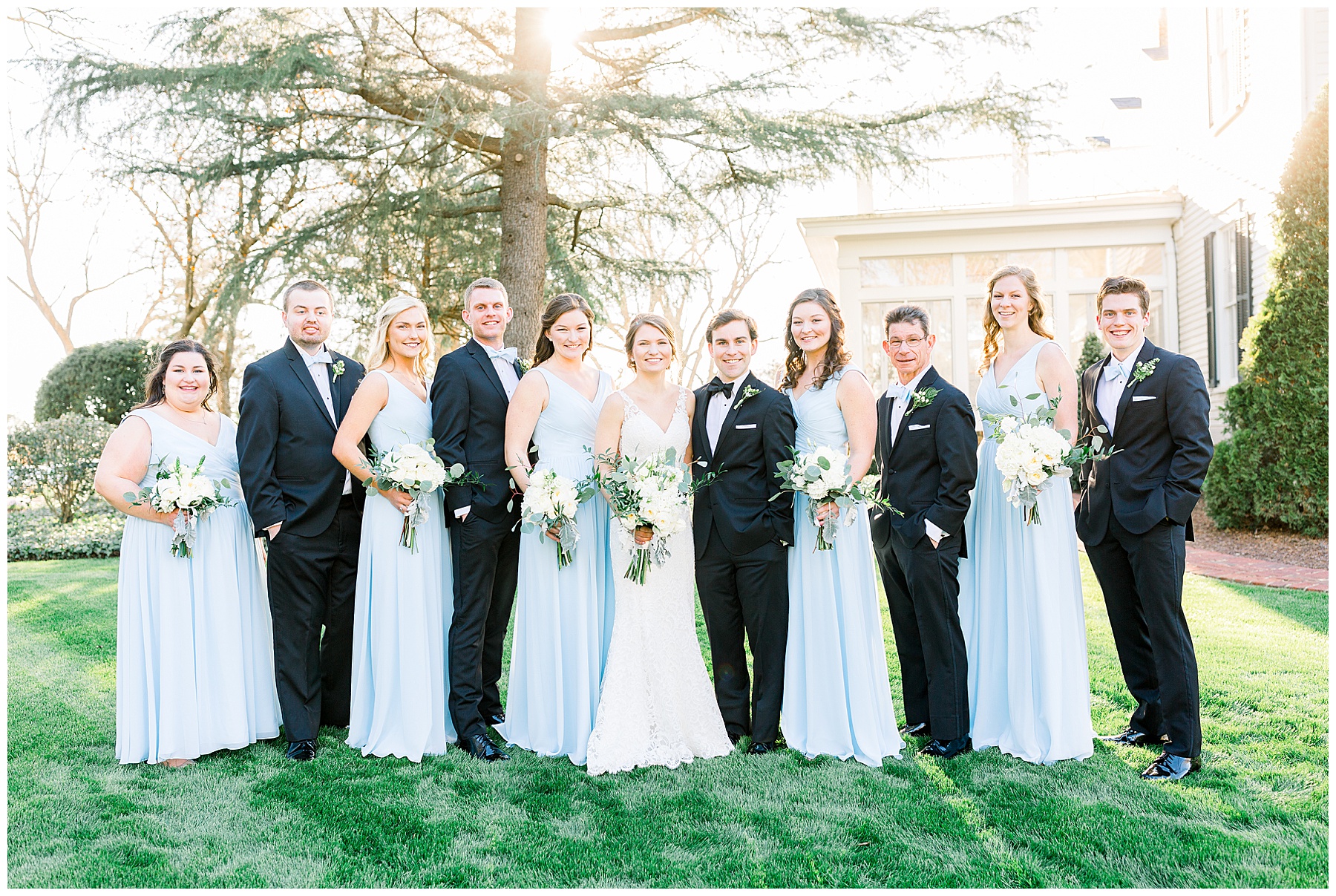 As both UNC grads, Emily and Matthew used touches of soft “Tarheel blue” throughout the day, and I LOVED how classic the guys looked in their tuxes, with a little pop of blue on their bowties! The ladies looked stunning in the blue with white and greenery in their bouquets! It was one of my FAVORITE bridal party combinations I’ve ever photographed!