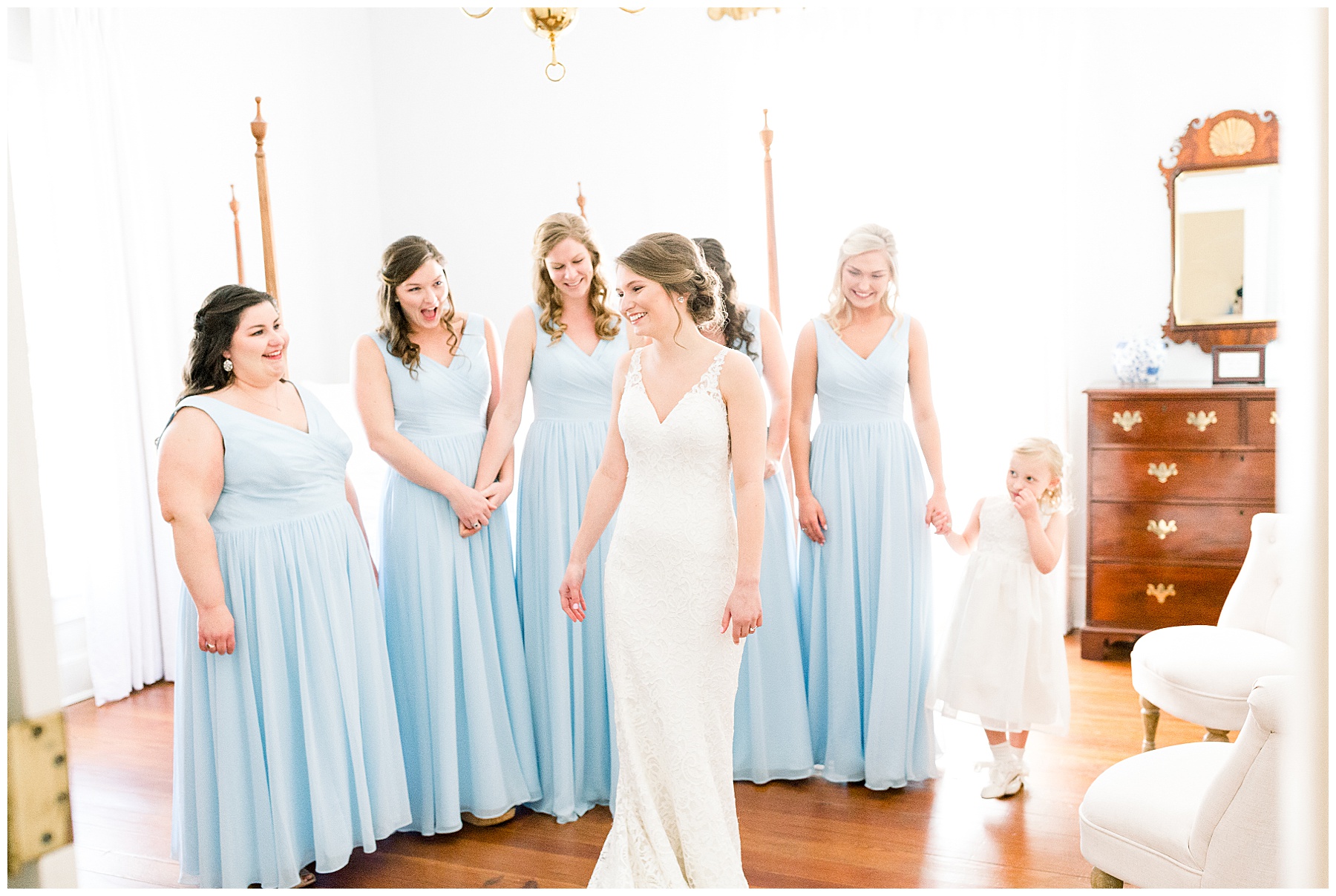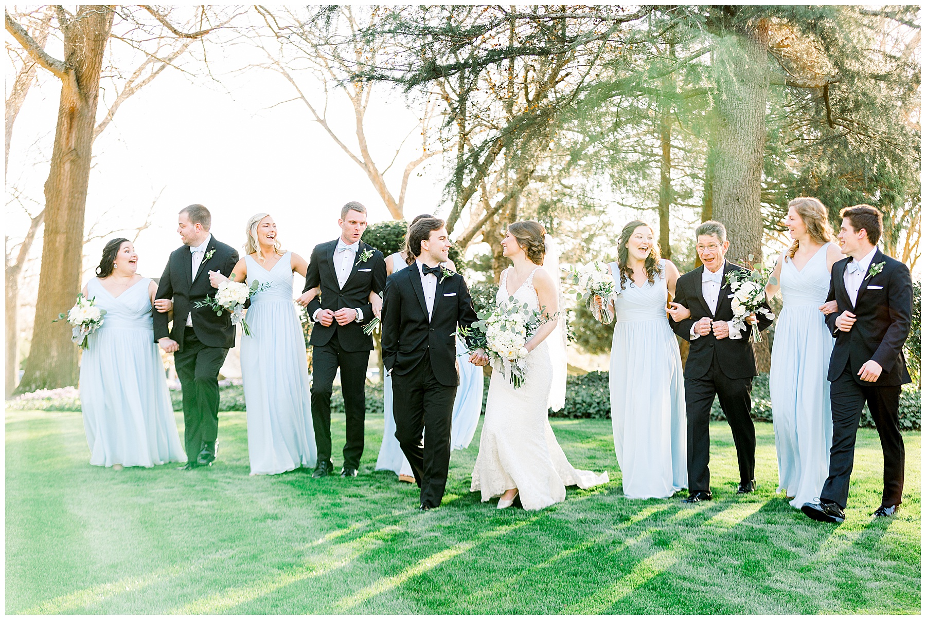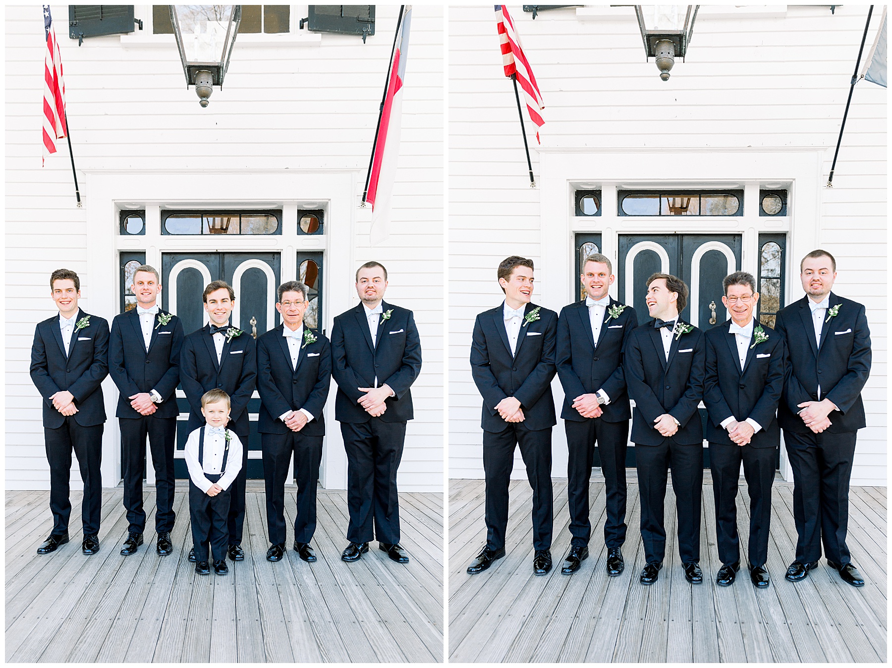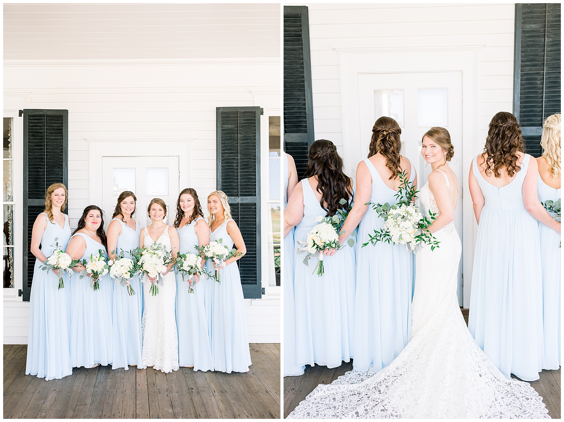 As both UNC grads, Emily and Matthew used touches of soft “Tarheel blue” throughout the day, and I LOVED how classic the guys looked in their tuxes, with a little pop of blue on their bowties! The ladies looked stunning in the blue with white and greenery in their bouquets! It was one of my FAVORITE bridal party combinations I’ve ever photographed!