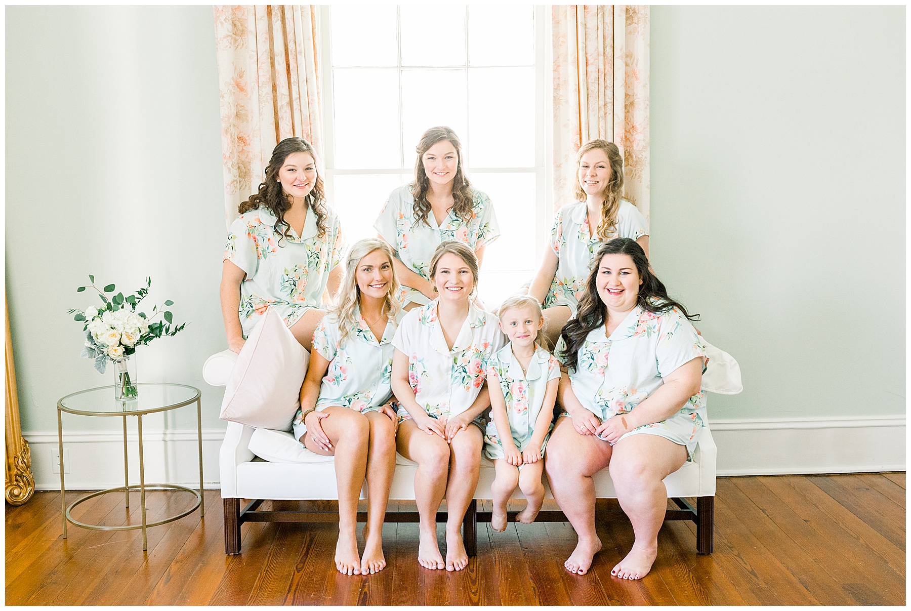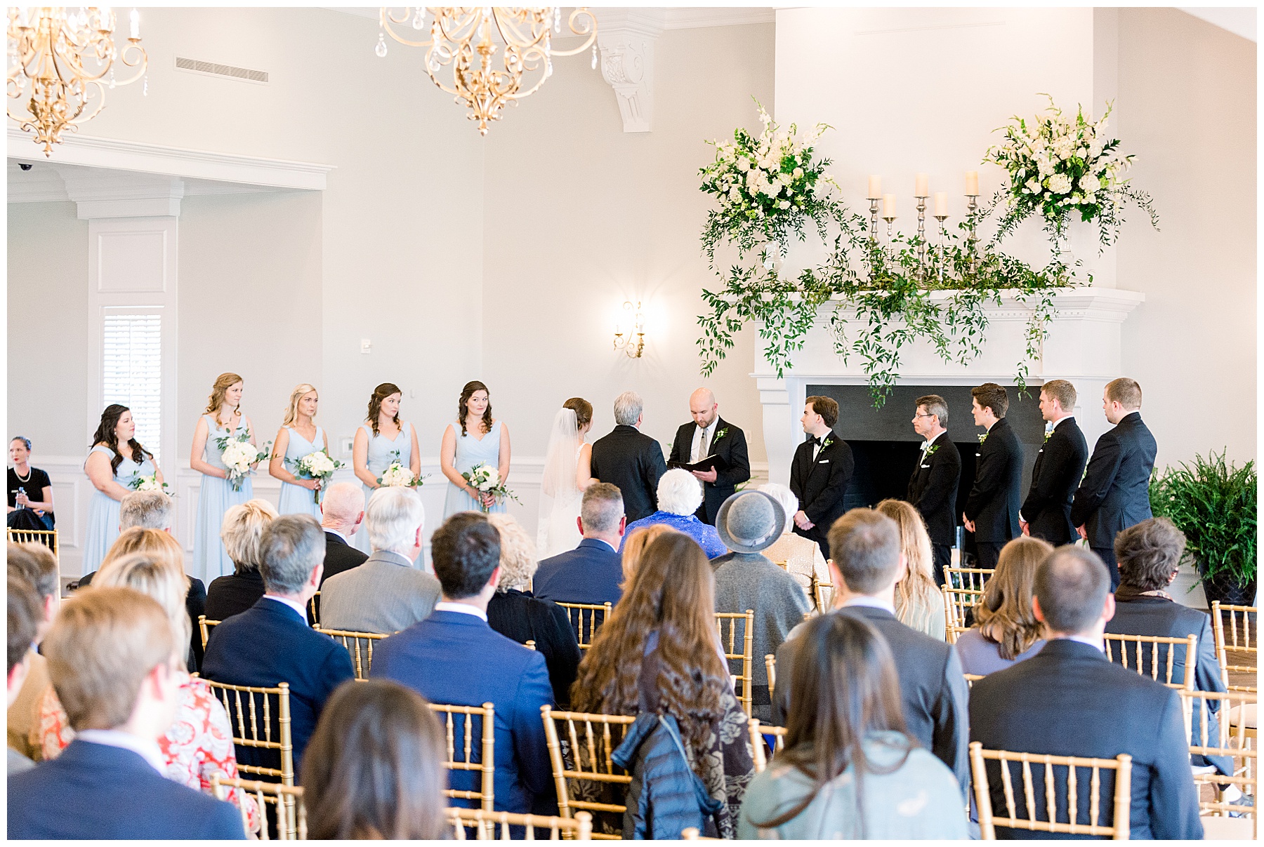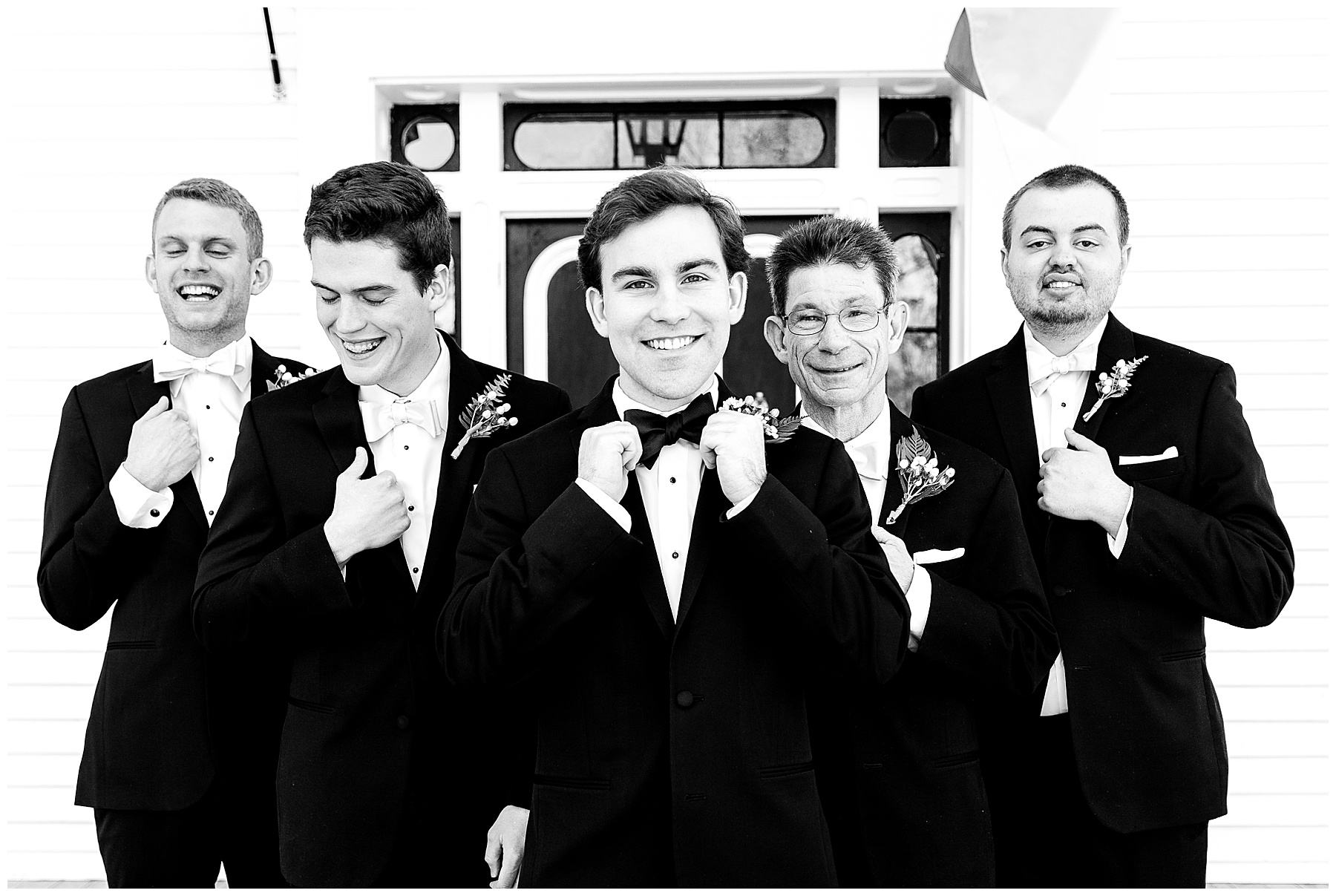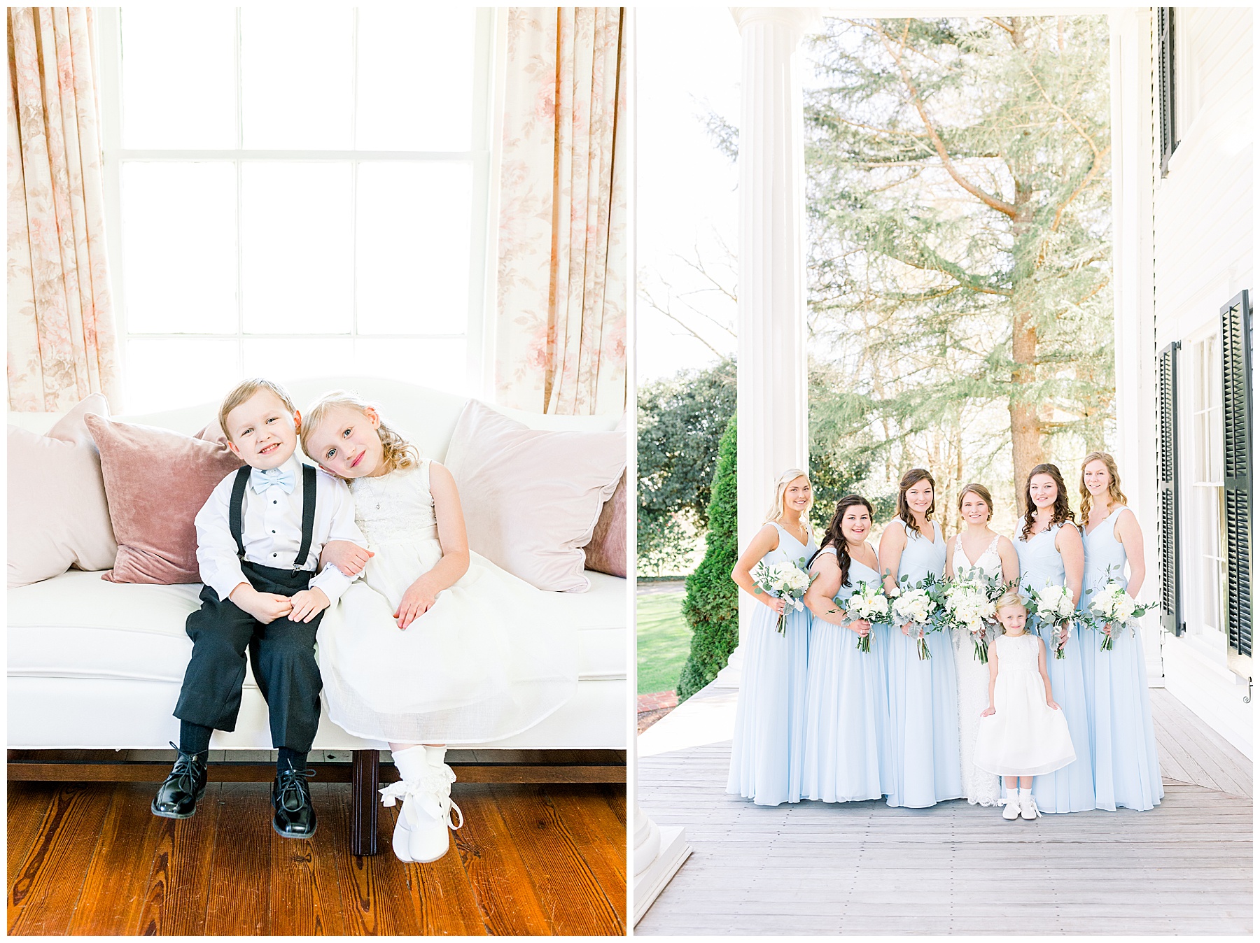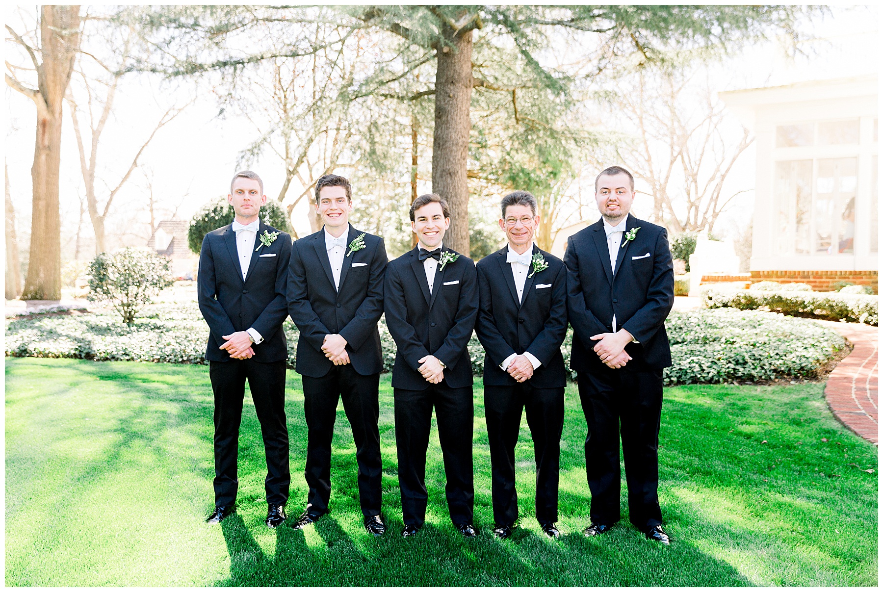 As both UNC grads, Emily and Matthew used touches of soft “Tarheel blue” throughout the day, and I LOVED how classic the guys looked in their tuxes, with a little pop of blue on their bowties! The ladies looked stunning in the blue with white and greenery in their bouquets! It was one of my FAVORITE bridal party combinations I’ve ever photographed!