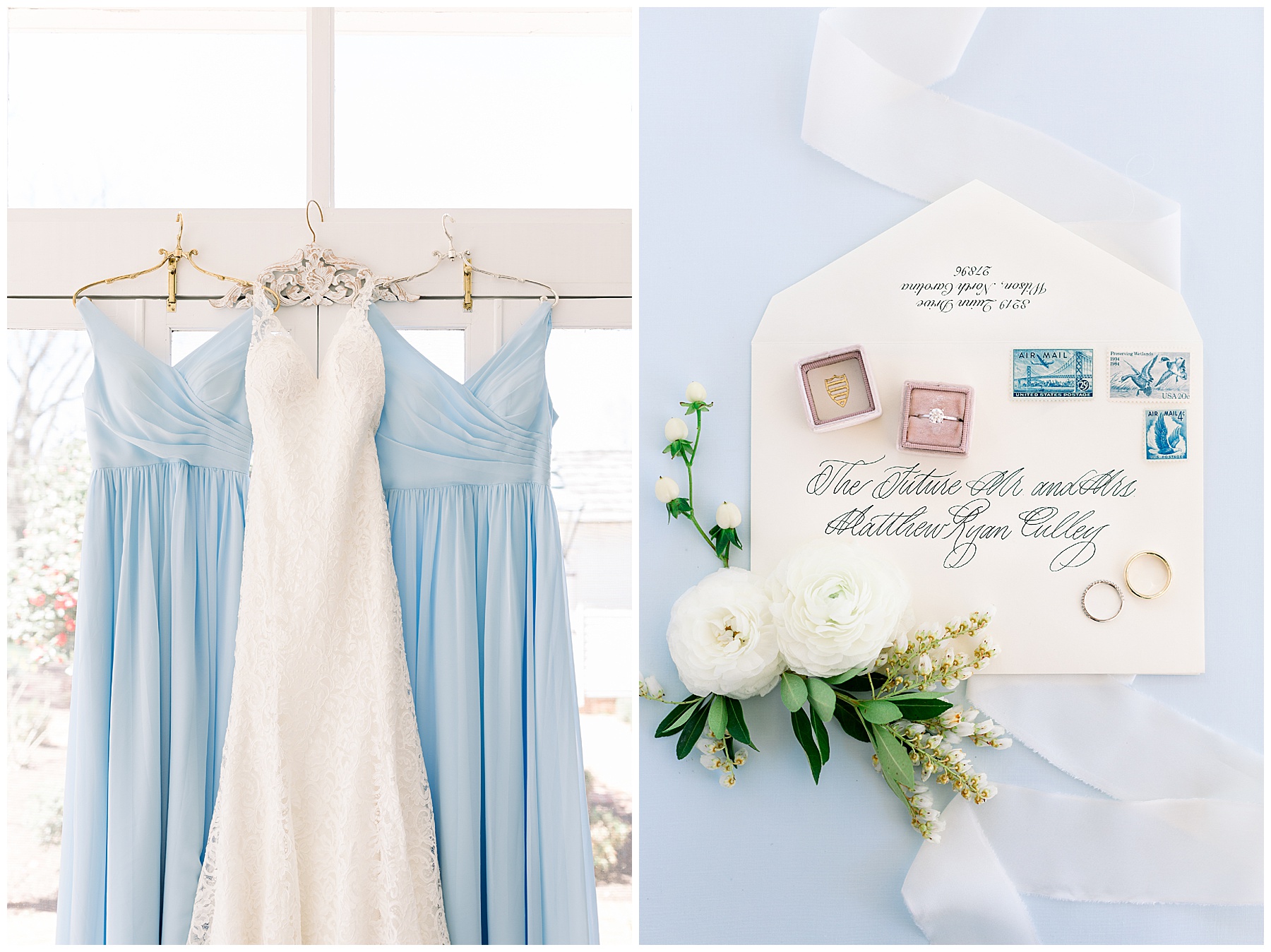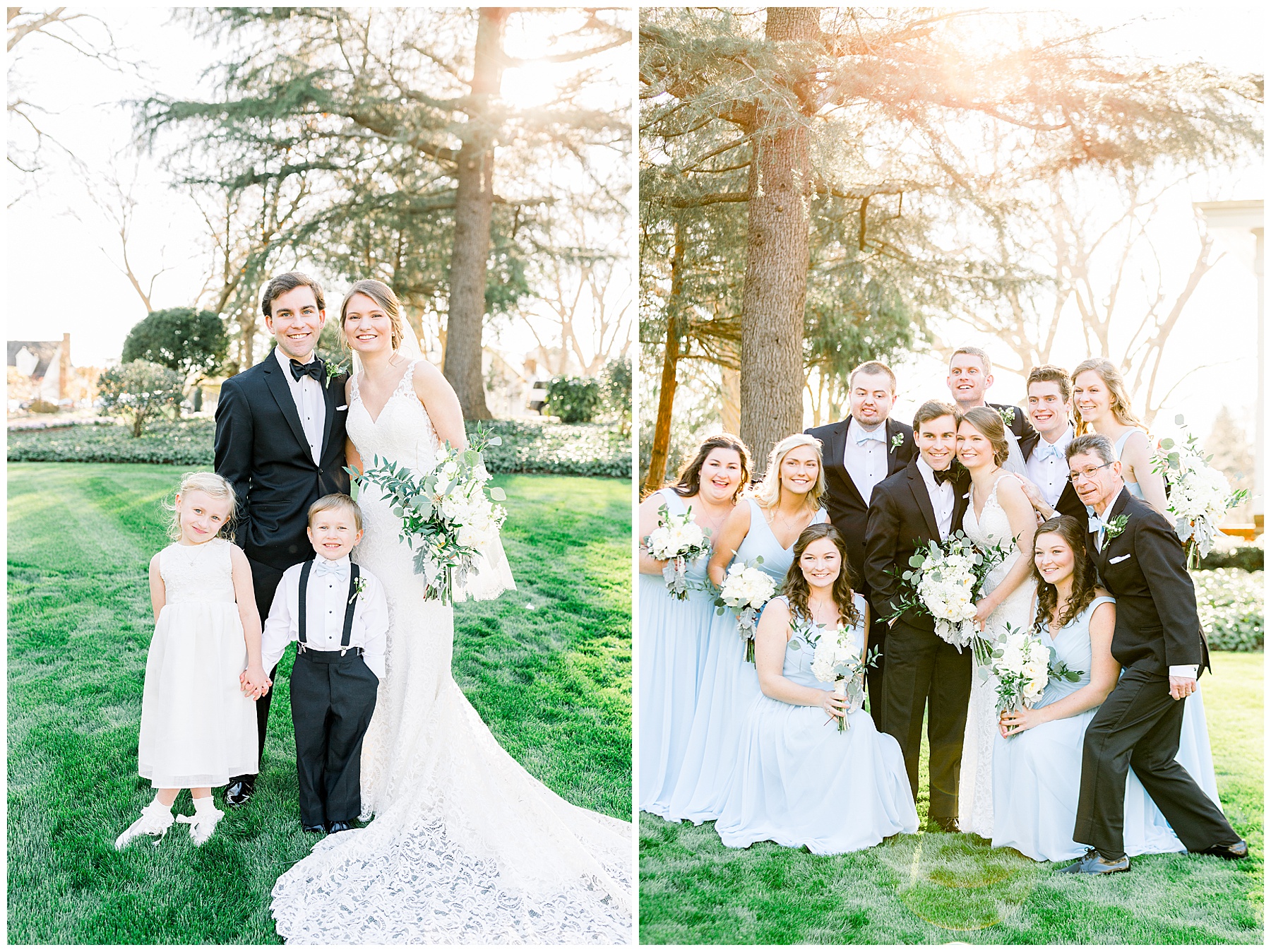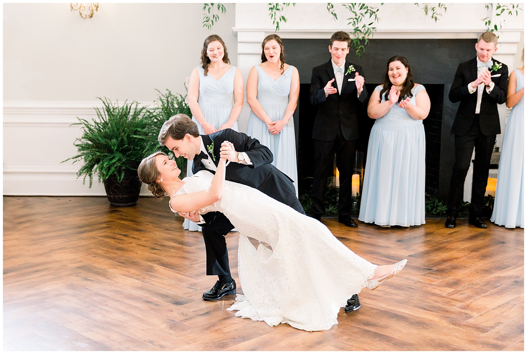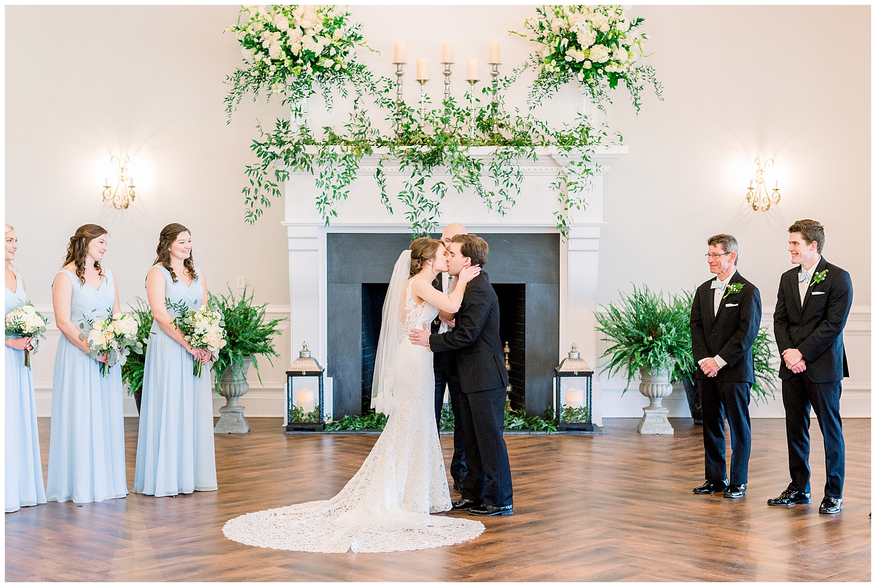 As both UNC grads, Emily and Matthew used touches of soft “Tarheel blue” throughout the day, and I LOVED how classic the guys looked in their tuxes, with a little pop of blue on their bowties! The ladies looked stunning in the blue with white and greenery in their bouquets! It was one of my FAVORITE bridal party combinations I’ve ever photographed!