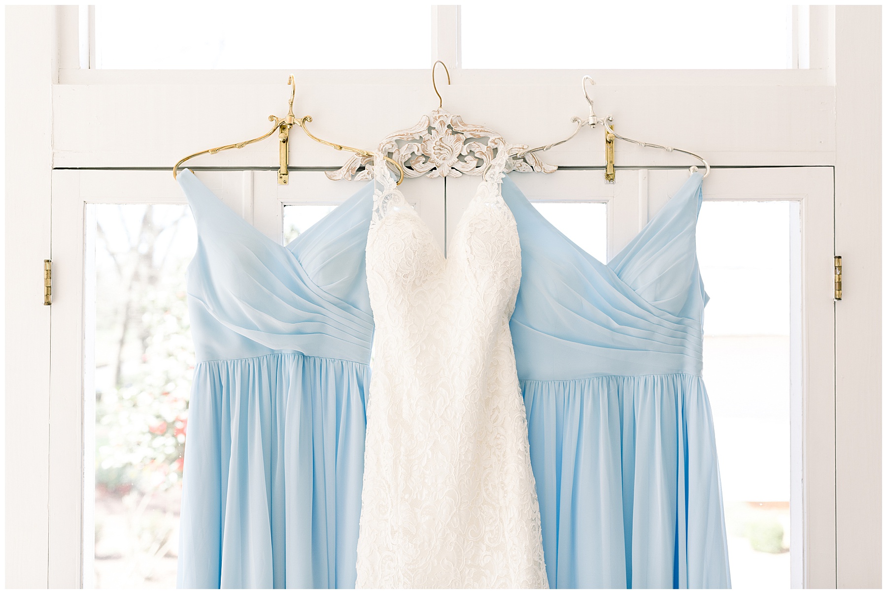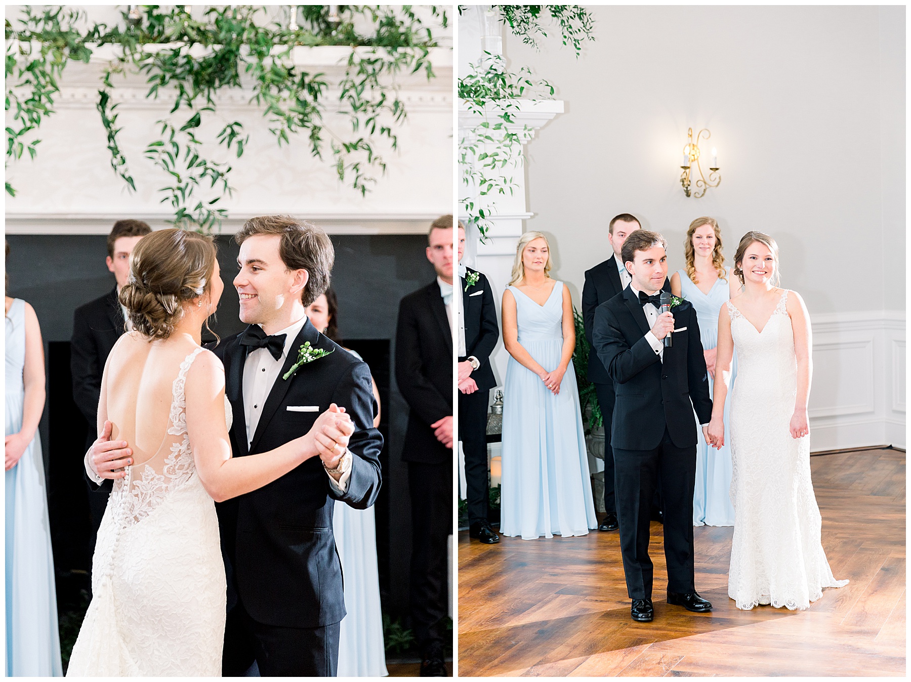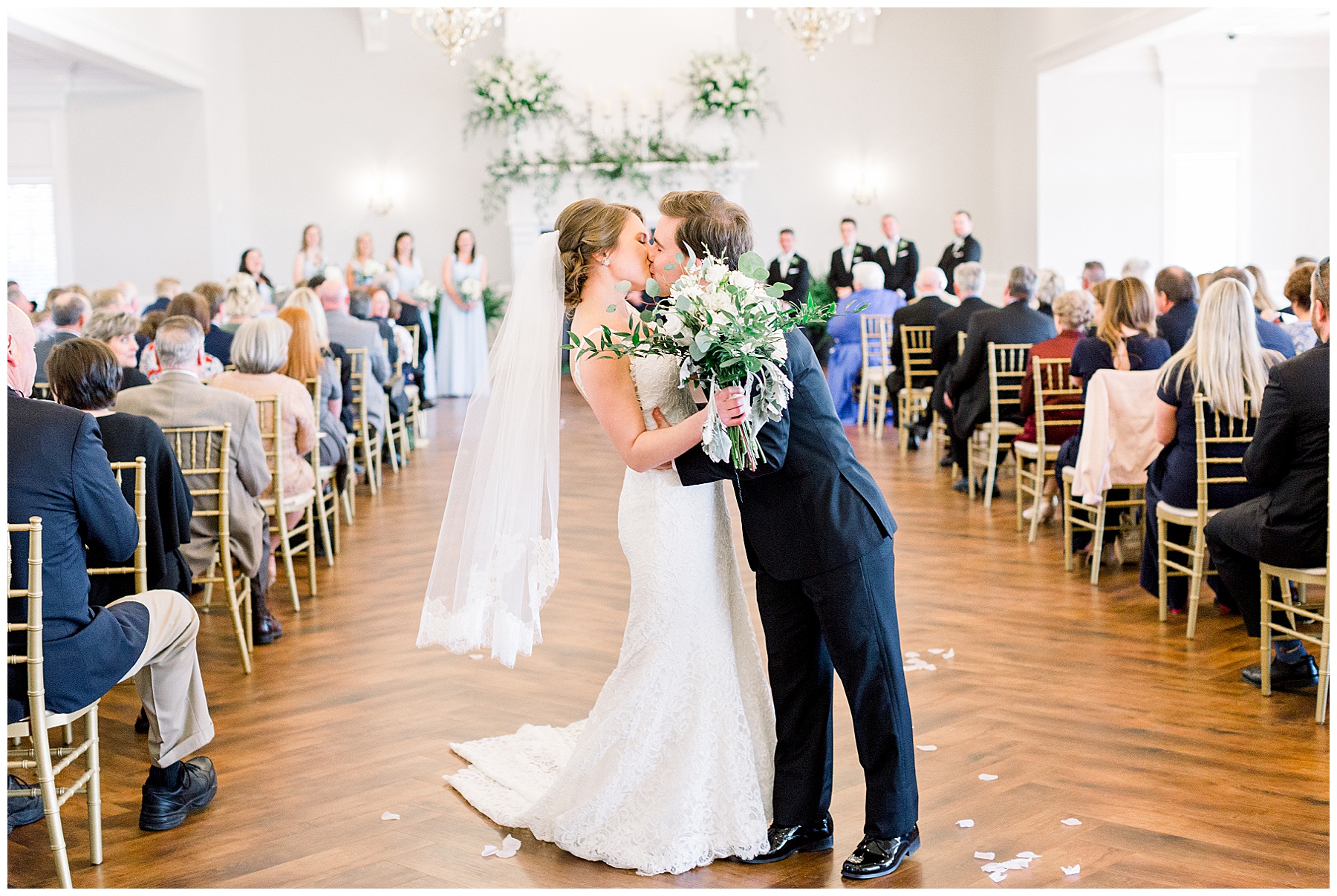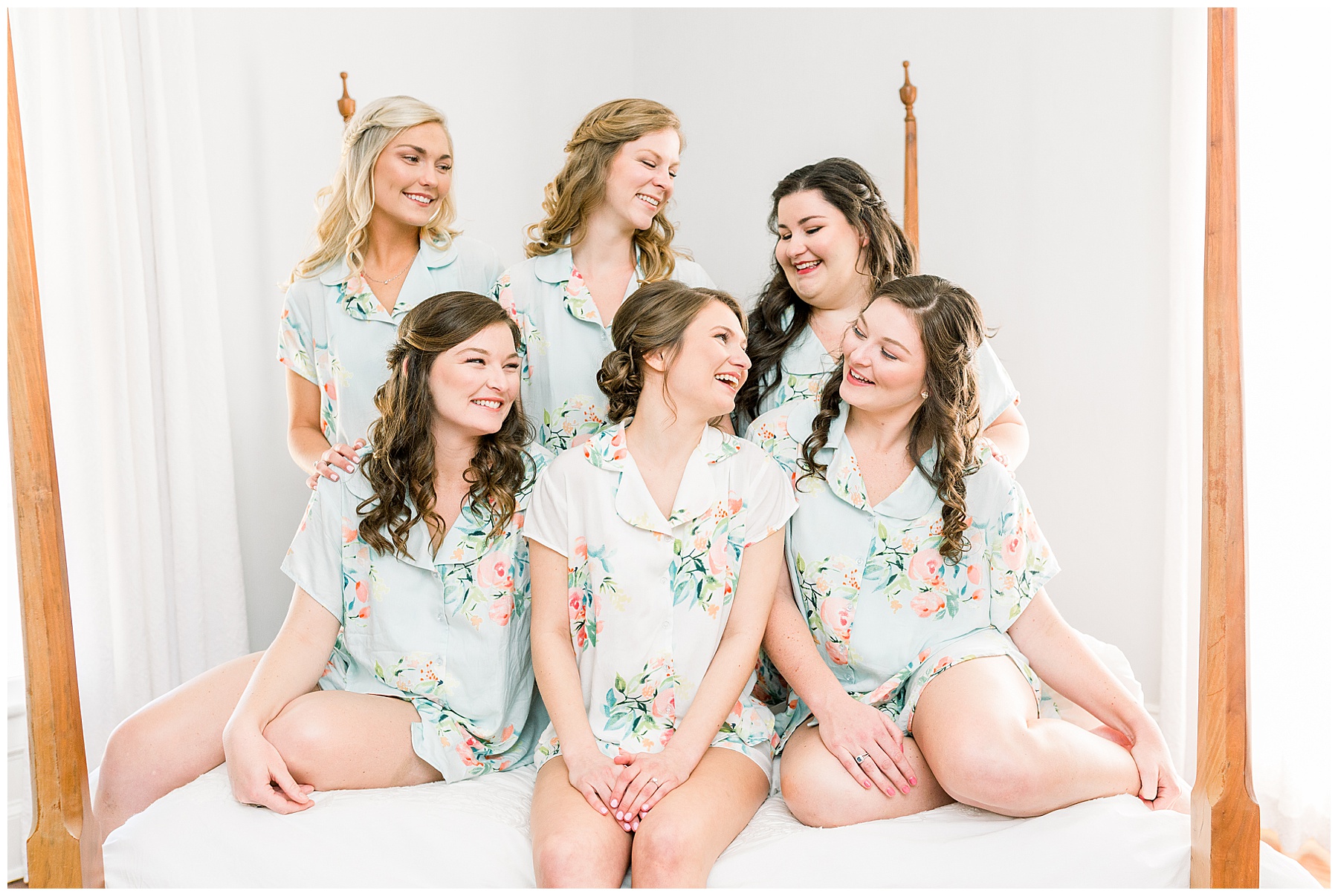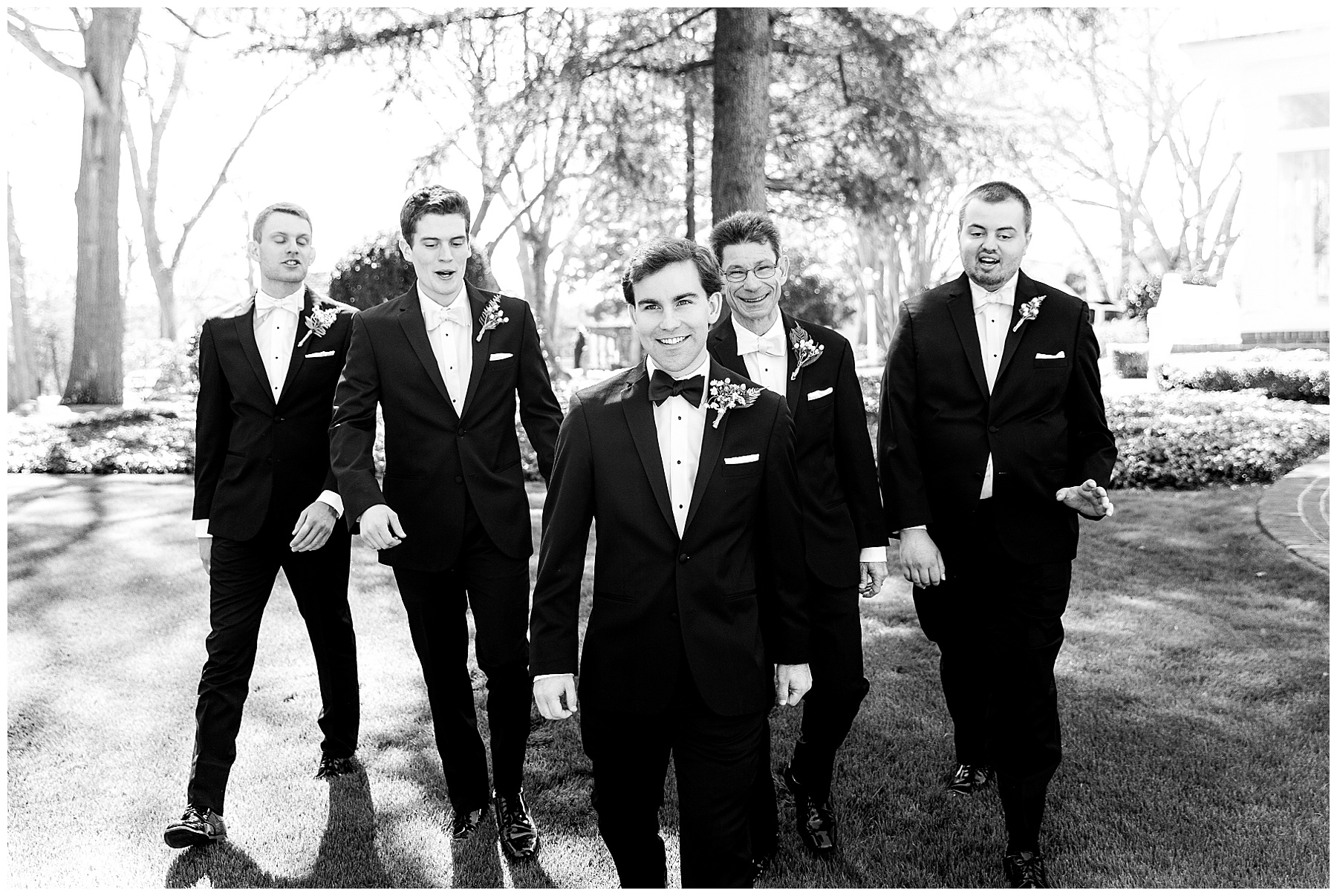 As both UNC grads, Emily and Matthew used touches of soft “Tarheel blue” throughout the day, and I LOVED how classic the guys looked in their tuxes, with a little pop of blue on their bowties! The ladies looked stunning in the blue with white and greenery in their bouquets! It was one of my FAVORITE bridal party combinations I’ve ever photographed!