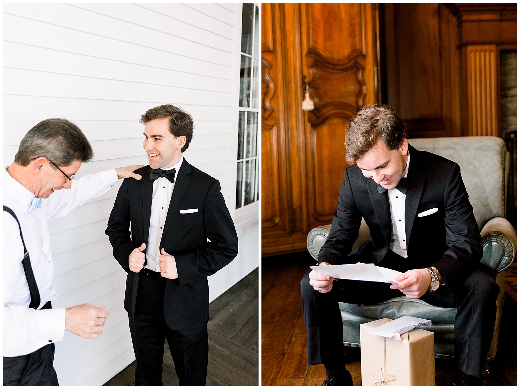 Once we arrived to Rose Hill, all the ladies were getting glammed up by the talented Julie Robbins Makeup, and getting pretty hairstyles done by Melody Raper & Rebecca Bone! The guys were hanging out playing pool, eating snacks, and talking basketball. Two of my favorite parts of the morning was Emily helping her Dad get ready, and Emily & Matthew separately opening letters/gifts from each other. So sweet!