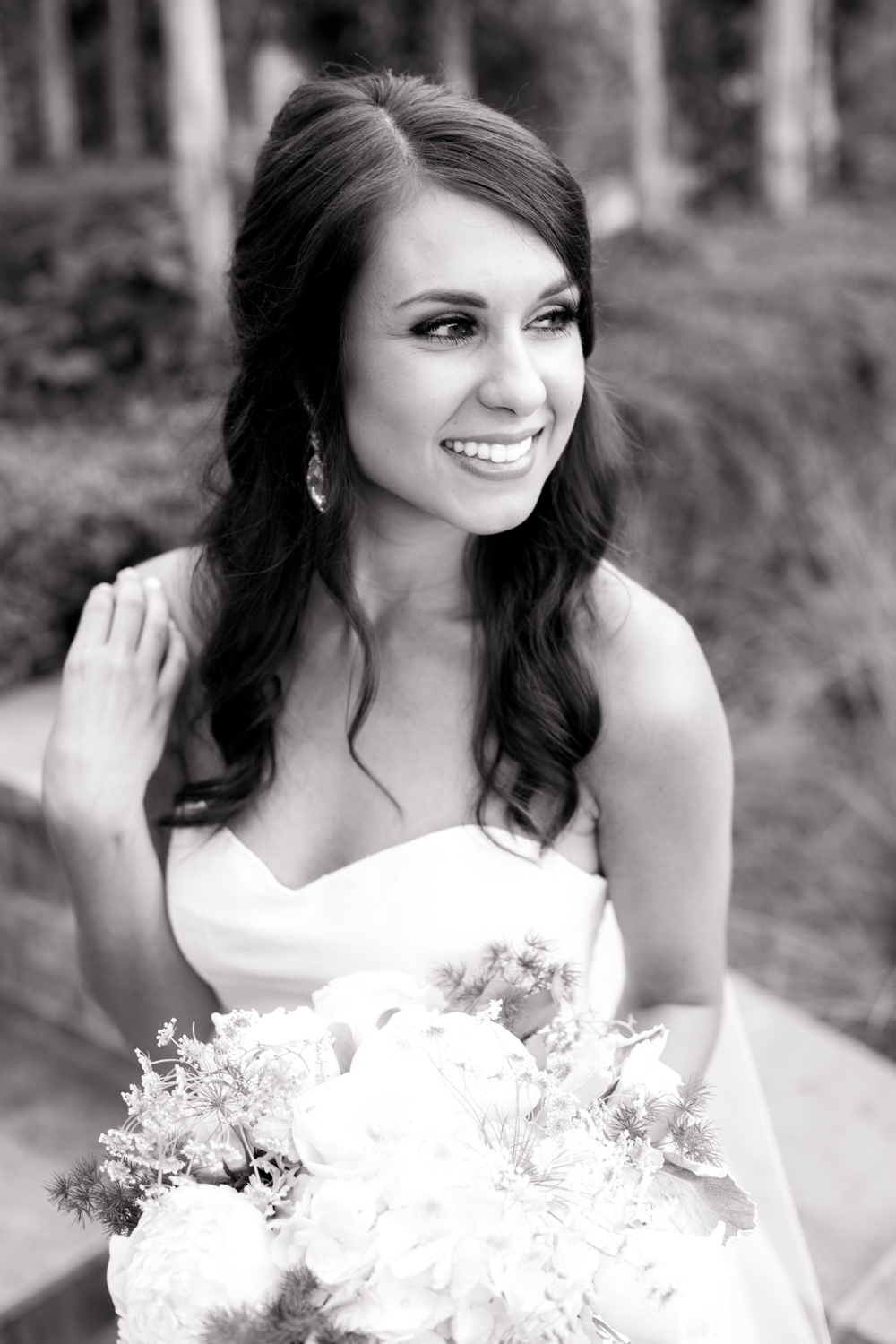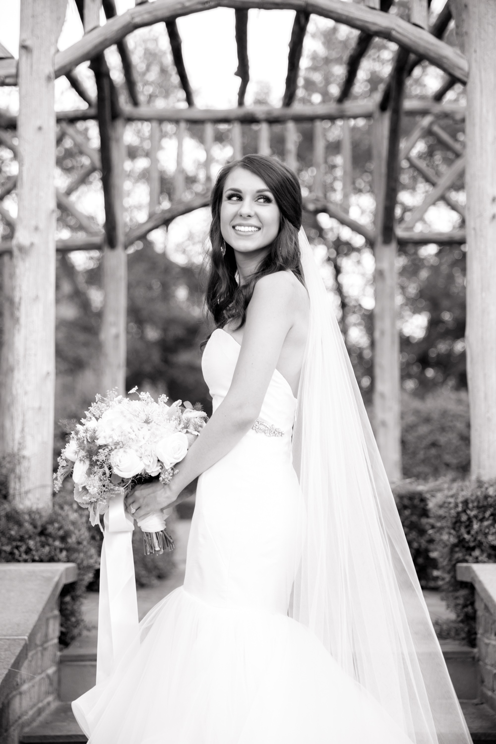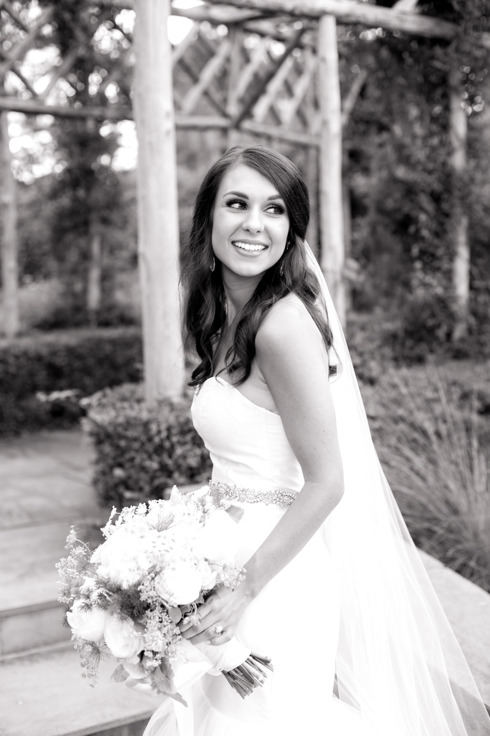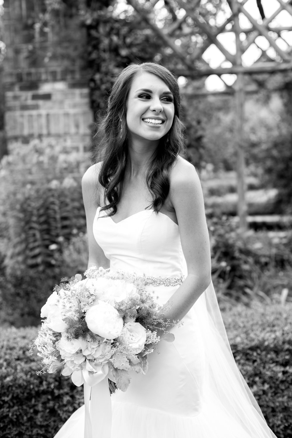 Erin walked up to us, and I *think* my jaw dropped. She’s a gorgeous girl anyways, but as a BRIDE….she was breathtaking! Erin owns a clothing boutique in Greenville, so I was curious what type of wedding dress she’d choose. She didn’t let me down as she stunned in a form-fitting mermaid-style gown with a gold belt that made it unique. WOW!!! Her long teardrop earrings brought sparkle to her face, and the shape matched her engagement ring.