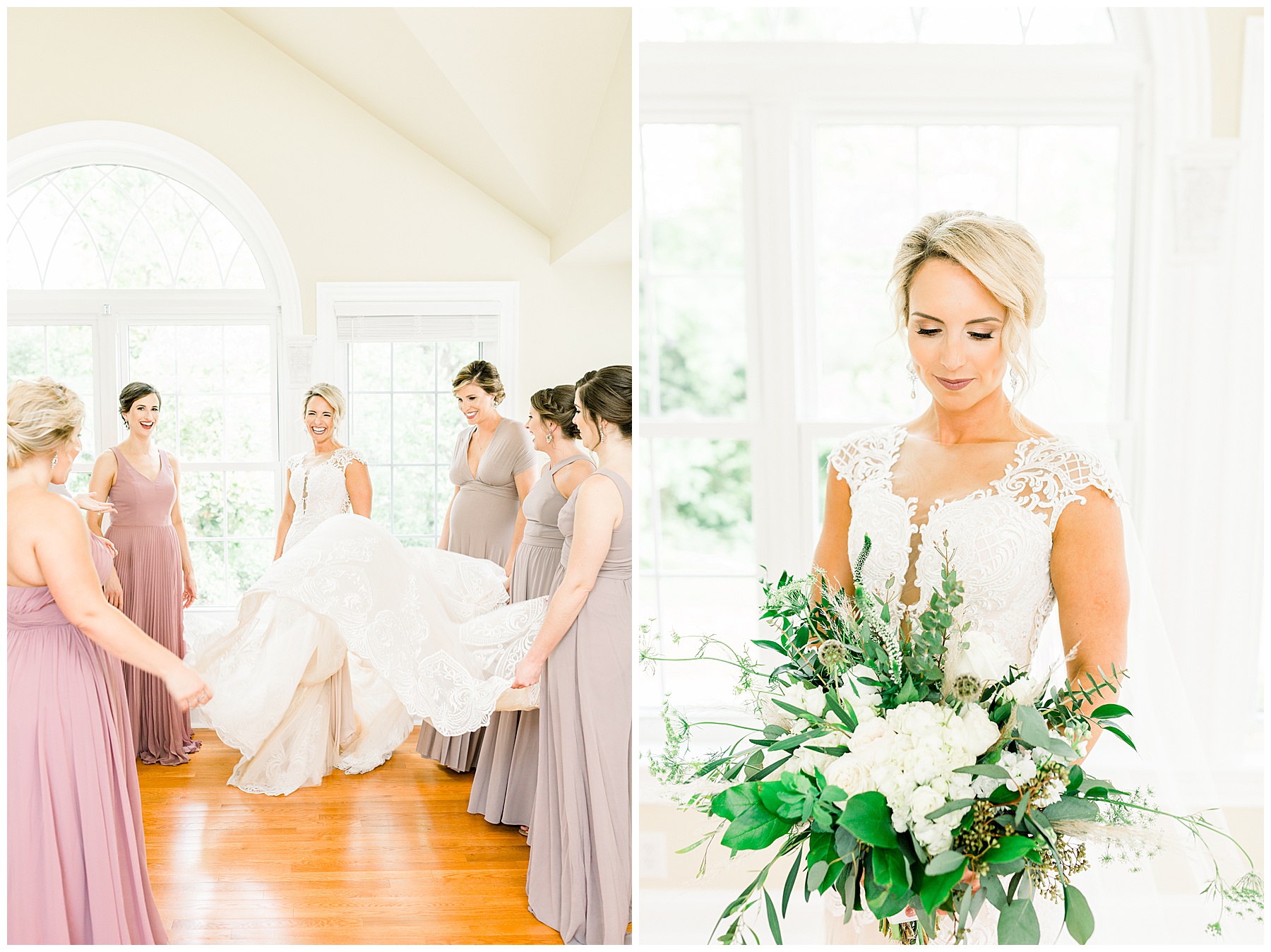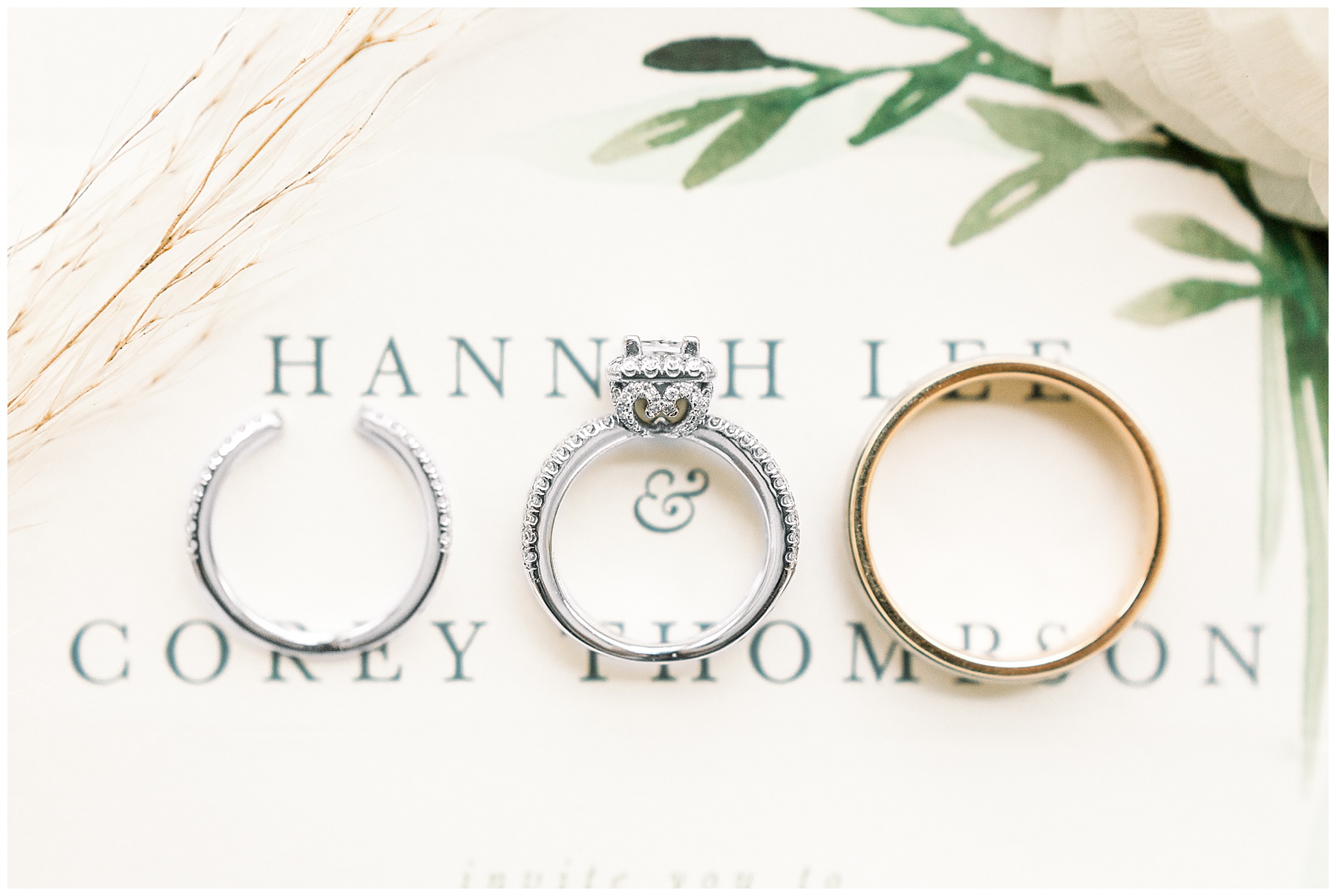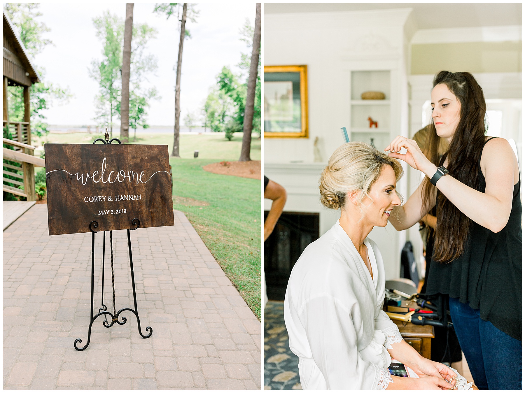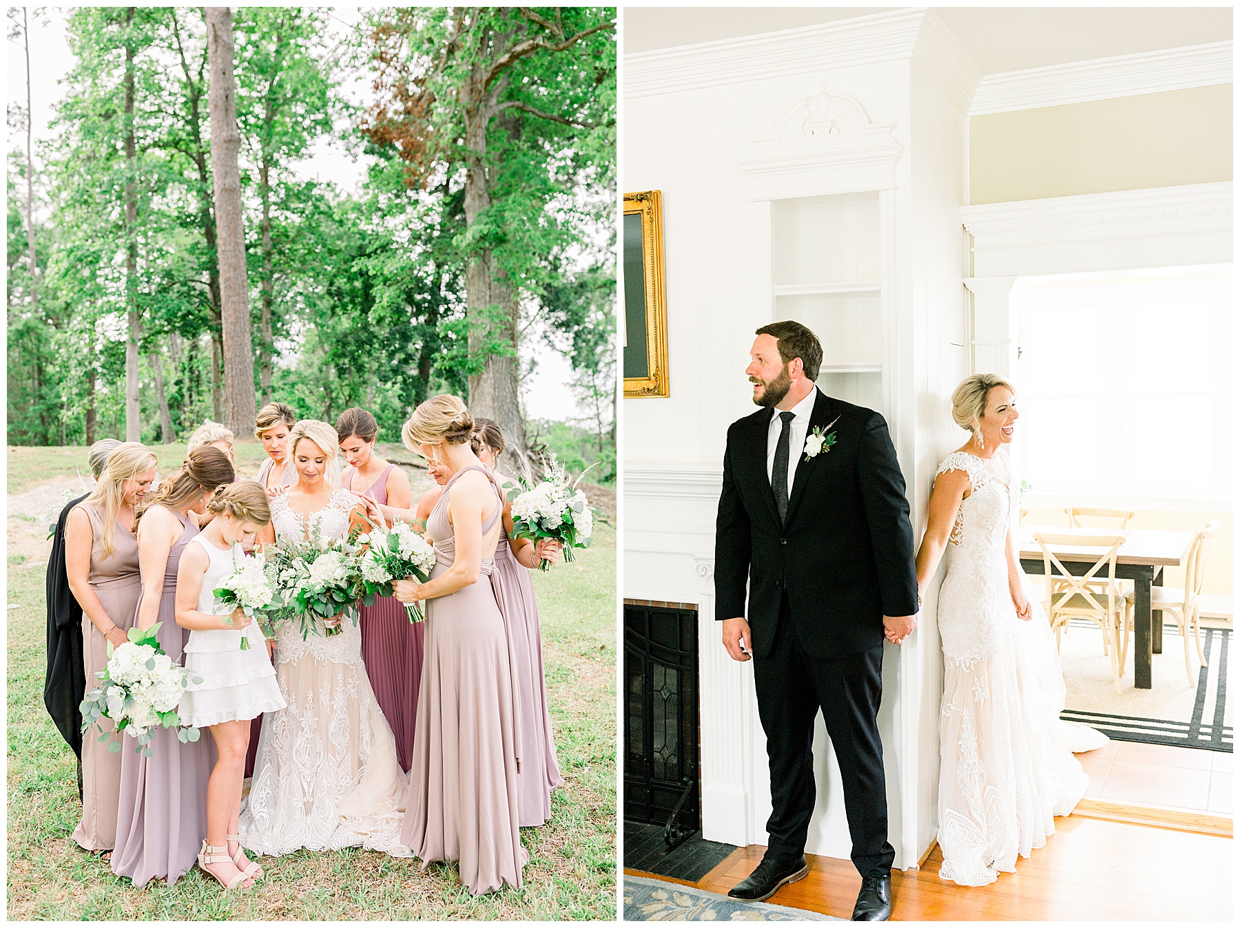 We arrived and all the ladies were relaxing and getting glammed up by the team of Heather Weeks (and Cassie) and Mary Carolyn Walker (and Madison)! Photographing Hannah’s details were so fun – especially her bouquet, and using pampas grass for the first time, and seeing all her special items come together in pretty photos!