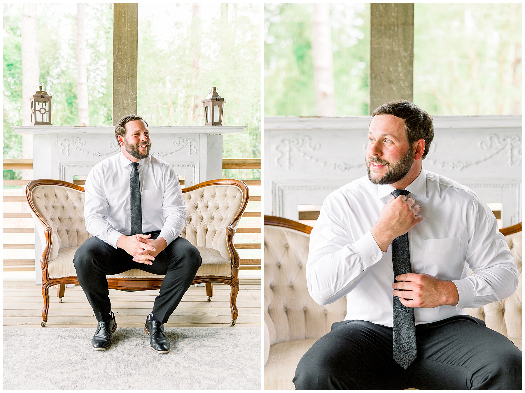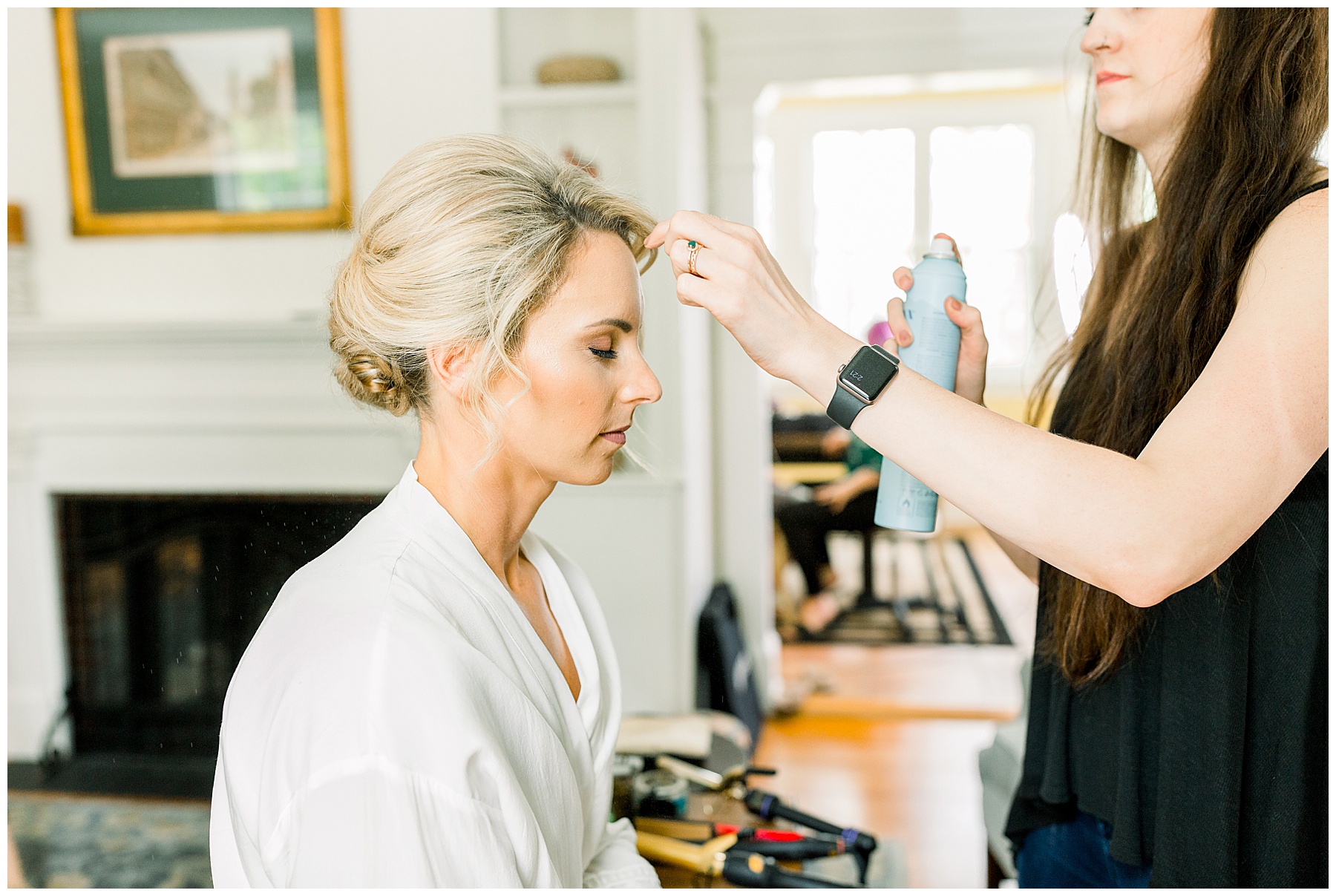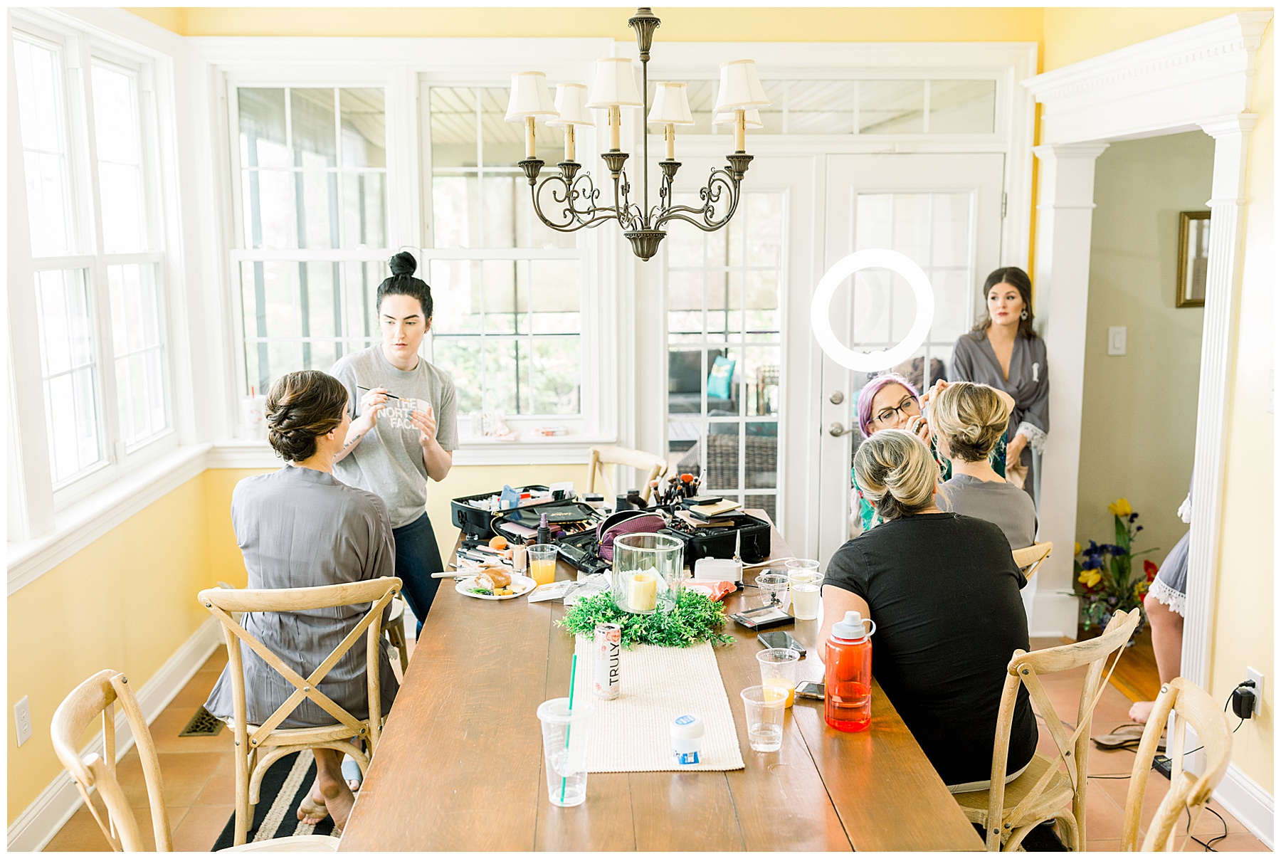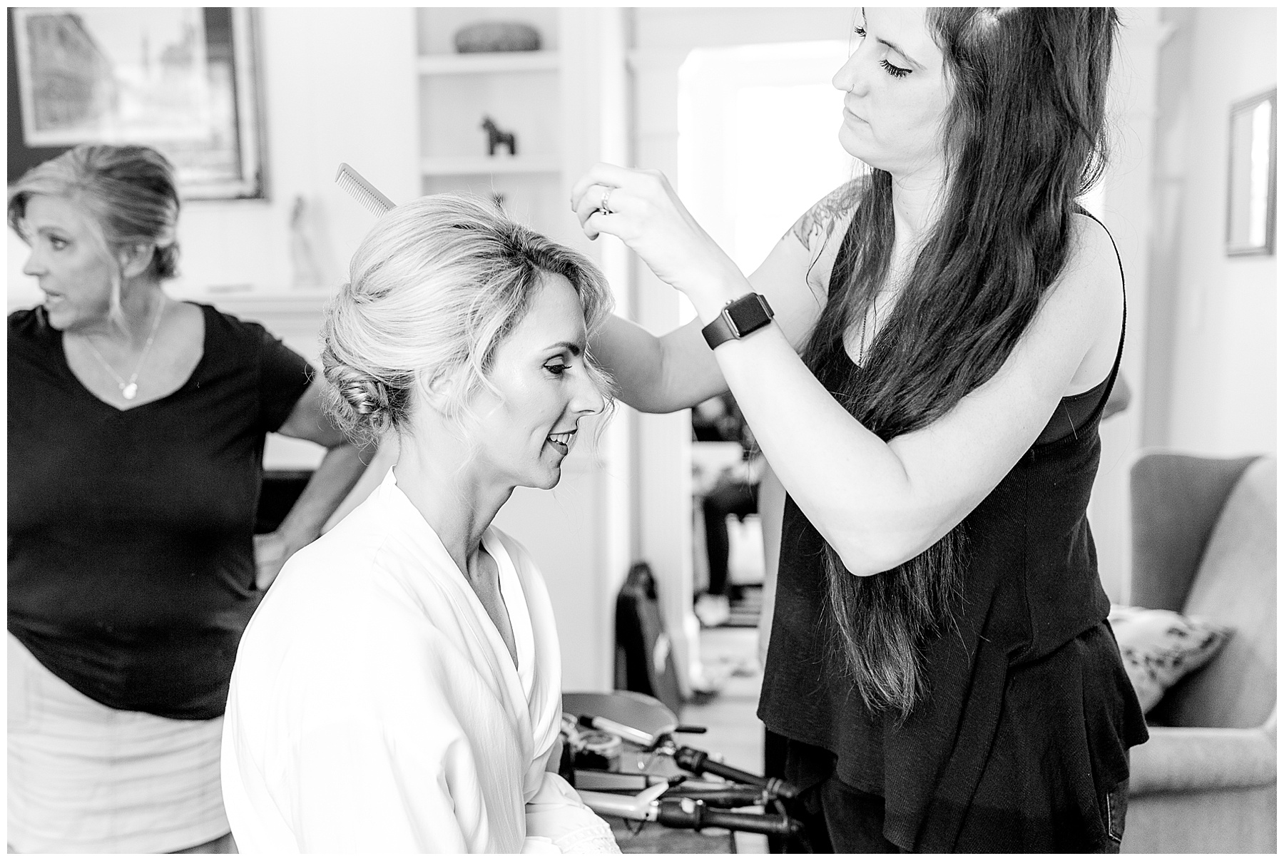 We arrived and all the ladies were relaxing and getting glammed up by the team of Heather Weeks (and Cassie) and Mary Carolyn Walker (and Madison)! Photographing Hannah’s details were so fun – especially her bouquet, and using pampas grass for the first time, and seeing all her special items come together in pretty photos!