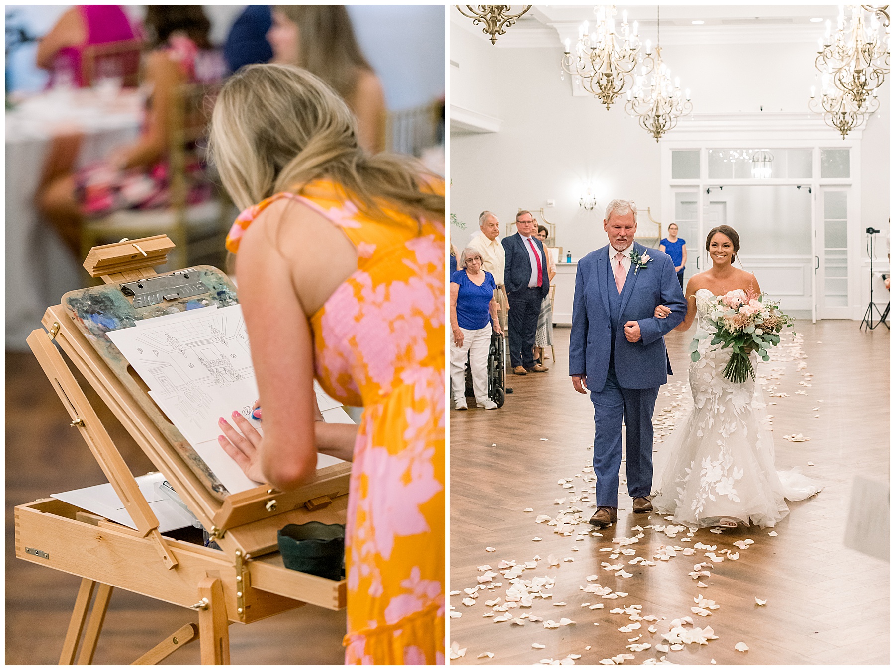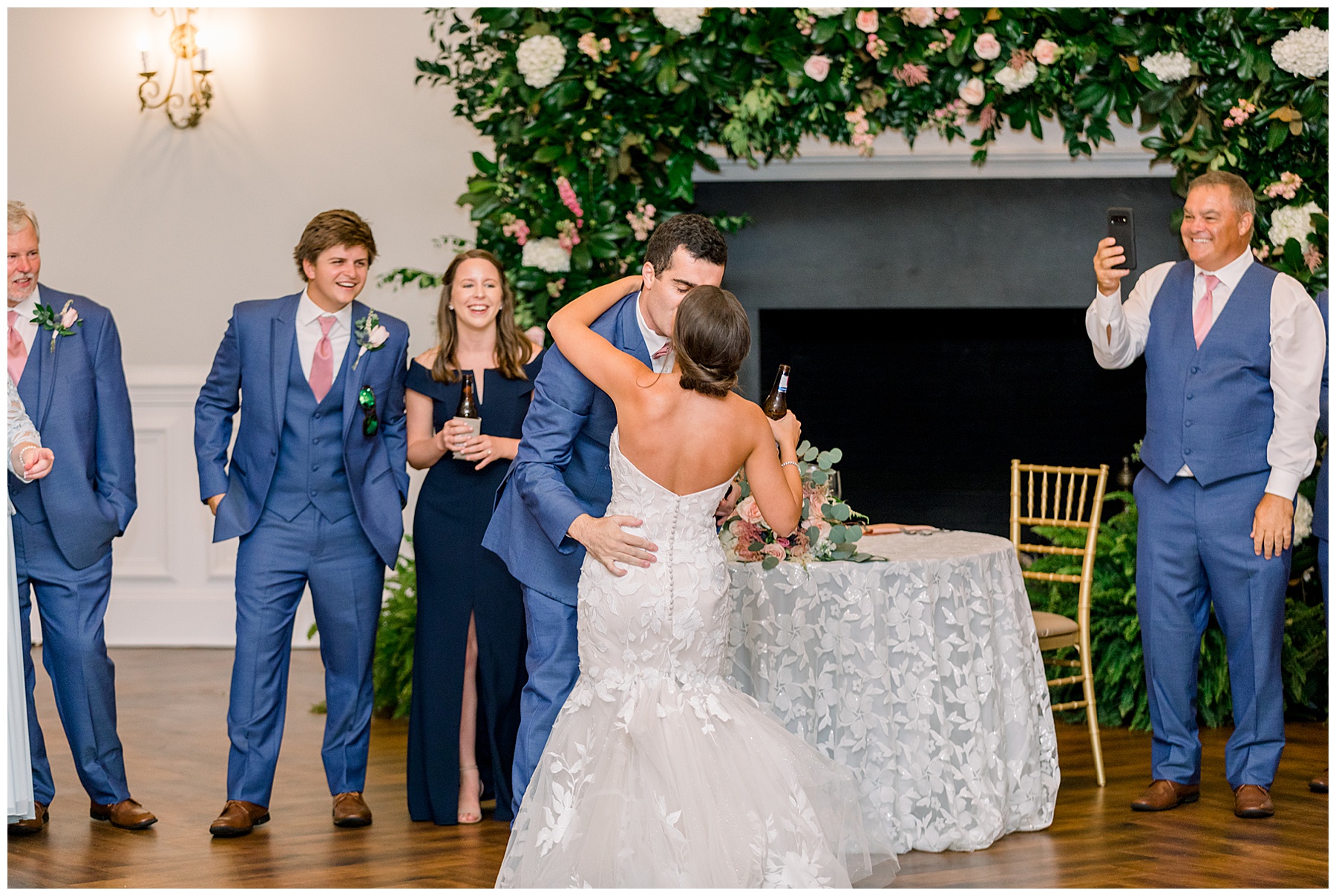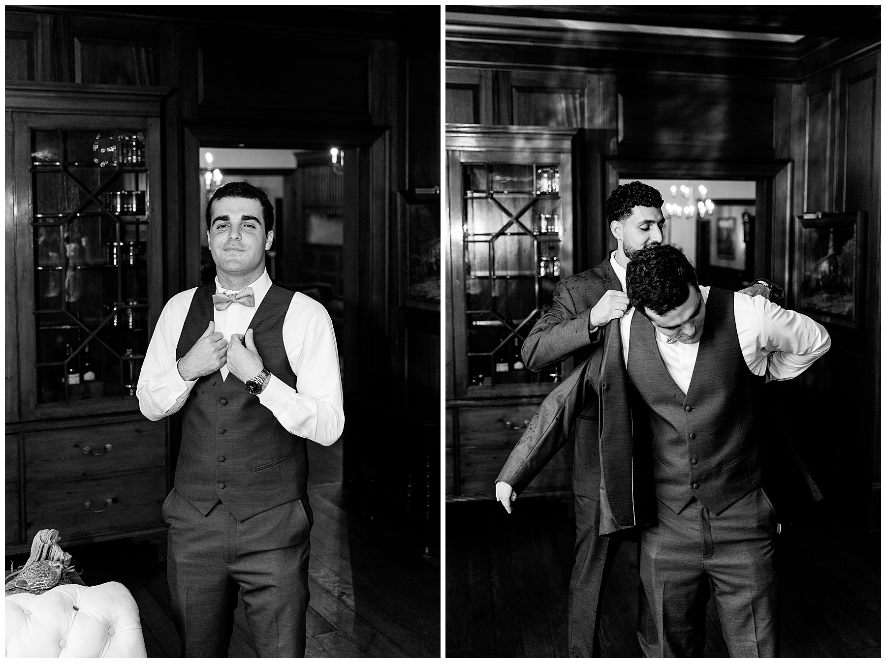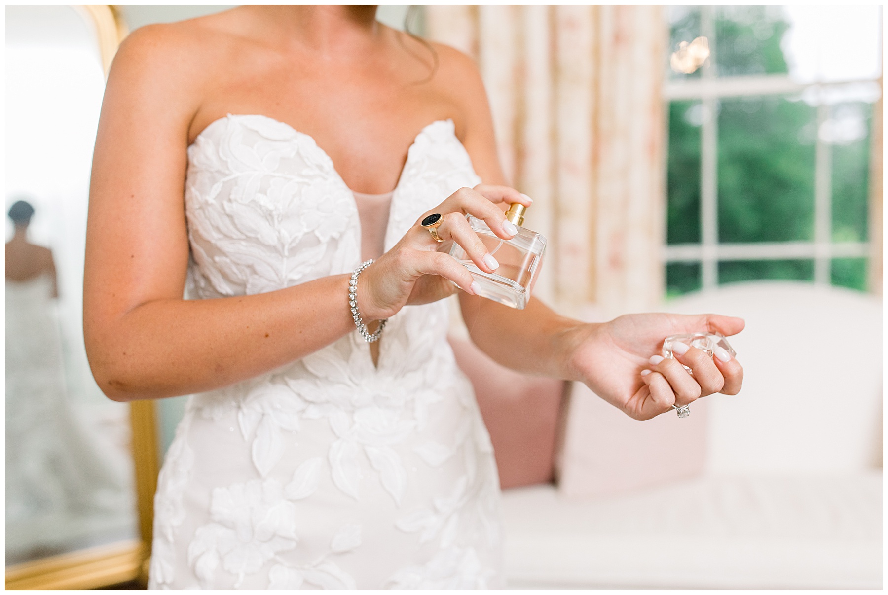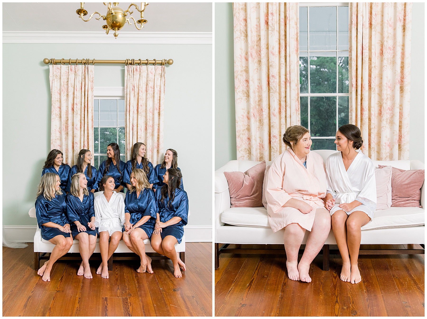 In typical North Carolina summertime fashion, a big thunderstorm came out of NOWHERE and started raining, lightening, and thundering as they were arriving at the venue. It was amazing how they kept in good spirits even when their dream of having an outdoor ceremony had to be changed to “Plan B” (which, I may add was GORGEOUS!) They stayed positive and continued to have fun with their friends and family while getting ready! :)