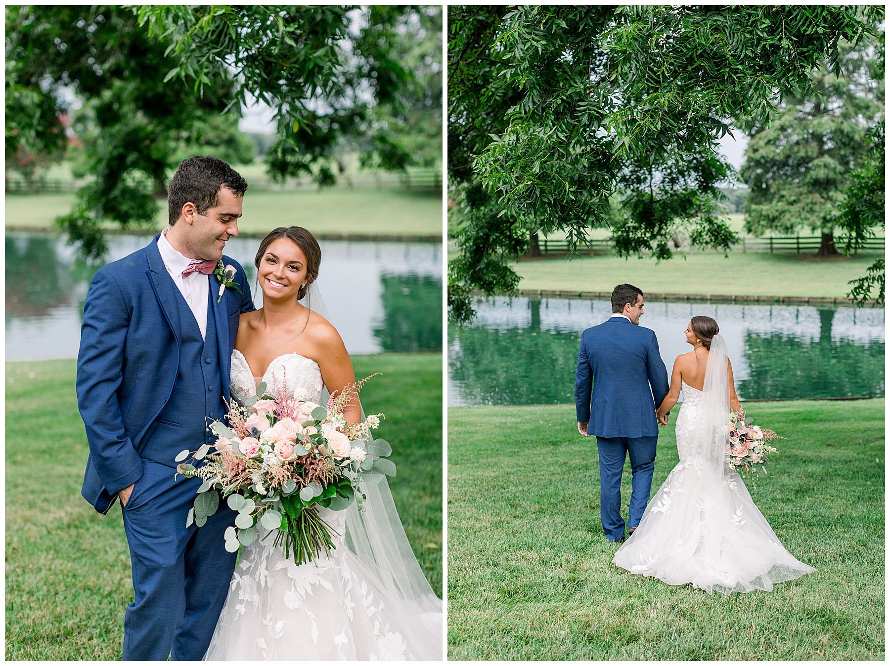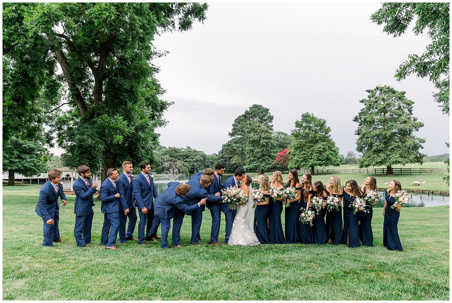 Thankfully, the rain tapered off right in time to photograph the Bridal Party & Bride/Groom portraits outside! The bridesmaids were great sports in the wet grass in their heels, and I loved how the cute little white ducks made appearances in a lot of the photos!!!