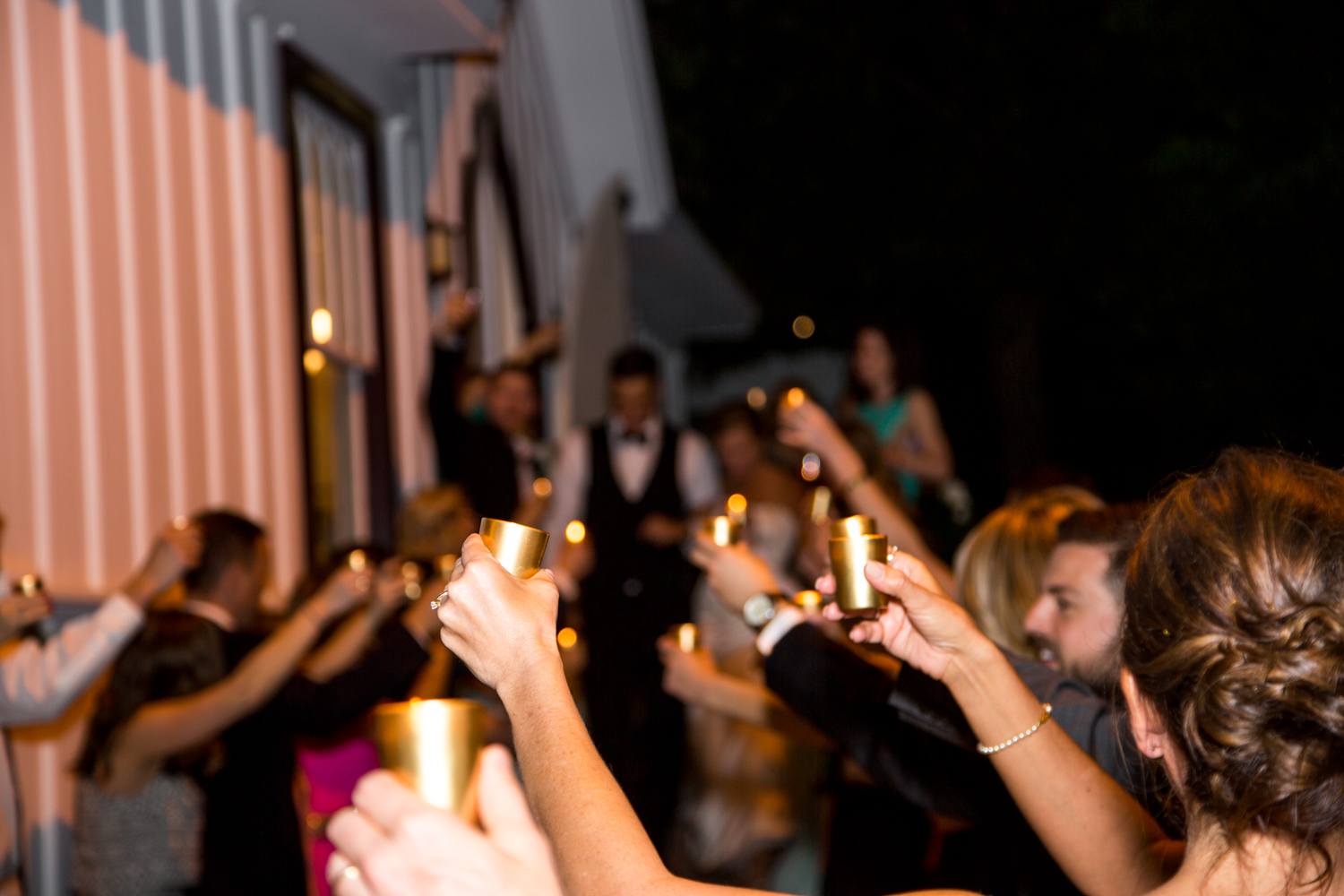 After a long evening of celebrating, Will and Kaitlyn ran through a candle-lit exit, and a rickshaw came to pick them up. As they rode off into downtown Raleigh, they were all smiles!!