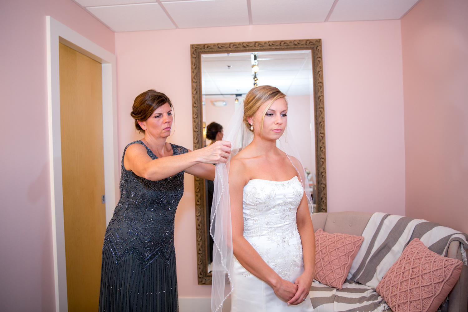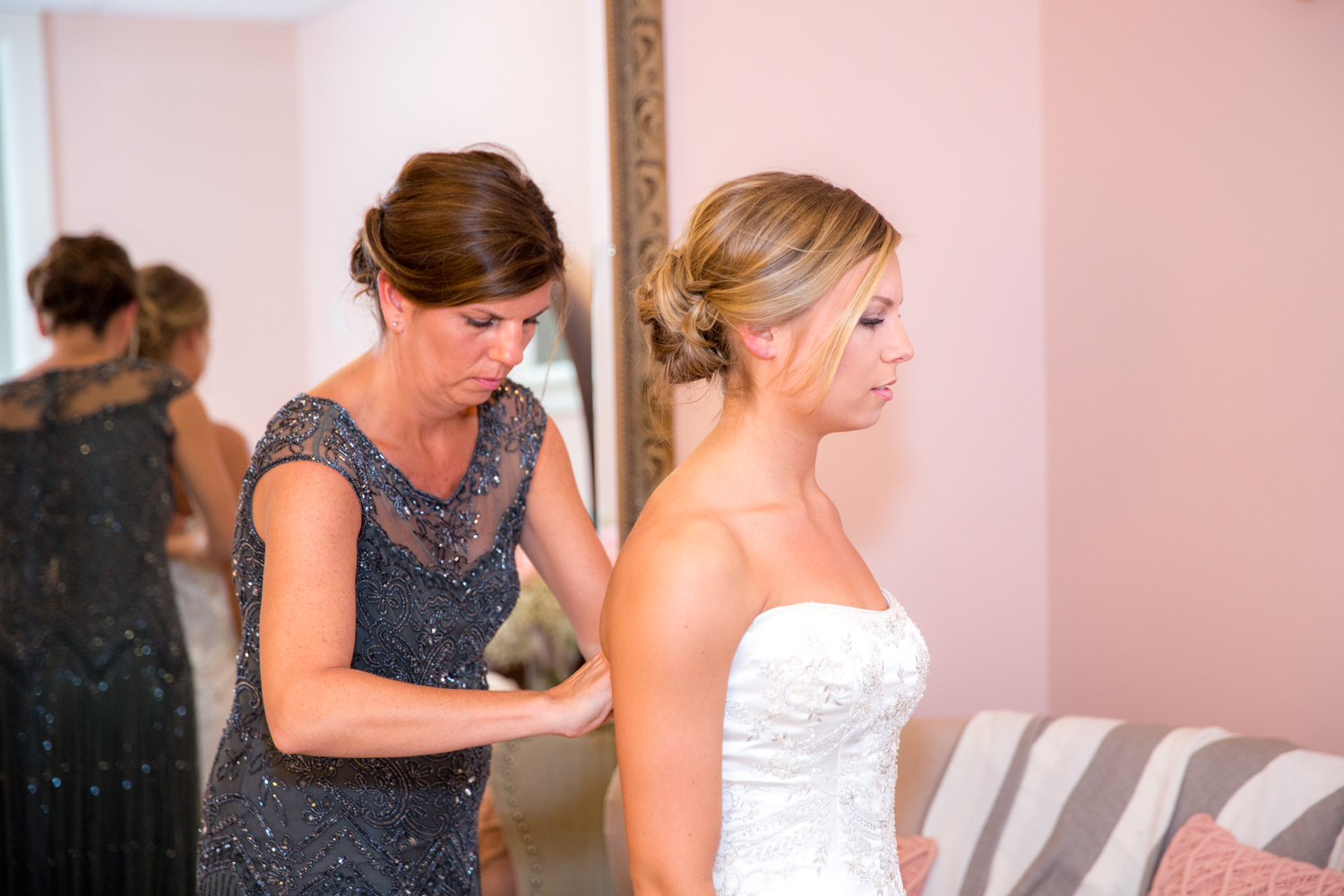 I really enjoyed hanging with the girls getting ready that morning. Kaitlyn had a good group of girls, and they lounged around getting their hair and makeup done. After an eventful Uber ride (he was taking us to the WRONG church, oops!) Kaitlyn put her dress on and it was a quiet time alone with her mom.