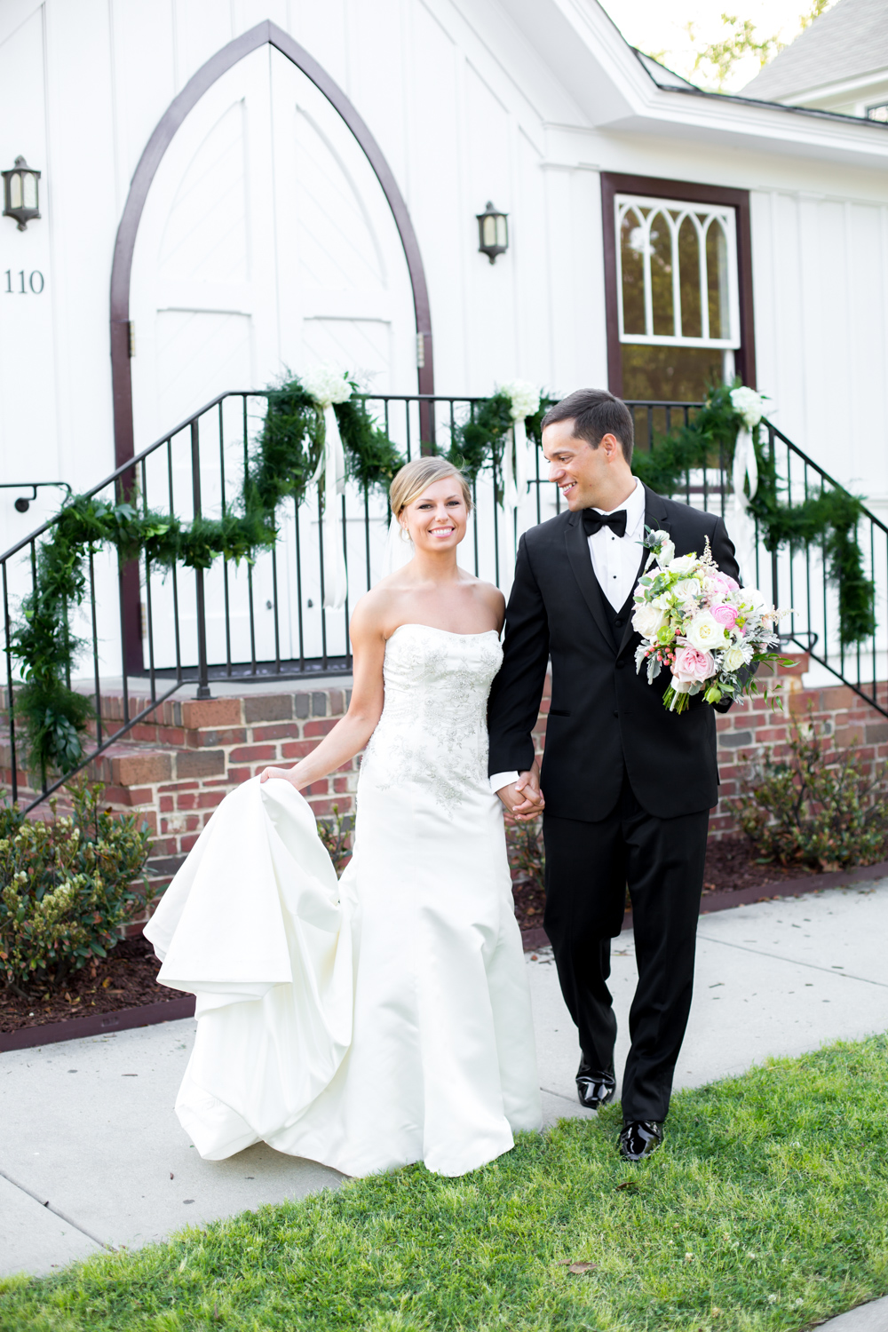Florist: Catering Works – Joseph Barnes  |  Makeup Artist: Caila Gillespie  |  Hairstylist: Caila Gillespie  |  Director: Michayla Noonan  |  DJ: Ross Merle  |  Wedding & Reception Venue: All Saints Chapel, Raleigh NC |  Caterer: Catering Works  |  Cake Designer: Catering Works  |  Invitations / RSVP  Designer: Tiffany L. Johnson   |  Ring Designer: Diamonds Direct  |  Bride/Bridesmaid jewelry – Kendra Scott  |  Shoe Designer: Badgley Mischka