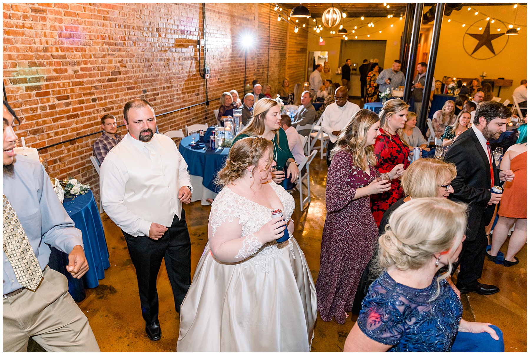 Everyone headed downtown Laurinburg for an outdoor cocktail hour next to a colorful mural and under twinkling lights. Next, all their guests were treated to a buffet, drinks, cake (that AMAZING cake deserves a moment all for itself – it was a showstopper!!!) and enjoyed lots of dancing thanks to All Events DJ!!!