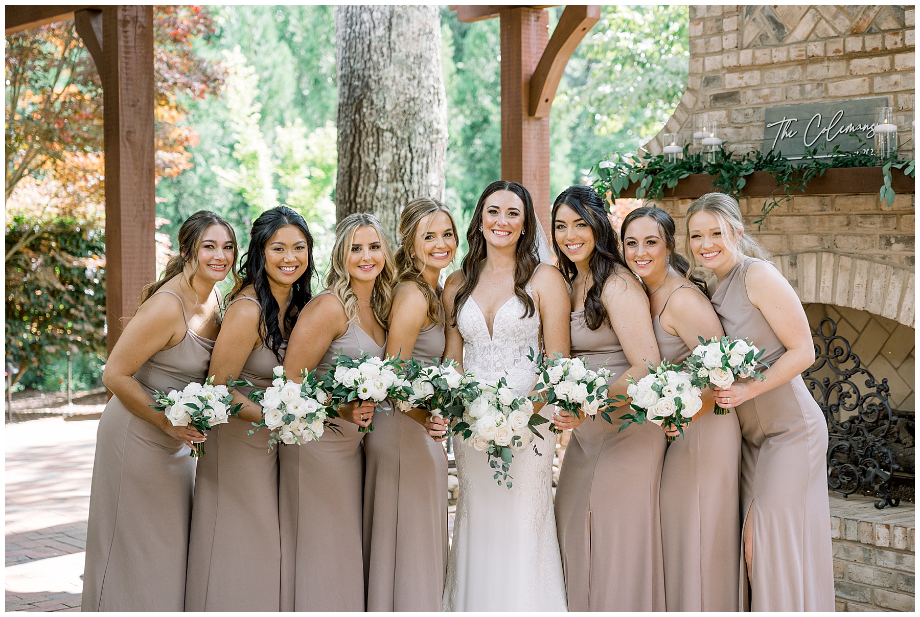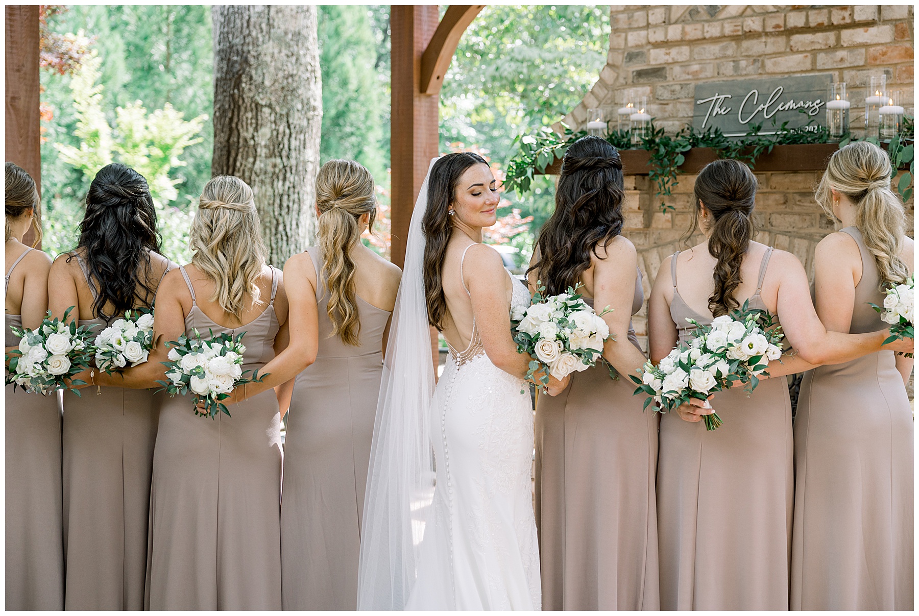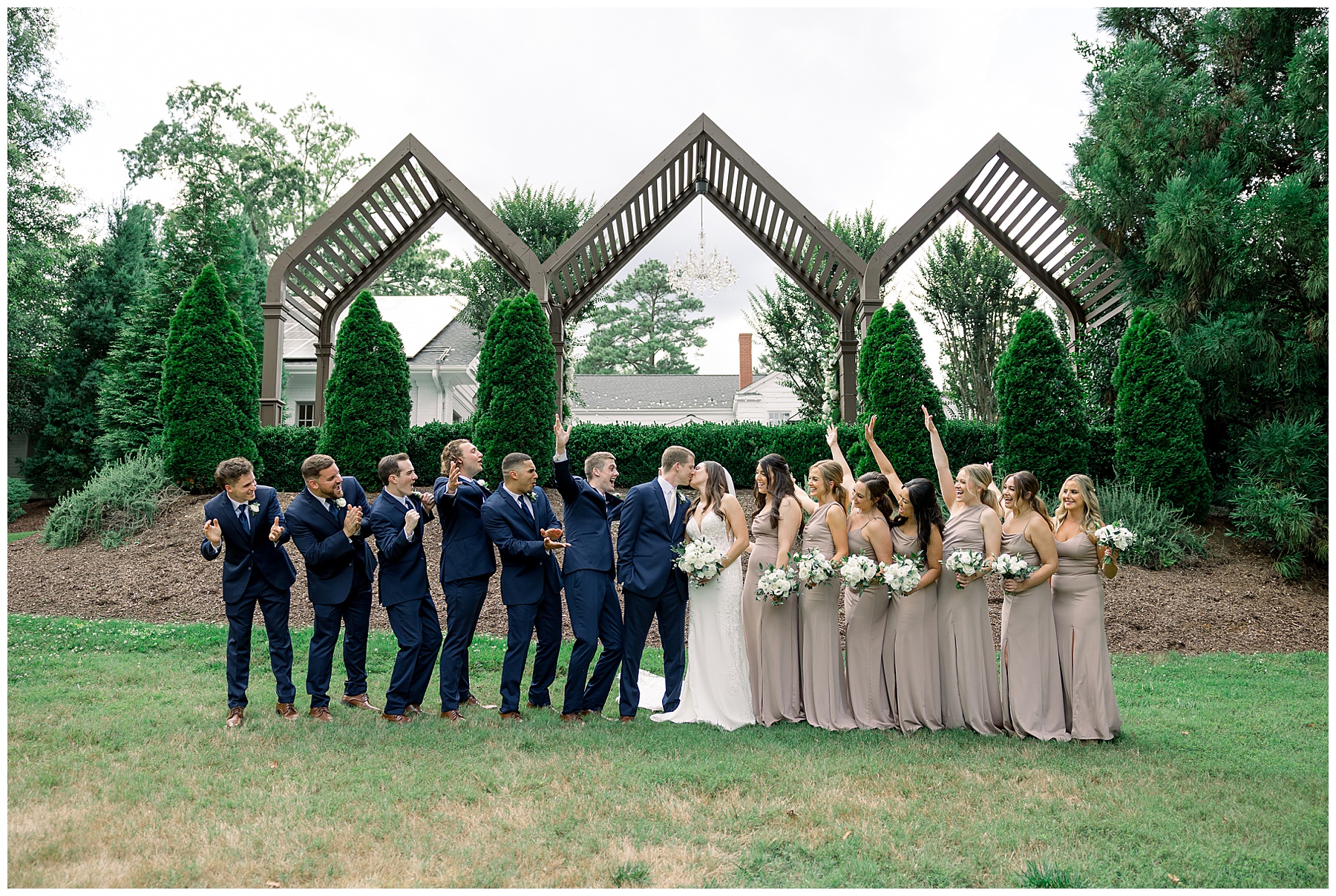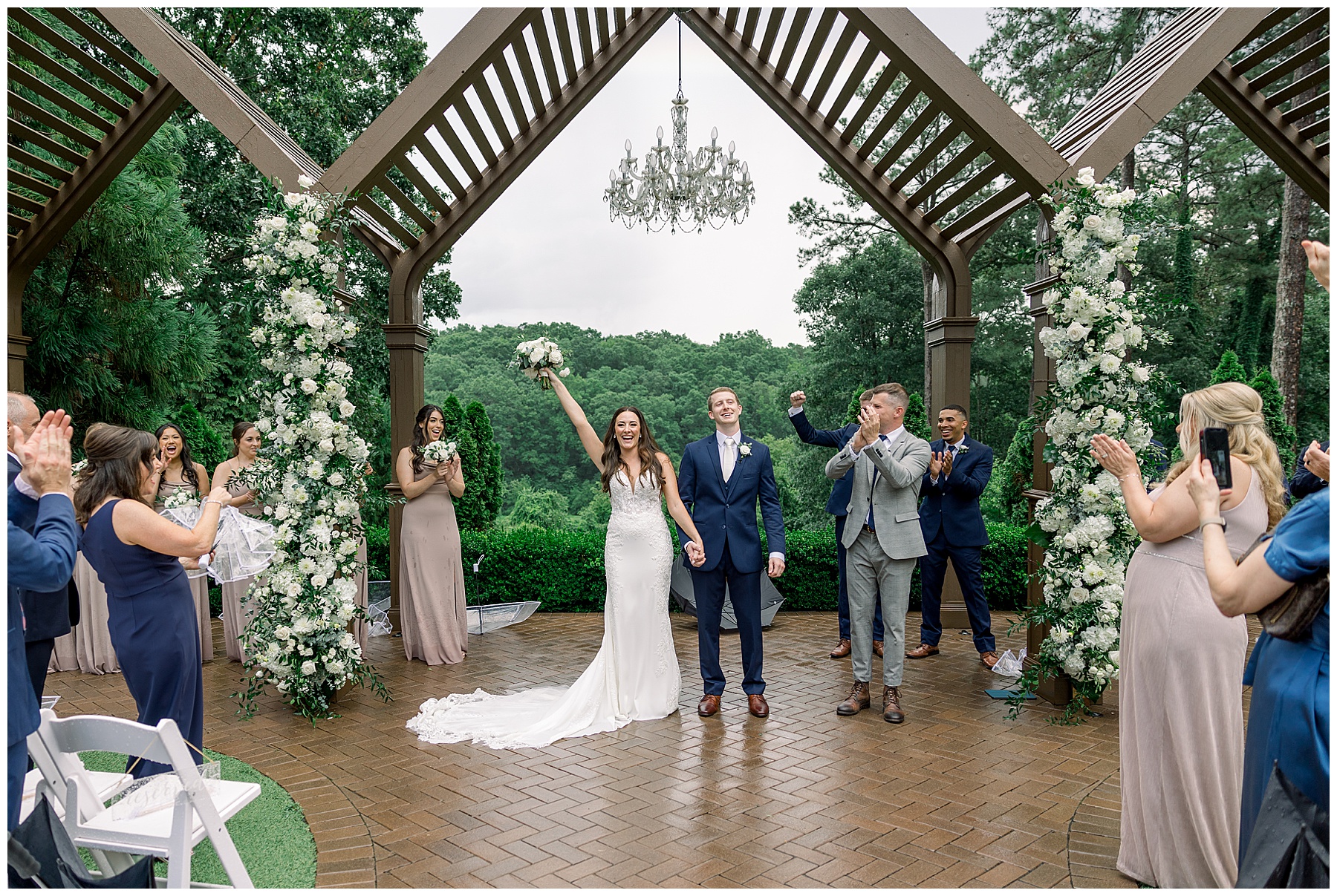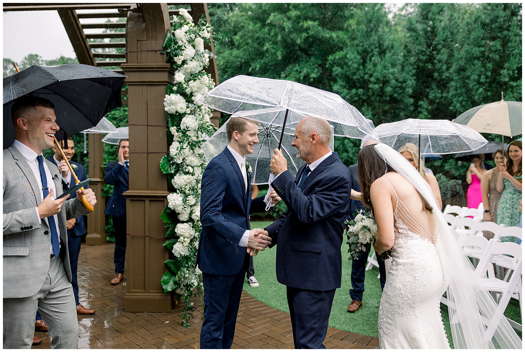 Thankfully, we photographed ALL bridal party photos pre-ceremony too – which turned out wonderfully because out of NOWHERE a huge downpour of rain started just as the ceremony was supposed to get started. They opted to wait about 20 minutes, but when the rain wasn’t letting up, Kelsey & Corey decided to just go with it – and their ceremony was in the RAIN (literally a downpour) yet they embraced it! After the ceremony, the rain slowed, and they even had a RAINBOW literally right above the pergola. How special!!!
