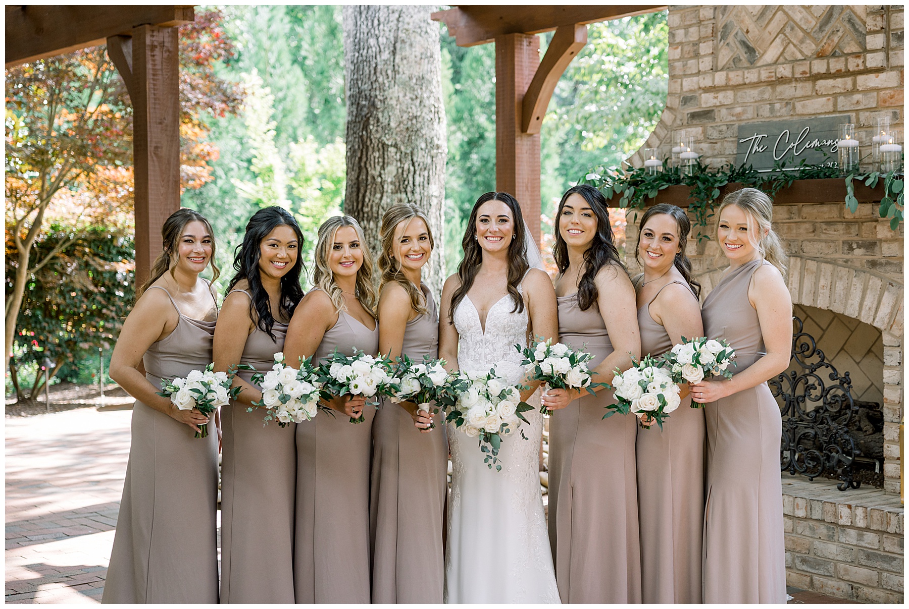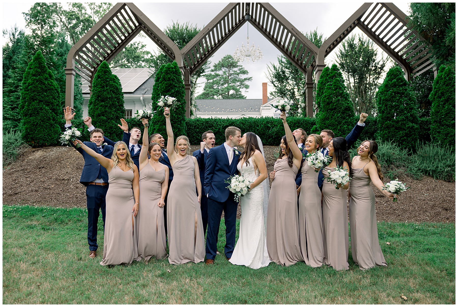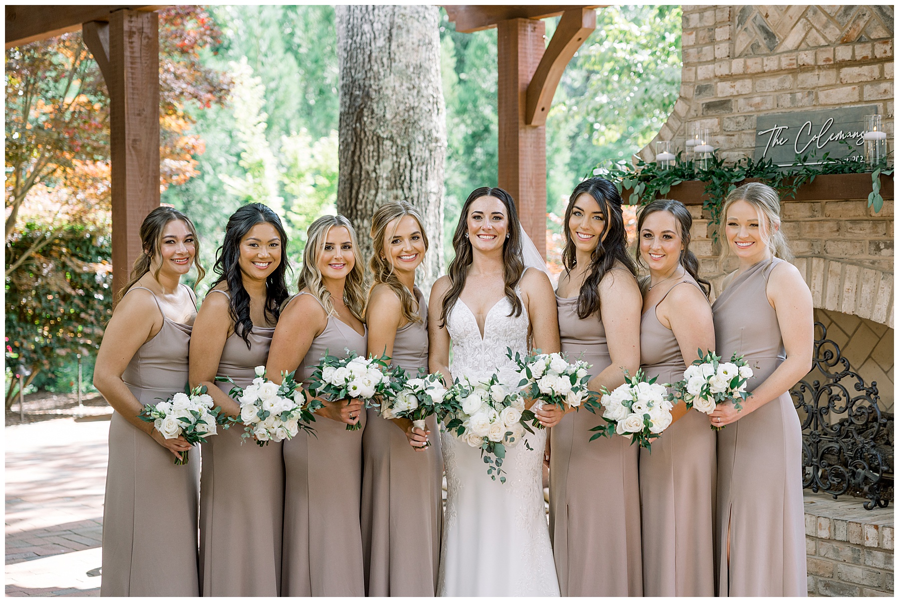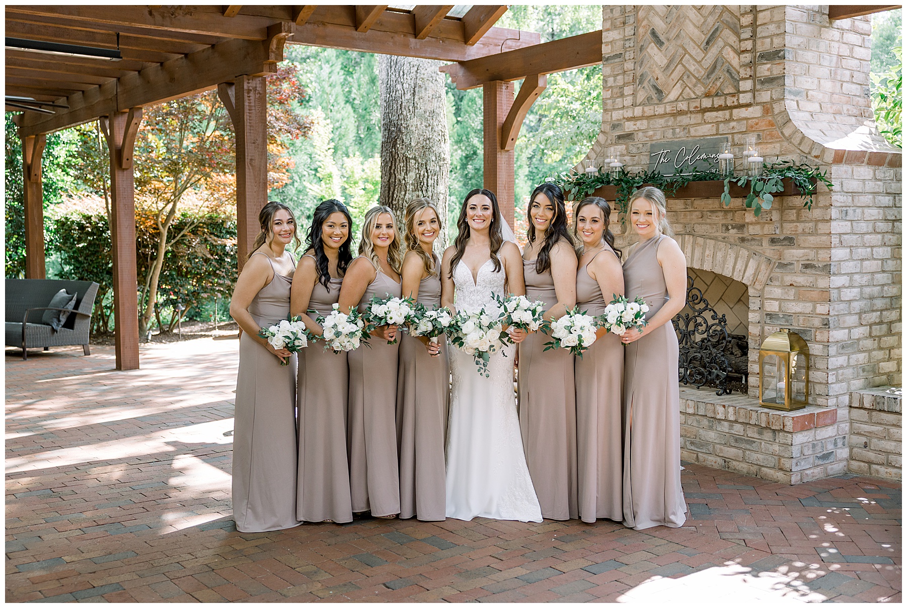 Thankfully, we photographed ALL bridal party photos pre-ceremony too – which turned out wonderfully because out of NOWHERE a huge downpour of rain started just as the ceremony was supposed to get started. They opted to wait about 20 minutes, but when the rain wasn’t letting up, Kelsey & Corey decided to just go with it – and their ceremony was in the RAIN (literally a downpour) yet they embraced it! After the ceremony, the rain slowed, and they even had a RAINBOW literally right above the pergola. How special!!!