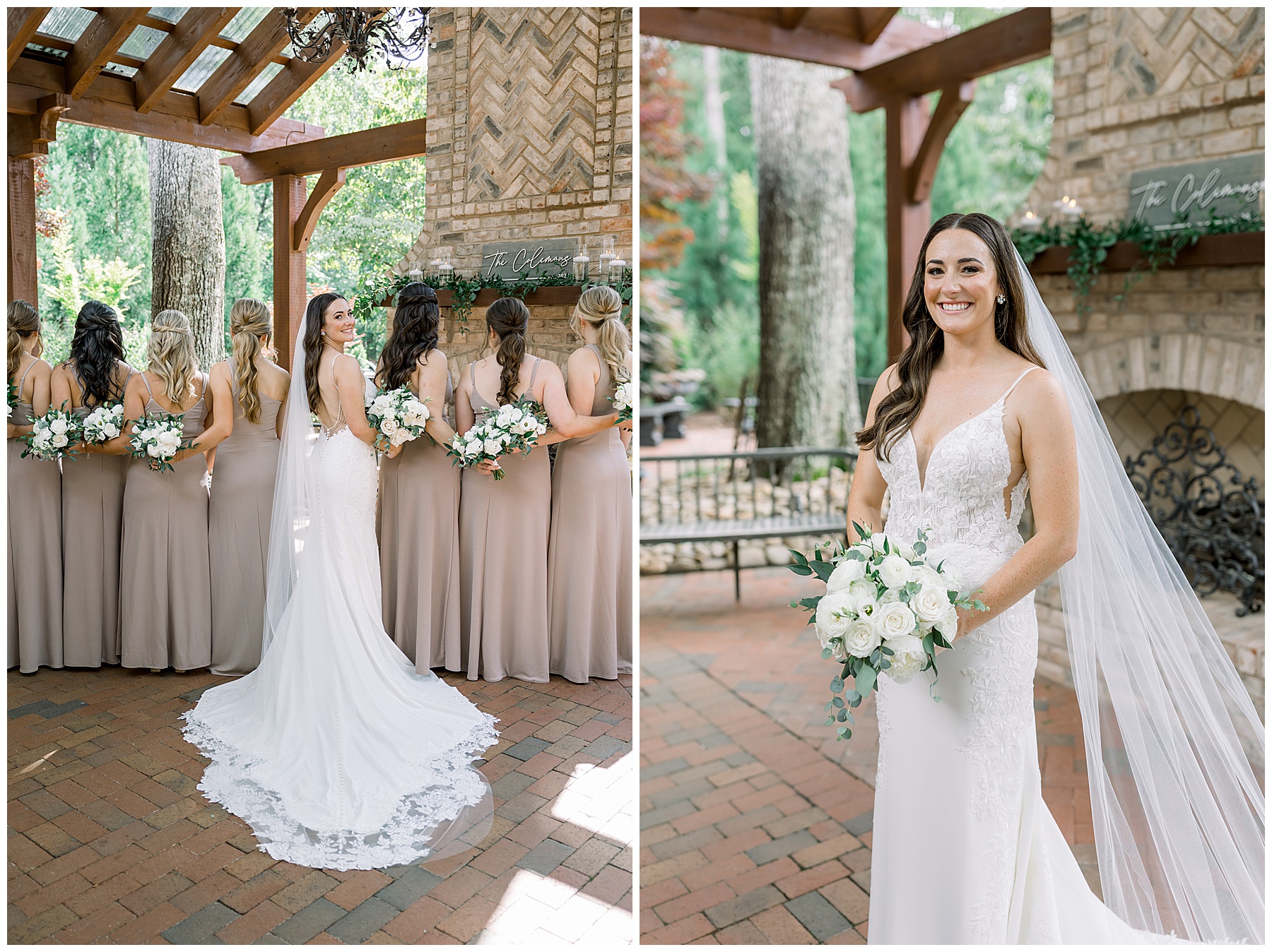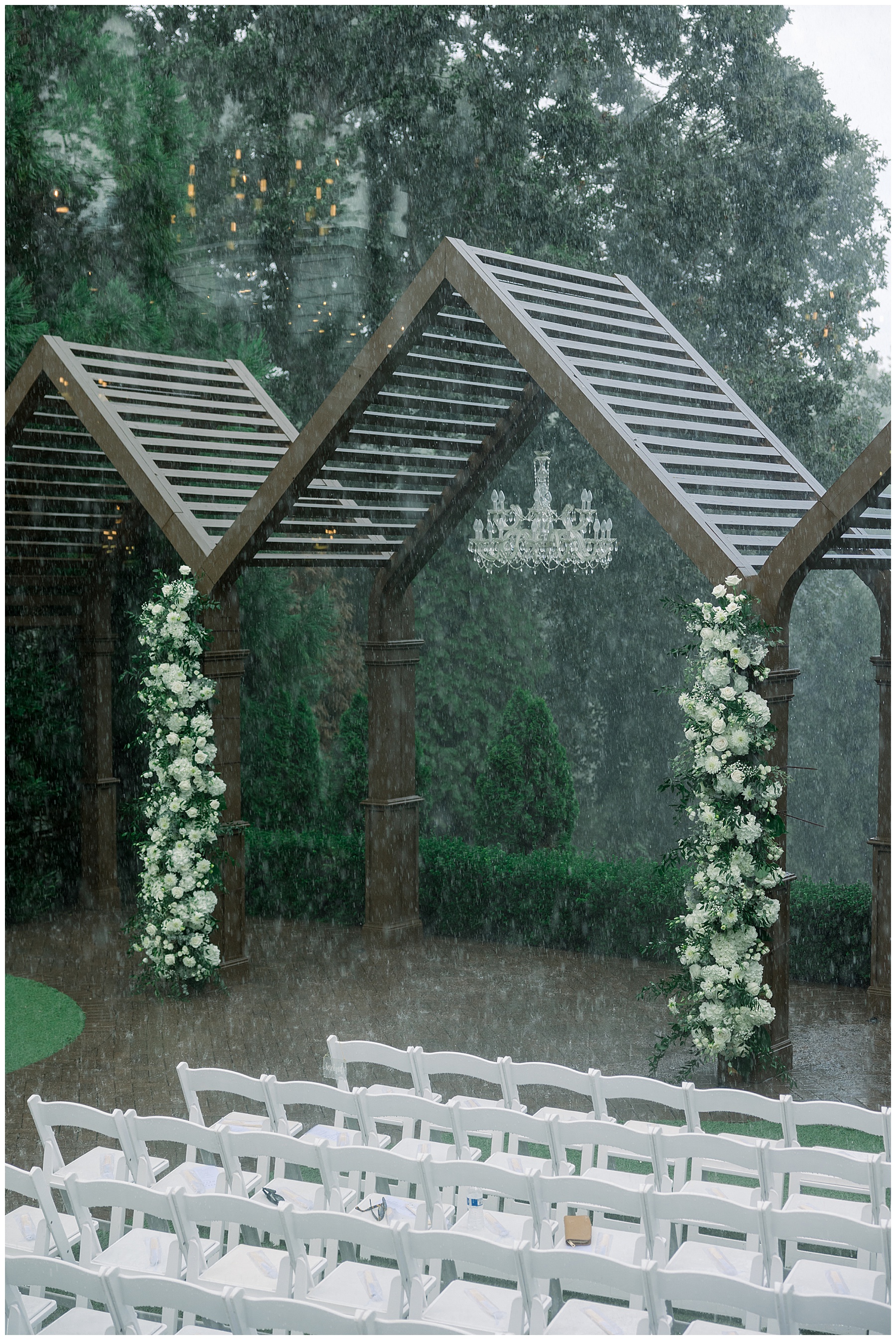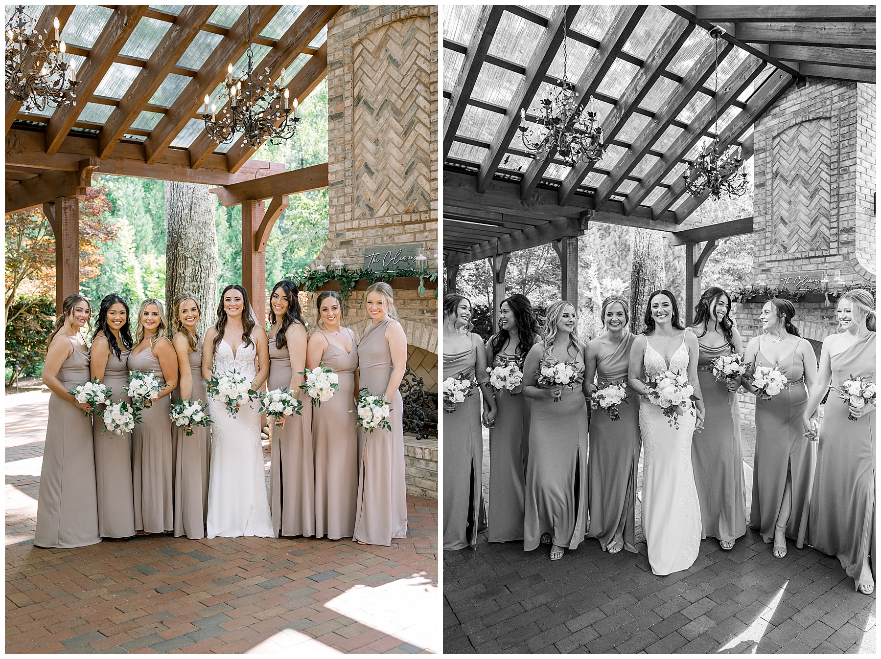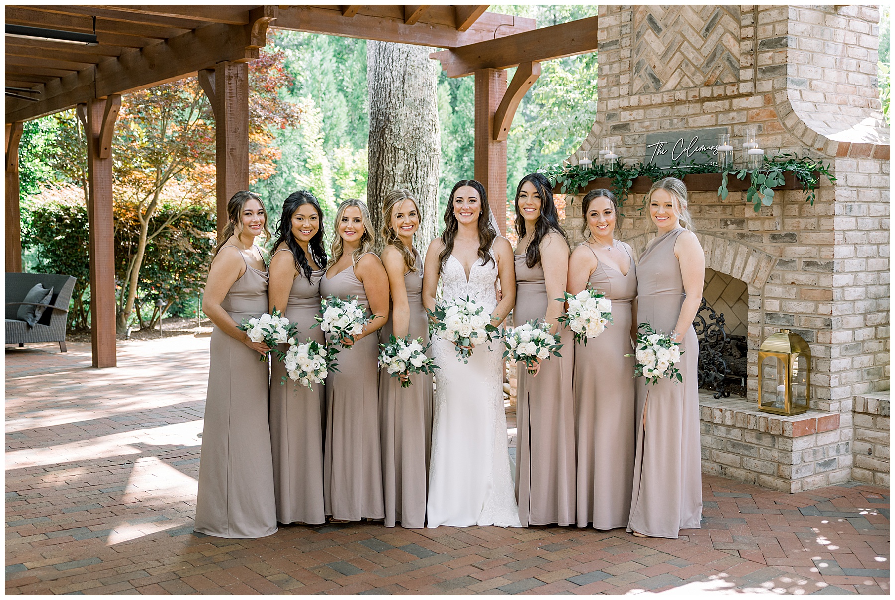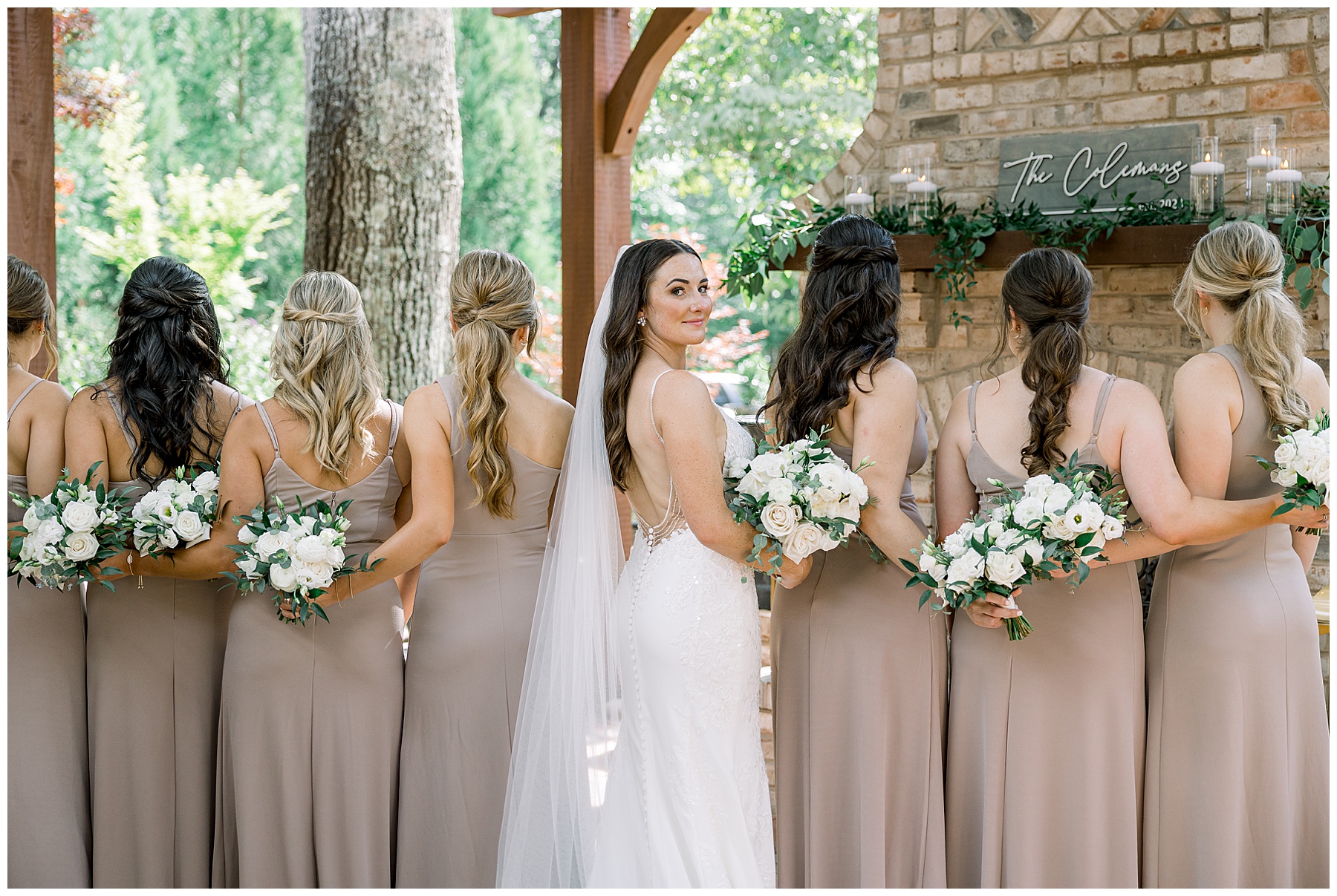 Thankfully, we photographed ALL bridal party photos pre-ceremony too – which turned out wonderfully because out of NOWHERE a huge downpour of rain started just as the ceremony was supposed to get started. They opted to wait about 20 minutes, but when the rain wasn’t letting up, Kelsey & Corey decided to just go with it – and their ceremony was in the RAIN (literally a downpour) yet they embraced it! After the ceremony, the rain slowed, and they even had a RAINBOW literally right above the pergola. How special!!!
