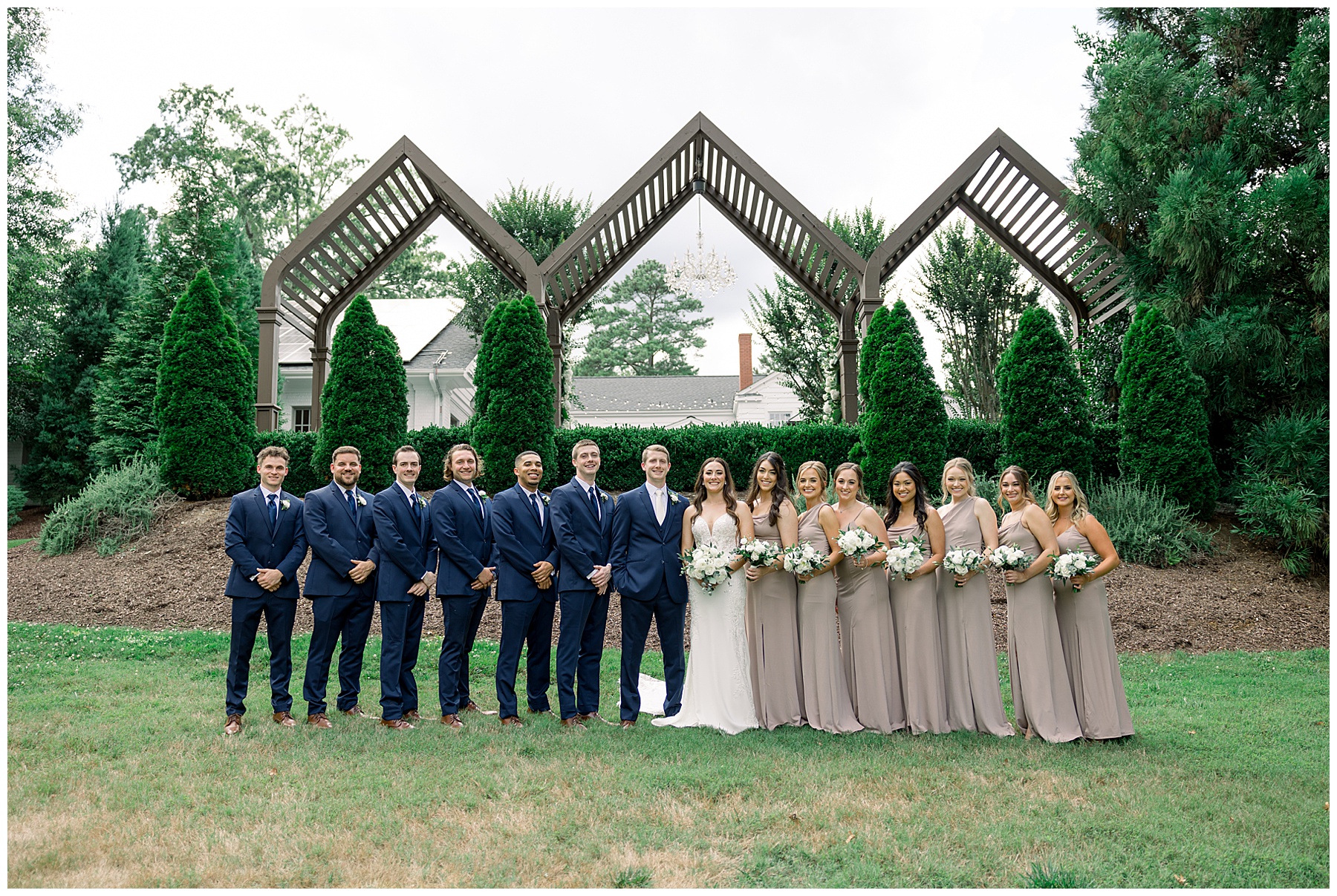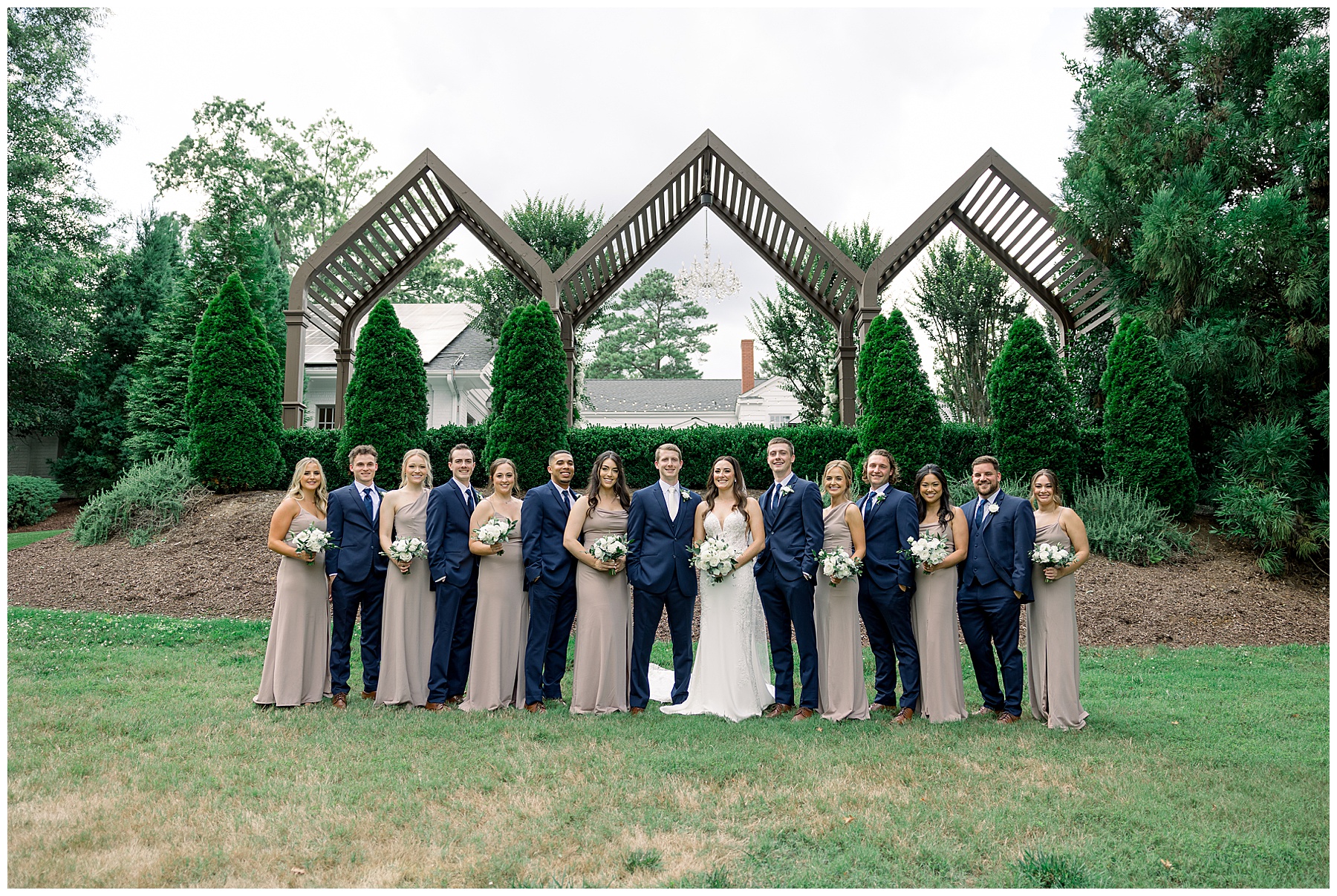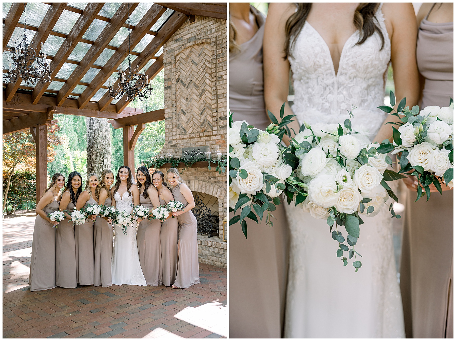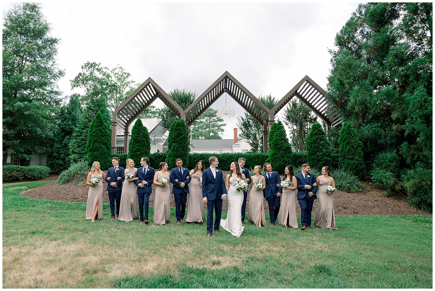 Thankfully, we photographed ALL bridal party photos pre-ceremony too – which turned out wonderfully because out of NOWHERE a huge downpour of rain started just as the ceremony was supposed to get started. They opted to wait about 20 minutes, but when the rain wasn’t letting up, Kelsey & Corey decided to just go with it – and their ceremony was in the RAIN (literally a downpour) yet they embraced it! After the ceremony, the rain slowed, and they even had a RAINBOW literally right above the pergola. How special!!!