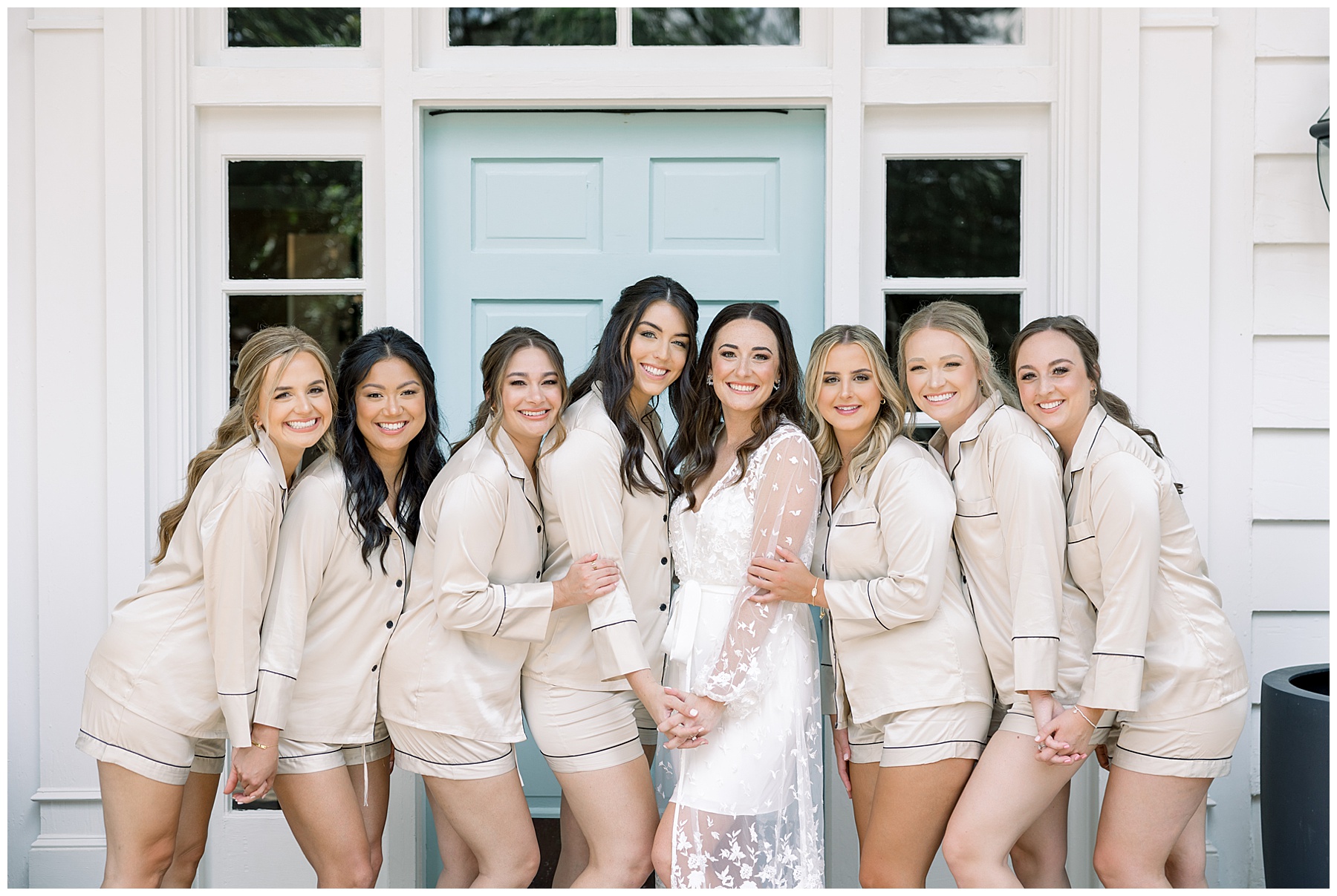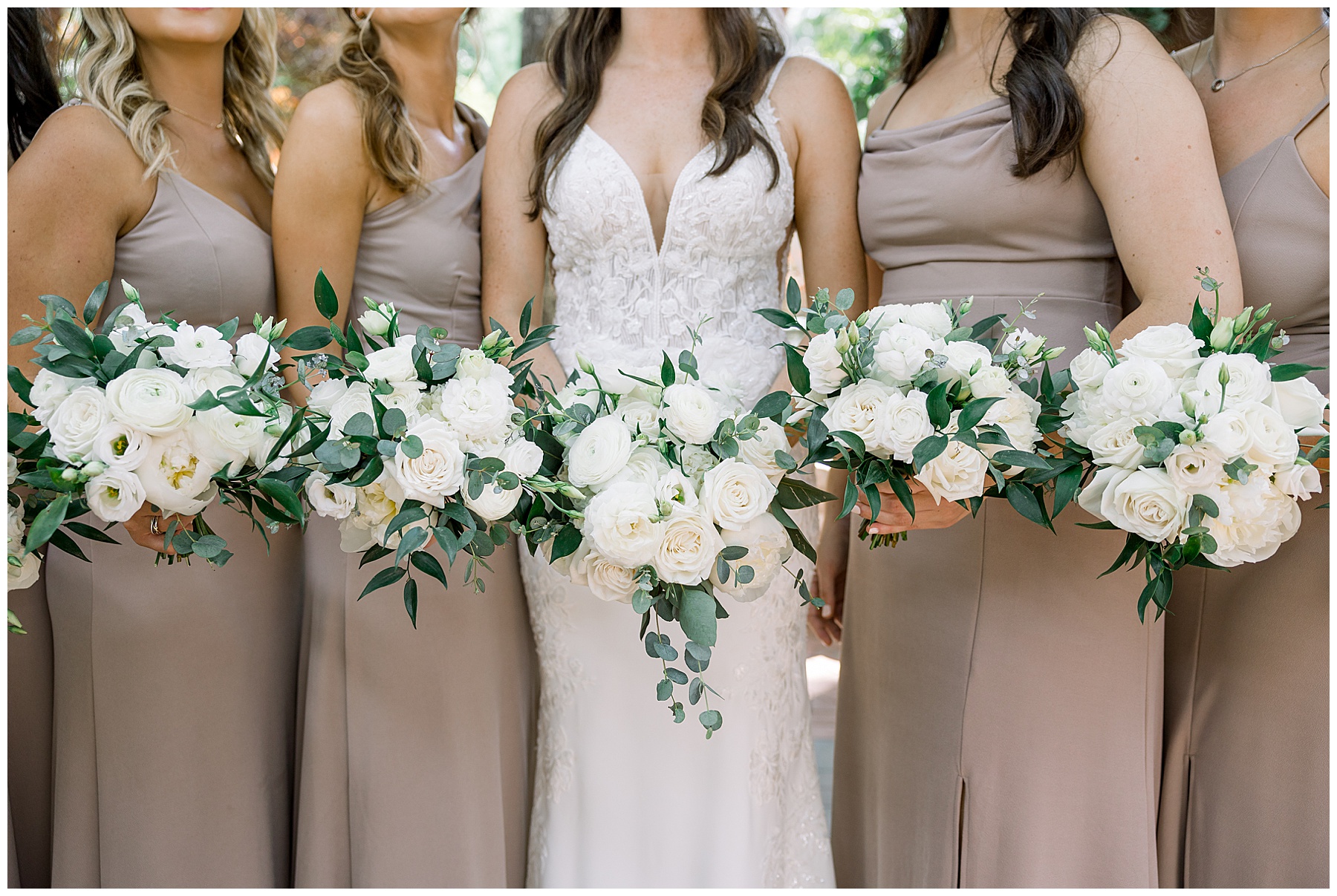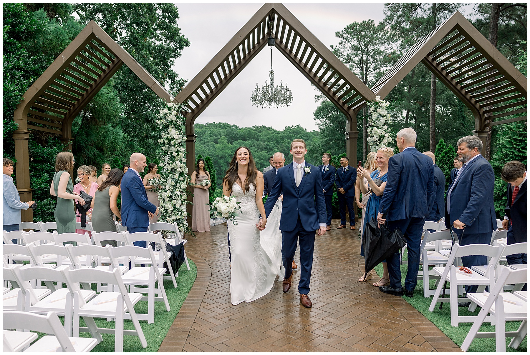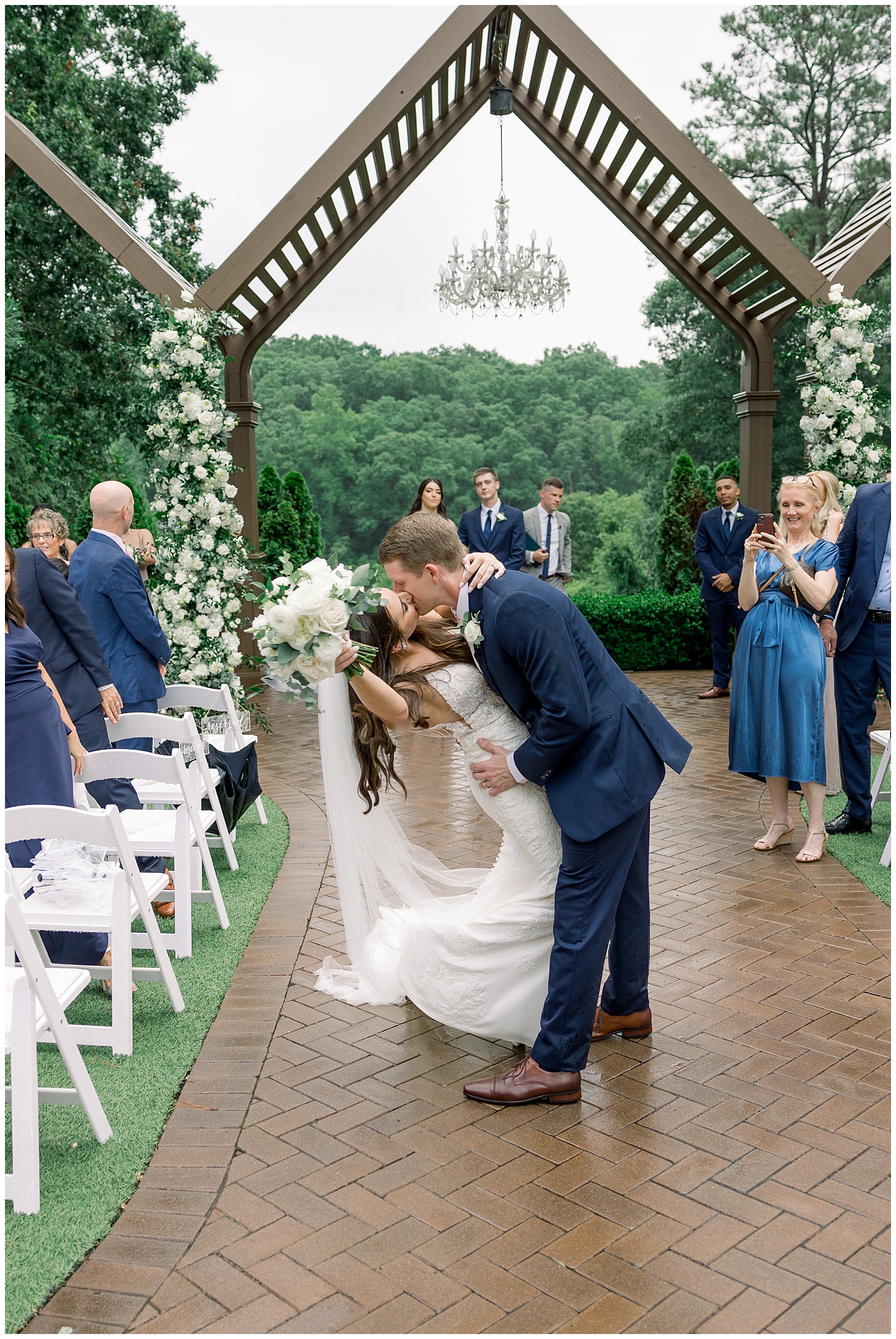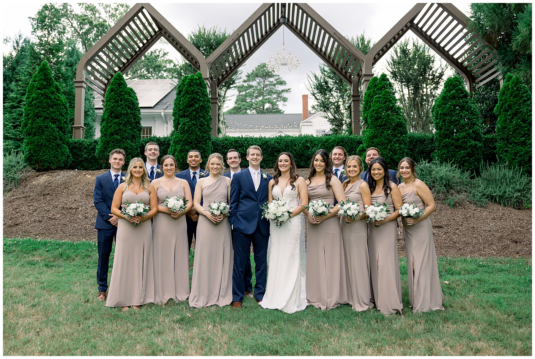Thankfully, we photographed ALL bridal party photos pre-ceremony too – which turned out wonderfully because out of NOWHERE a huge downpour of rain started just as the ceremony was supposed to get started. They opted to wait about 20 minutes, but when the rain wasn’t letting up, Kelsey & Corey decided to just go with it – and their ceremony was in the RAIN (literally a downpour) yet they embraced it! After the ceremony, the rain slowed, and they even had a RAINBOW literally right above the pergola. How special!!!