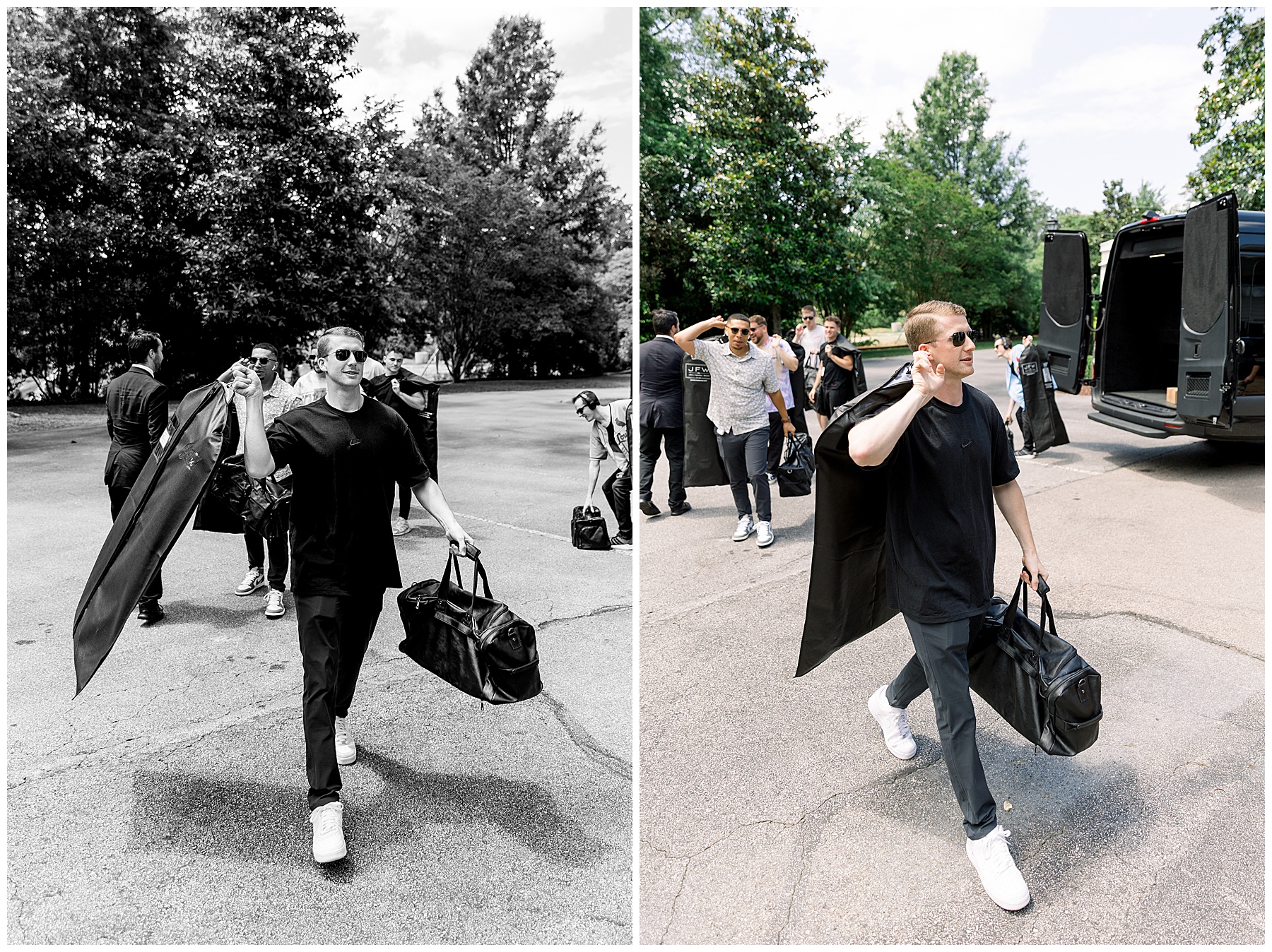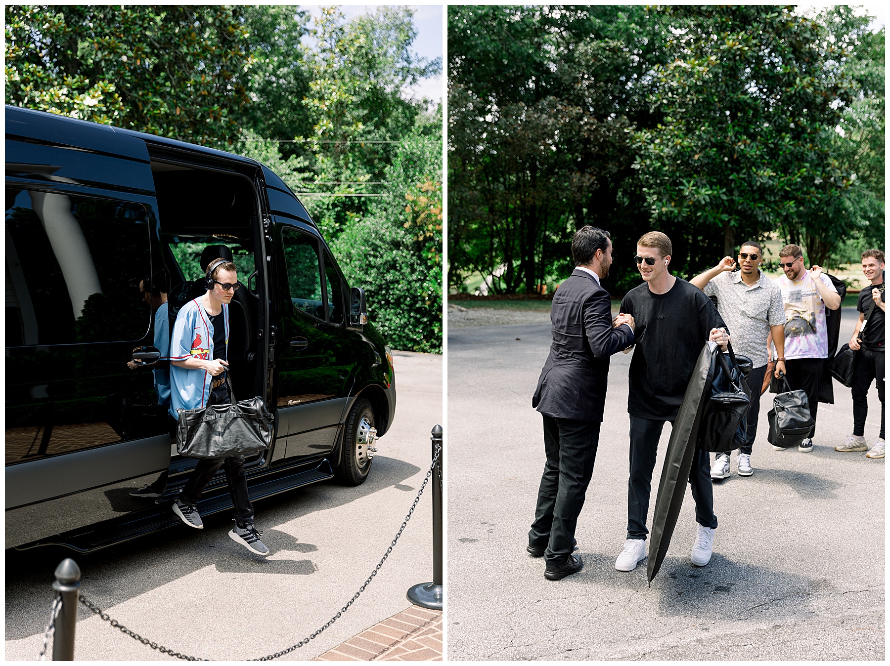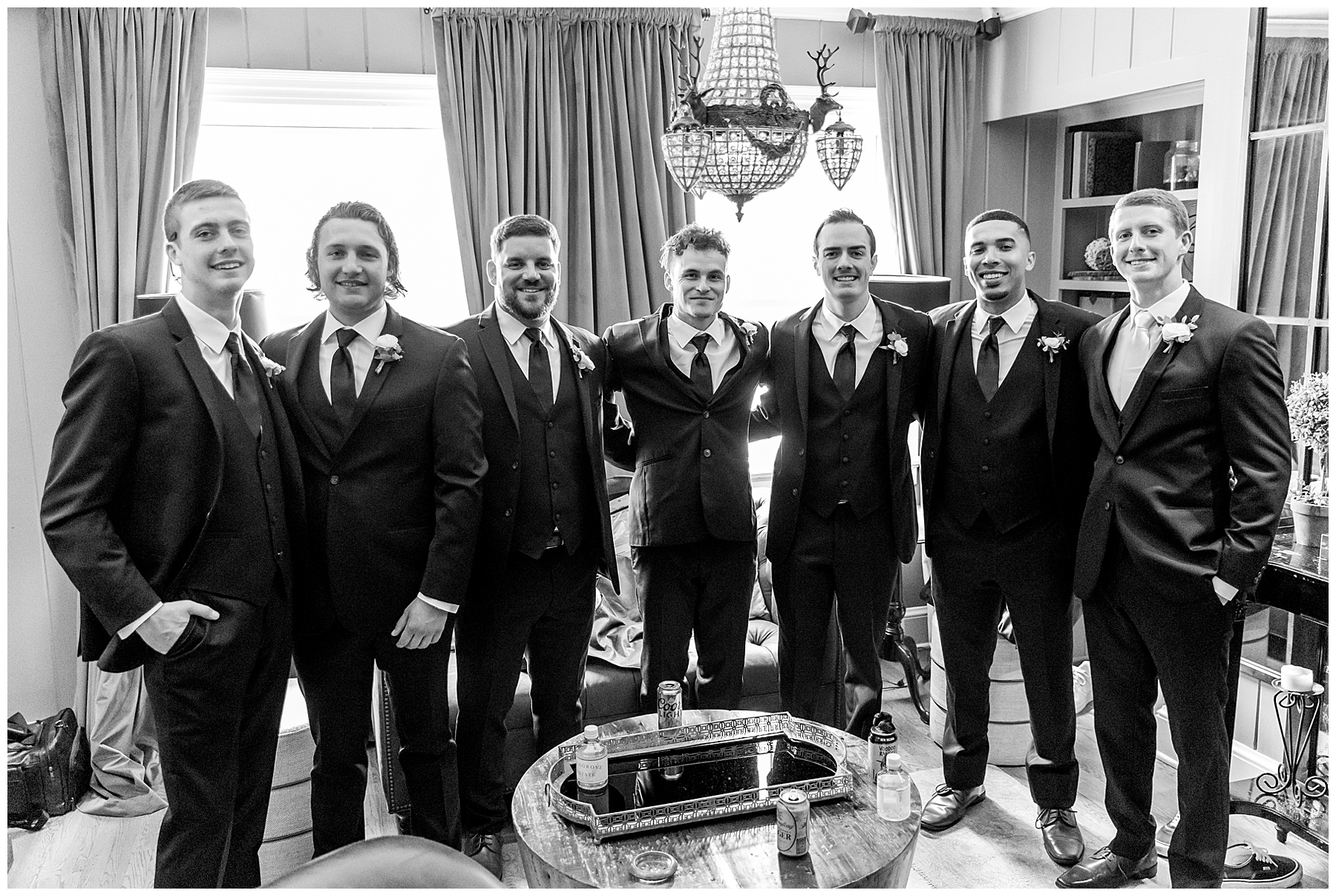 When the guys arrived at the Highgrove, it was AWESOME. They did “walk up photos” – like a NFL pre-game TV coverage of when the athletes arrive in all their boujee outfits. It’s such a fun way to start the wedding day, and Phillip had a great time with them! Even the bus driver participated and gave them all a handshake as they walked in – it was so fun! :)