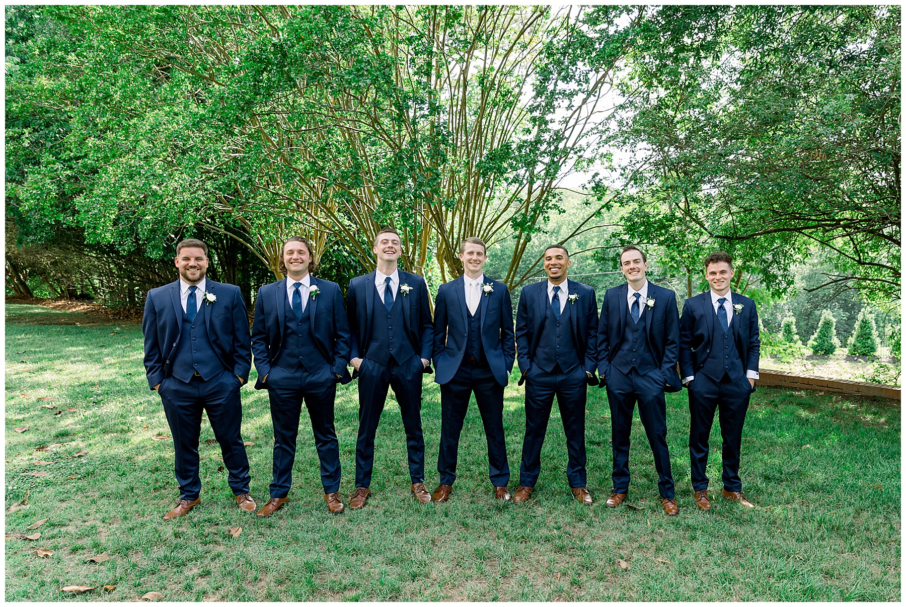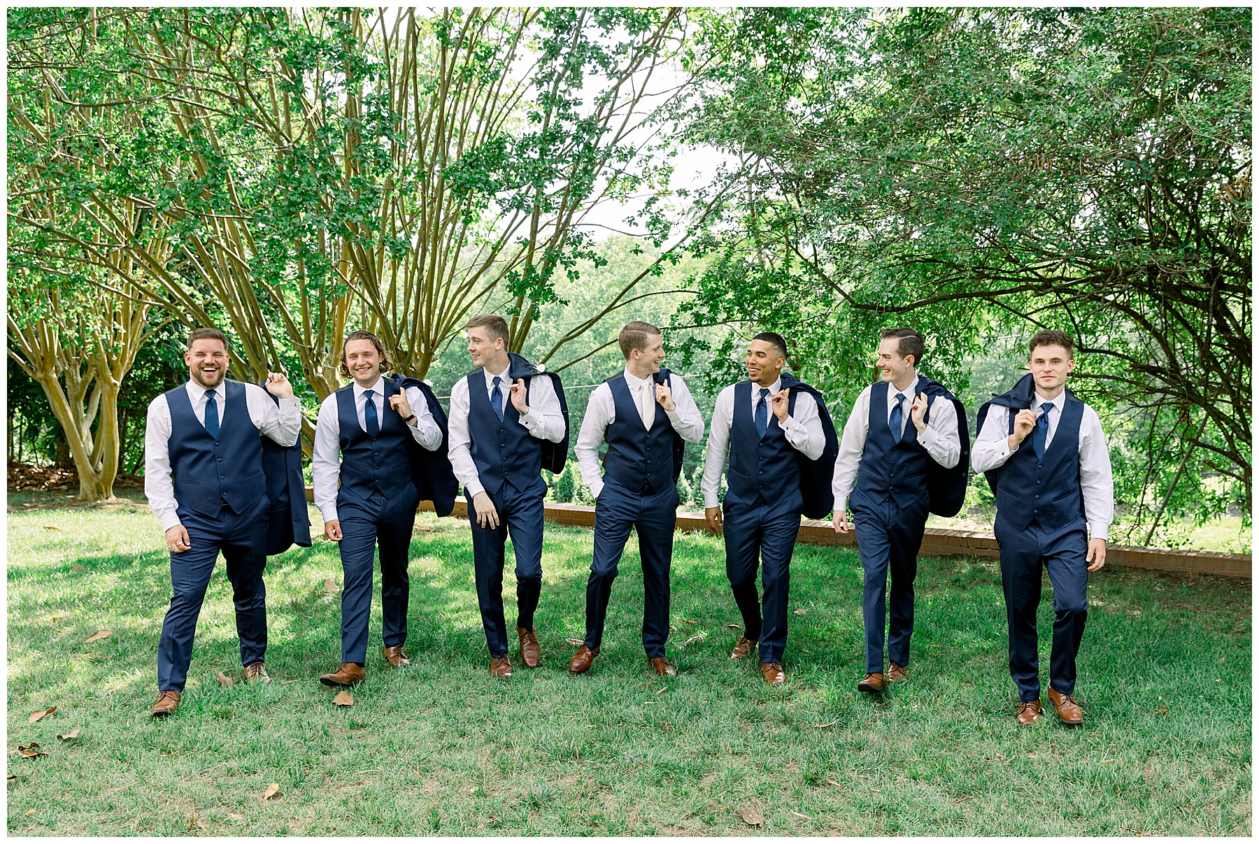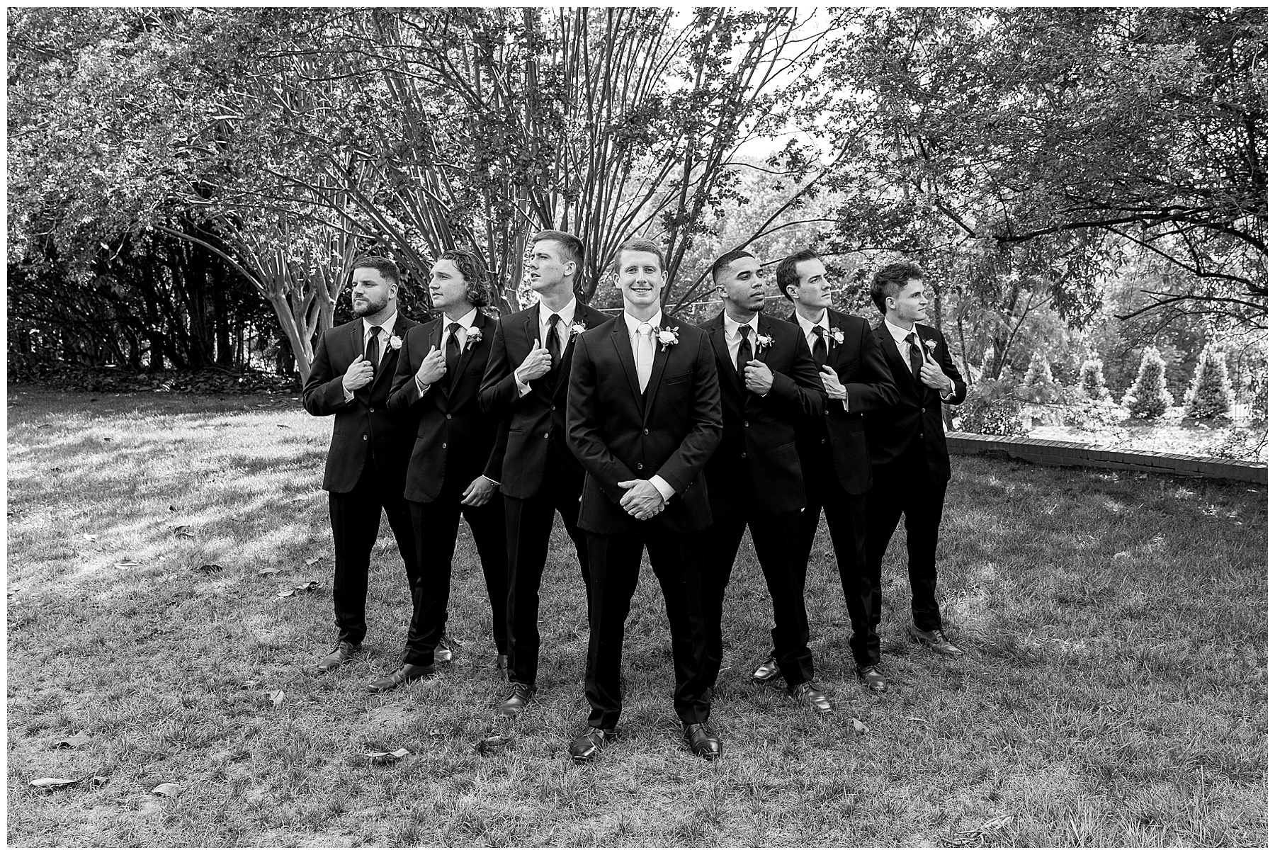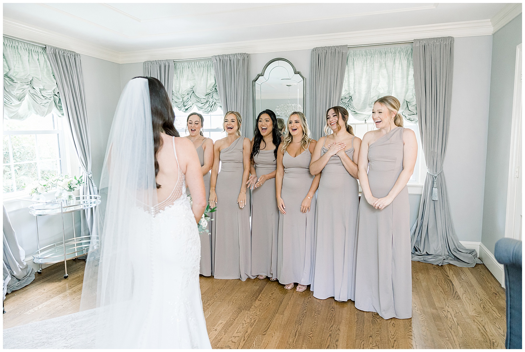 When the guys arrived at the Highgrove, it was AWESOME. They did “walk up photos” – like a NFL pre-game TV coverage of when the athletes arrive in all their boujee outfits. It’s such a fun way to start the wedding day, and Phillip had a great time with them! Even the bus driver participated and gave them all a handshake as they walked in – it was so fun! :)