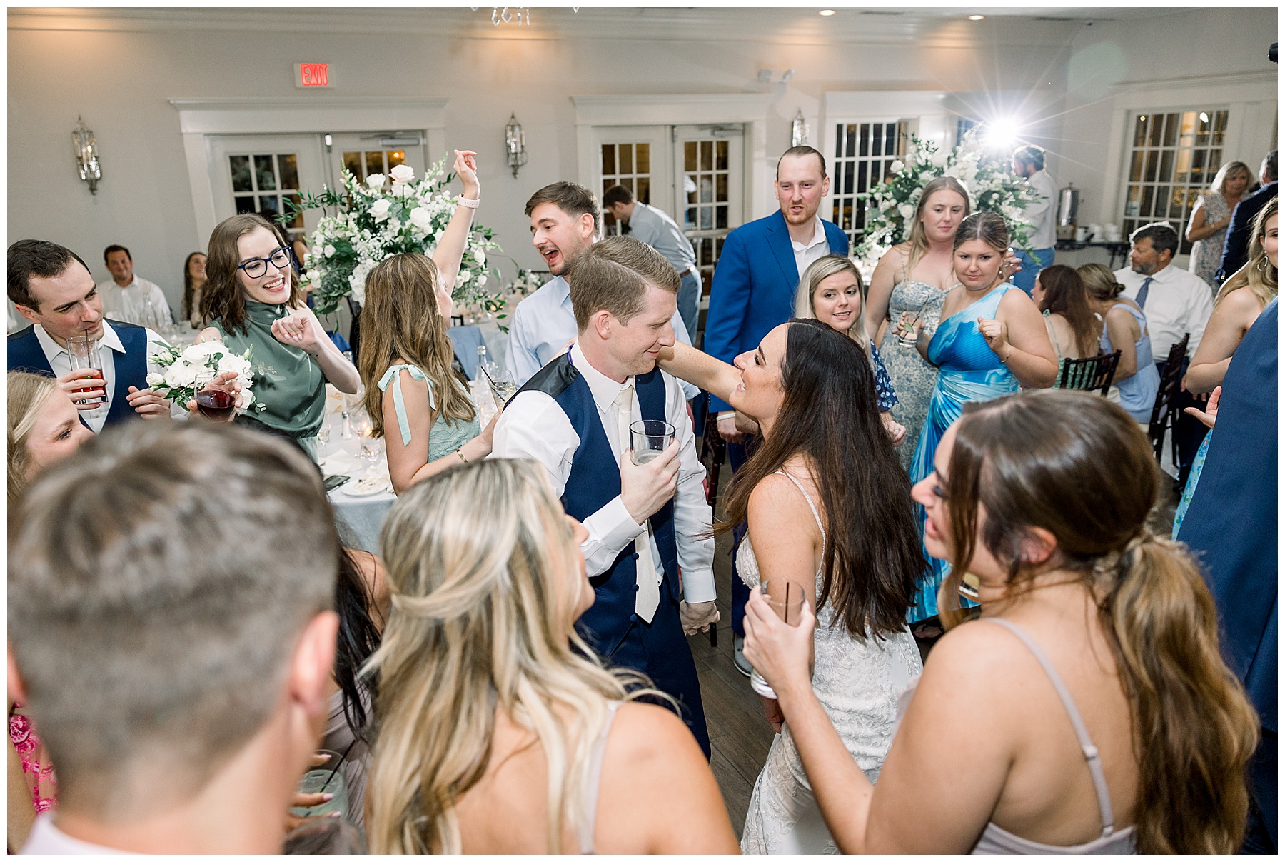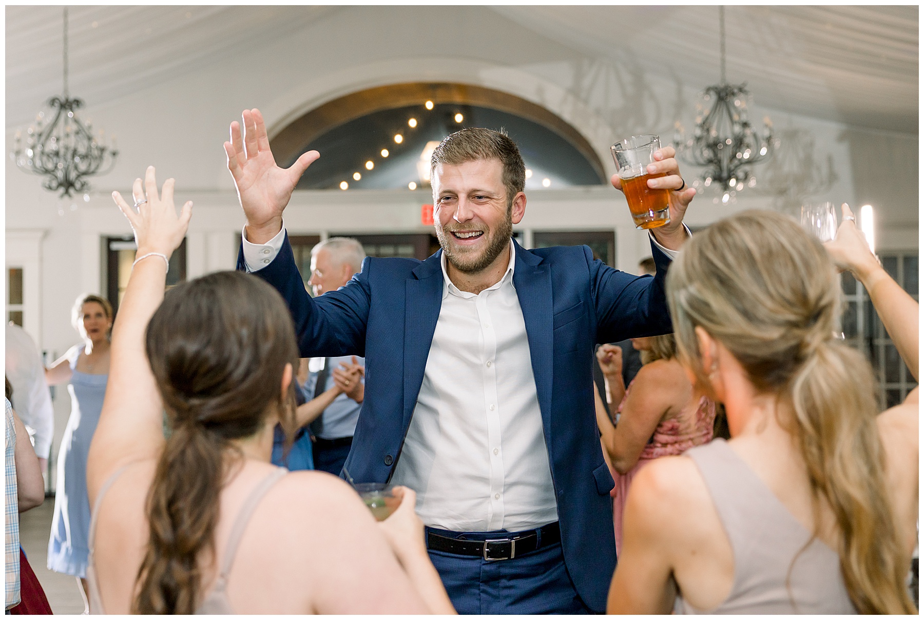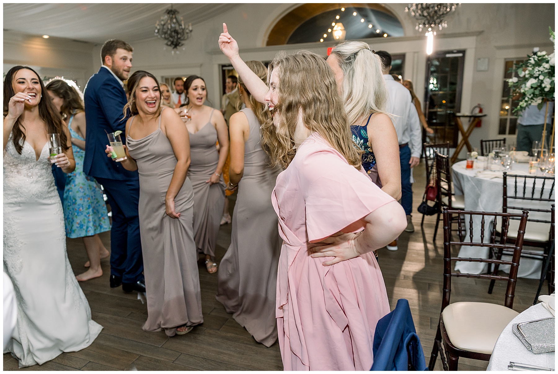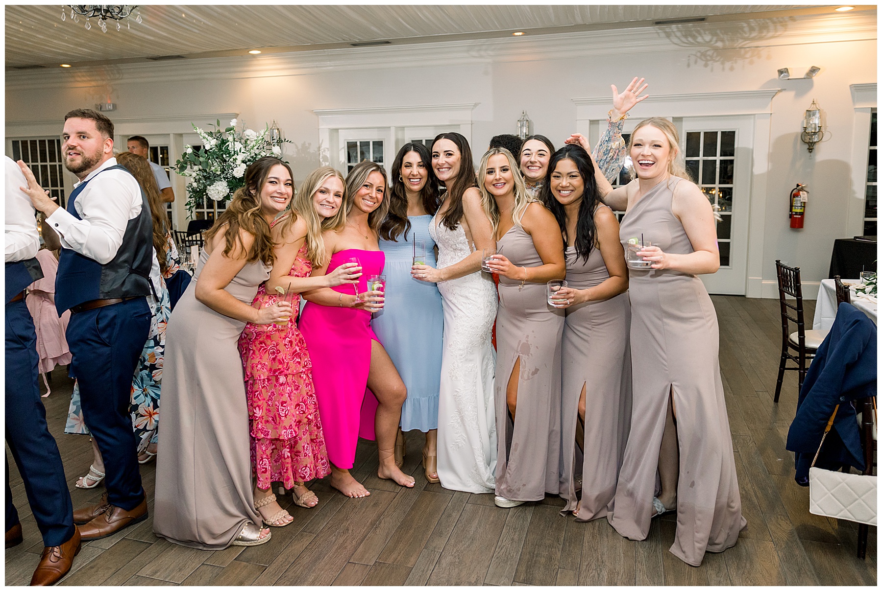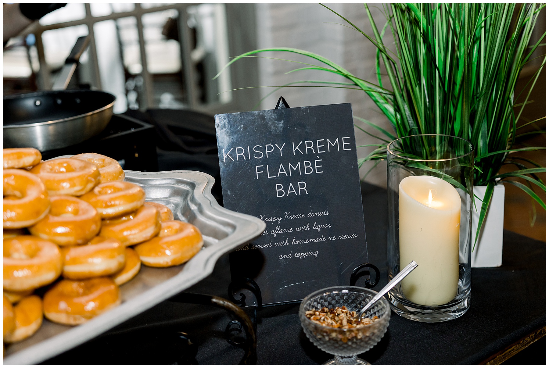 The reception kicked off with a beautiful choreographed First Dance, sweet toasts, delicious food, more pretty drinks, cake, and even a Krispy Kreme flambe bar for a late night snack! All Events DJ (Jonah) kept the dance floor packed all night long, and everyone was having the BEST TIME together!!!
