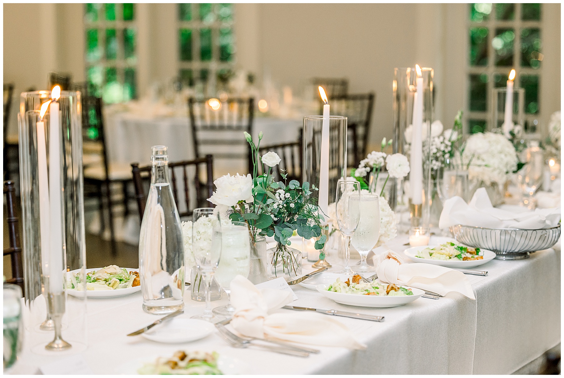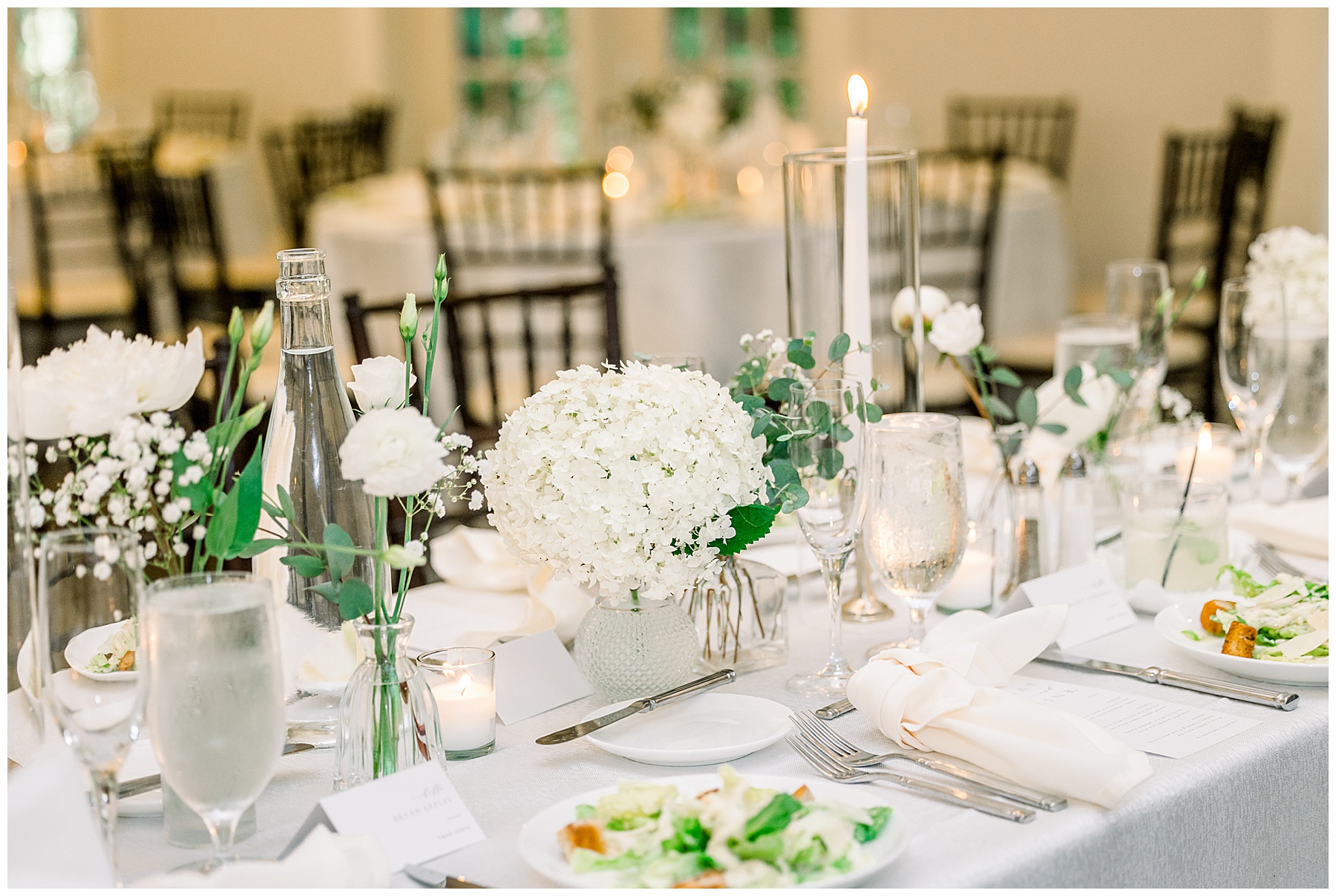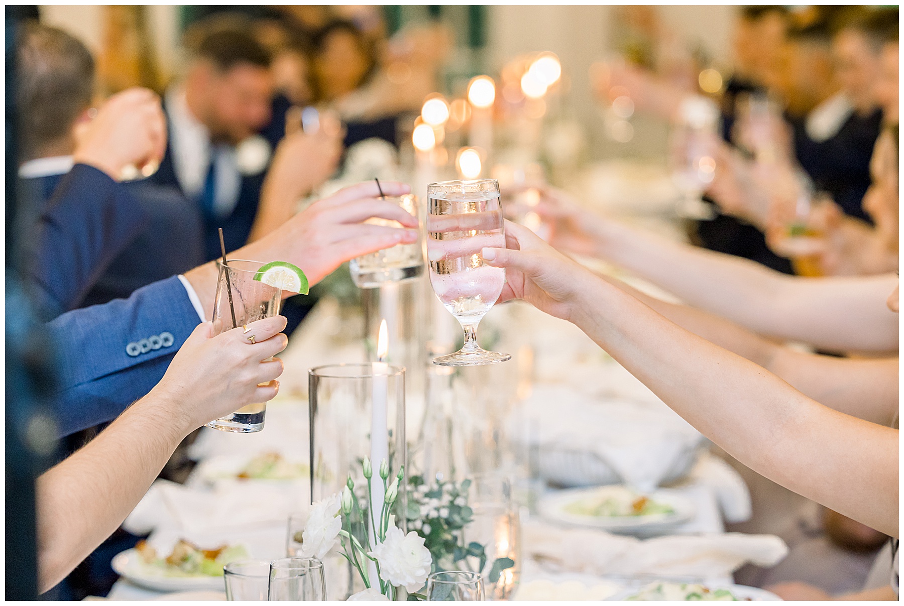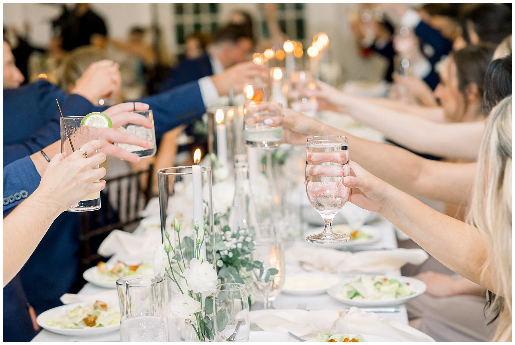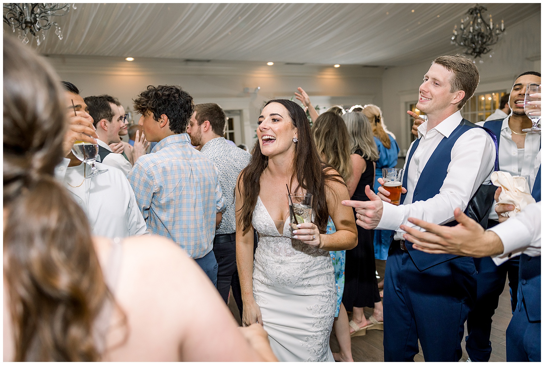 The reception kicked off with a beautiful choreographed First Dance, sweet toasts, delicious food, more pretty drinks, cake, and even a Krispy Kreme flambe bar for a late night snack! All Events DJ (Jonah) kept the dance floor packed all night long, and everyone was having the BEST TIME together!!!
