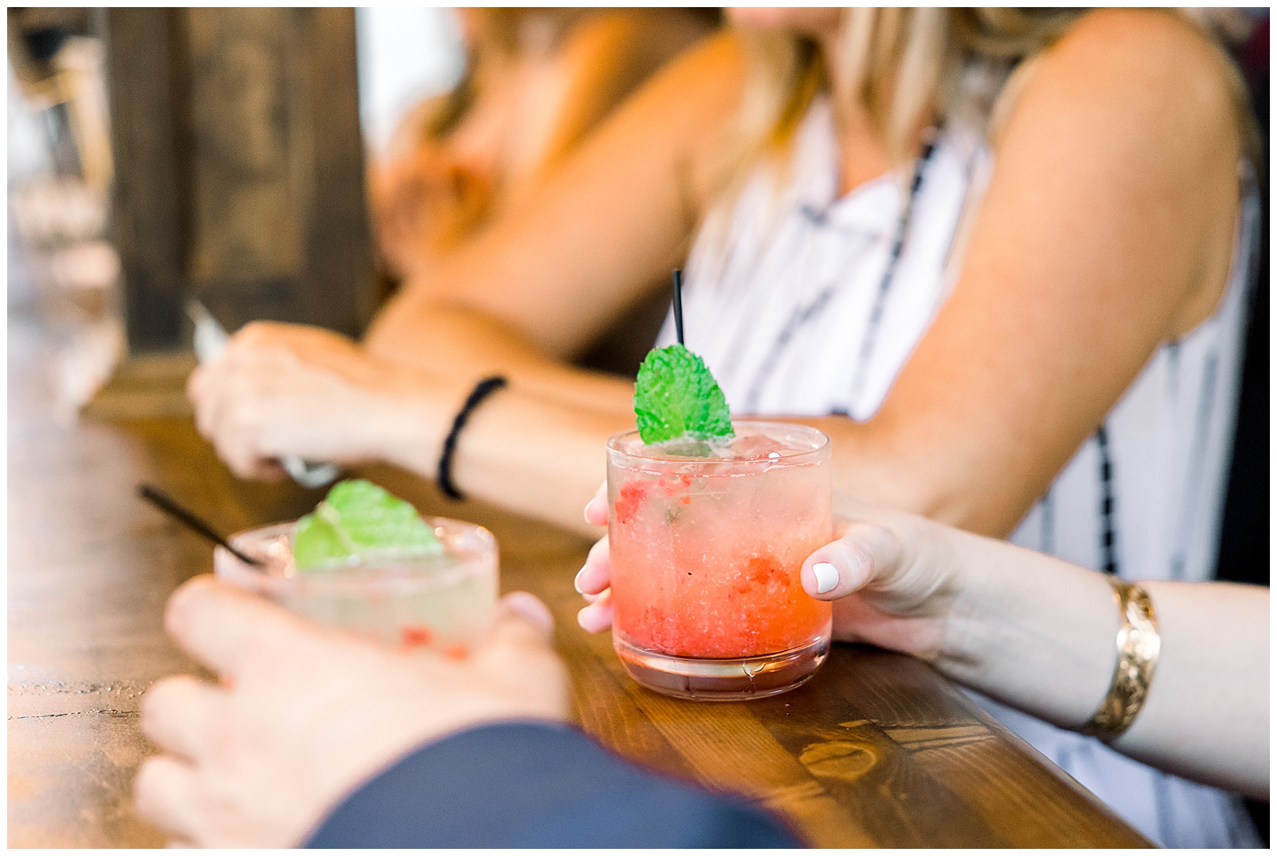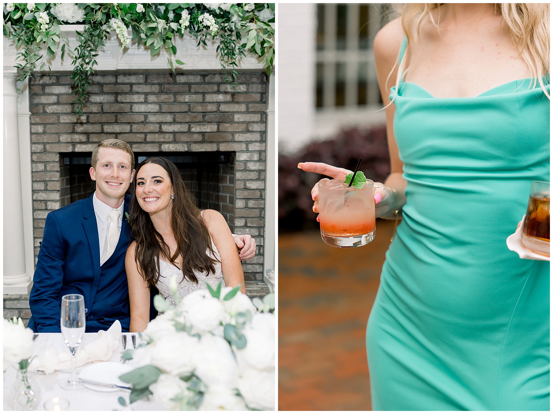 The rain kept starting and stopping, but Kelsey and Corey just went with the flow, and ran out to take more photos whenever we could. Their guests were treated to drinks, yummy appetizers, and even fancy slices of PIZZA during the cocktail hour!!!