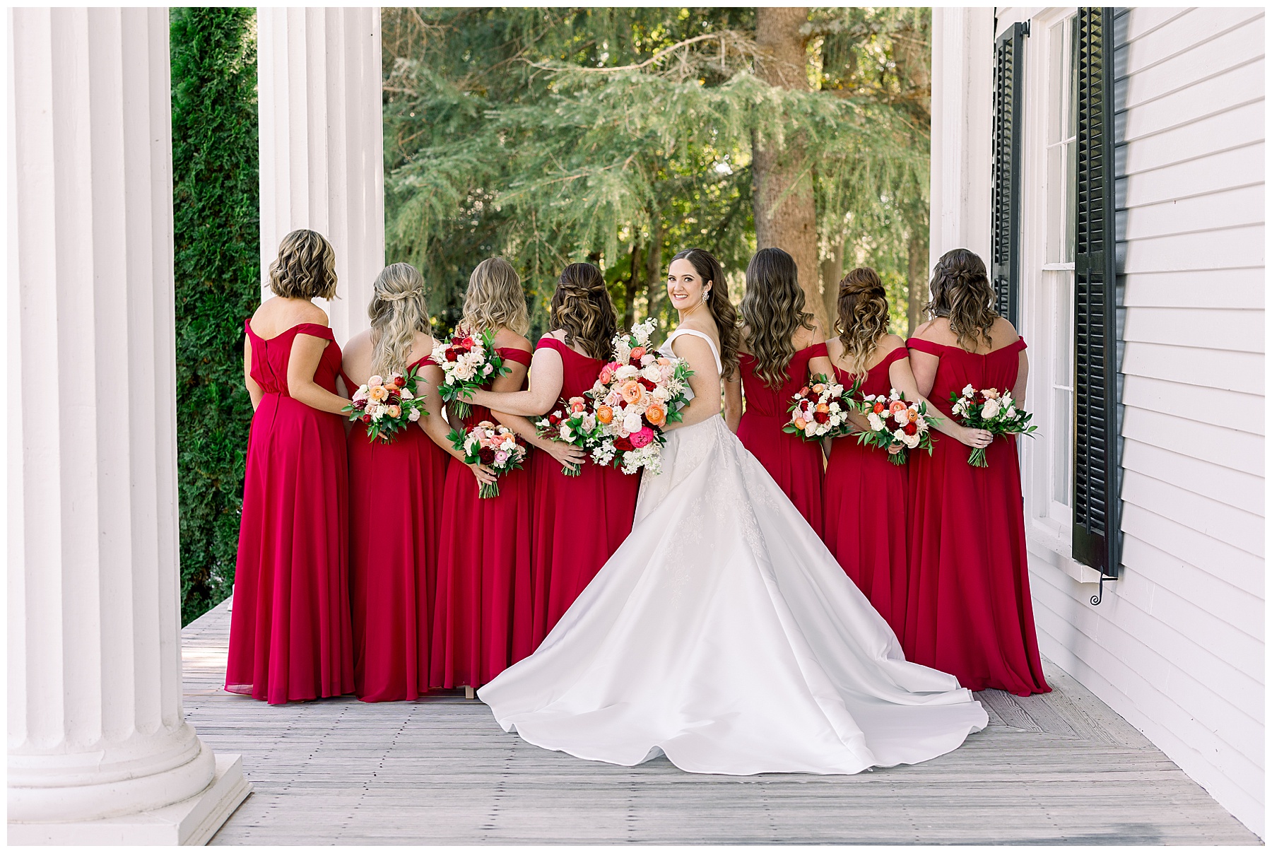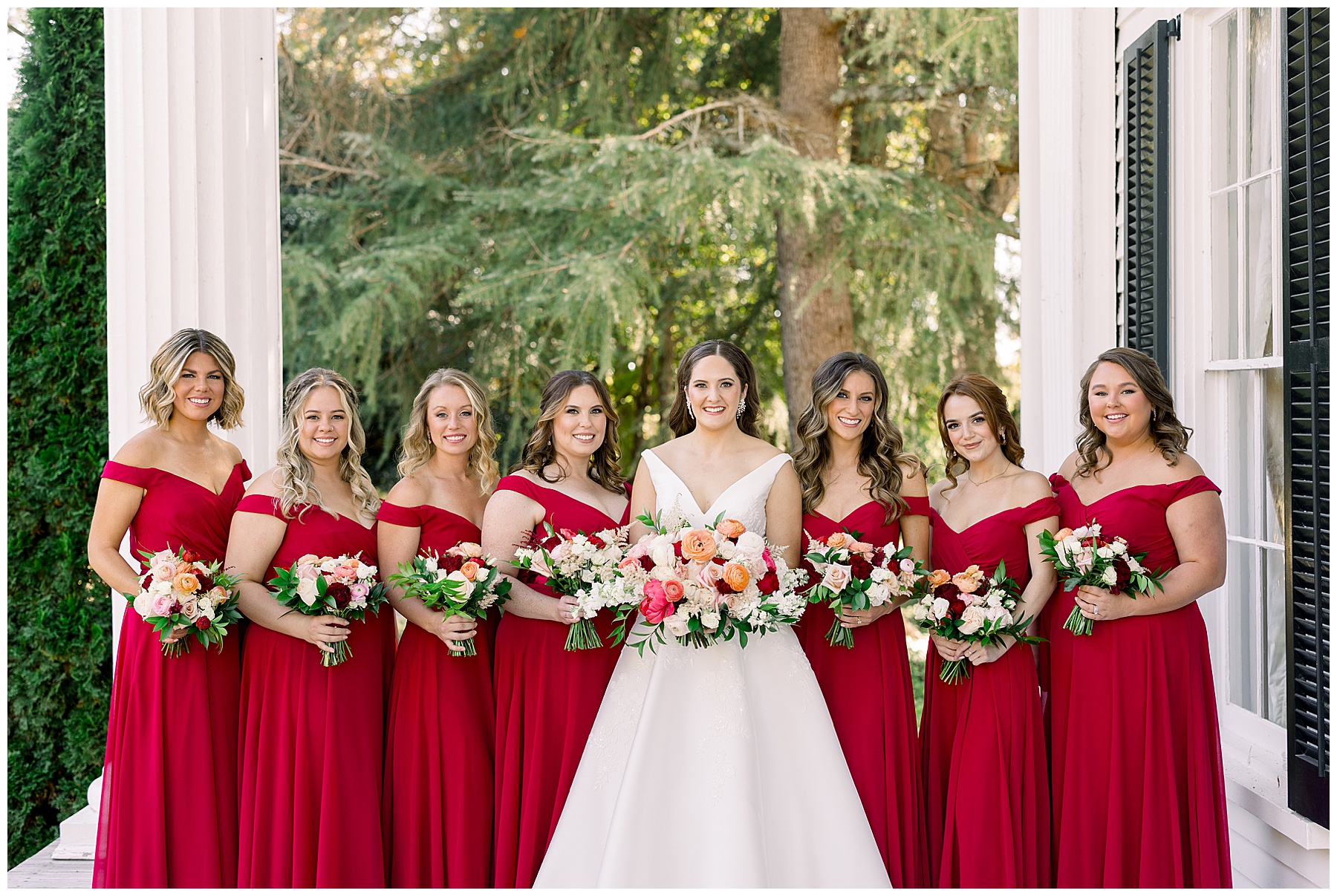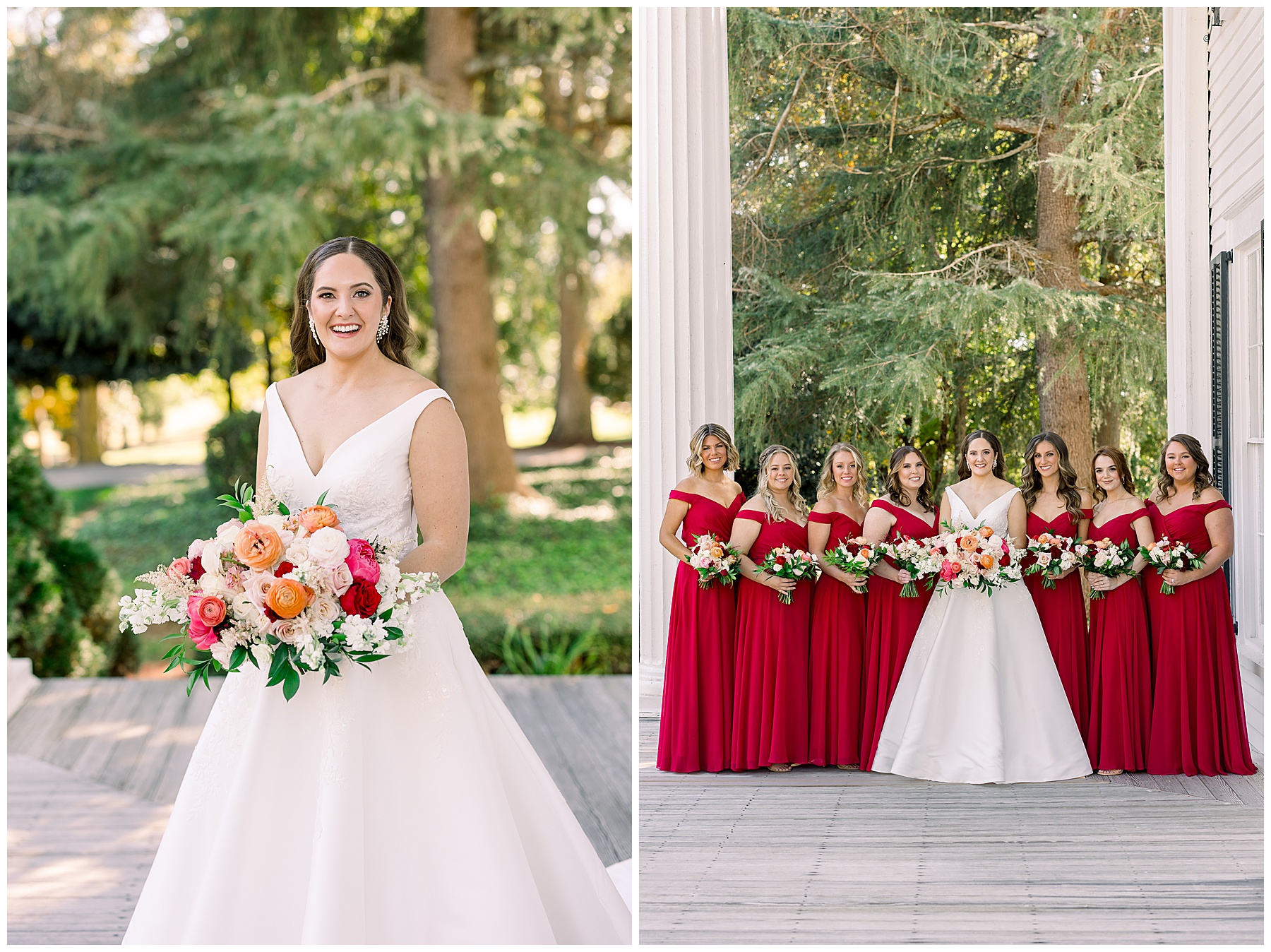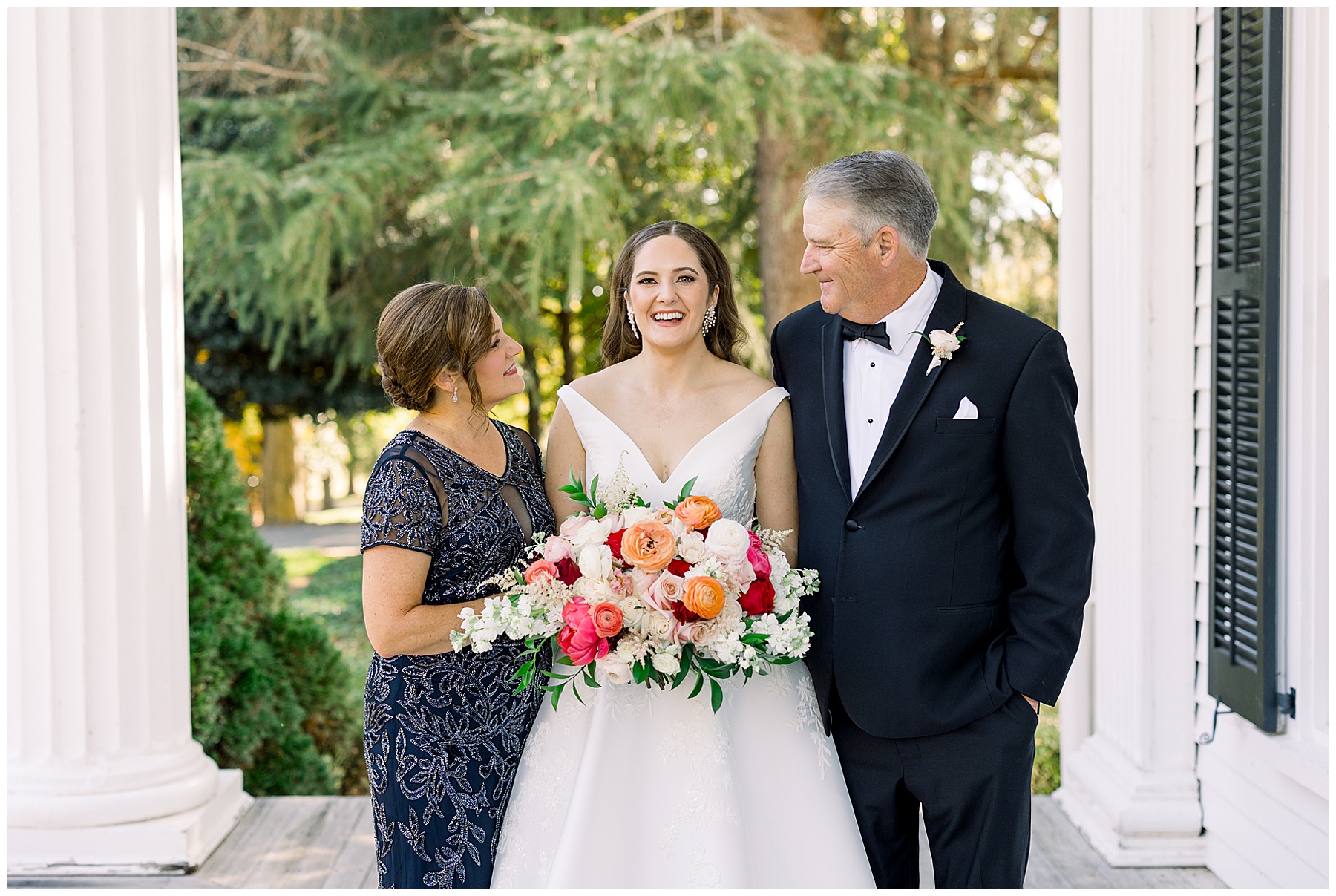 The ceremony took place on the front of the Manor house, and Expressions of Love Florist did an incredible job (as always) with creating beautiful floral pieces – with such texture and colors! The bright colors were such a nice contrast between the black/white of the Manor House. The ceremony was beautiful and I love that Ryan & Kerri chose to have communion together as their first act as husband and wife! It was really meaningful. After the ceremony & all the portraits – Kerri & Ryan dug up their bourbon and then entered their reception!