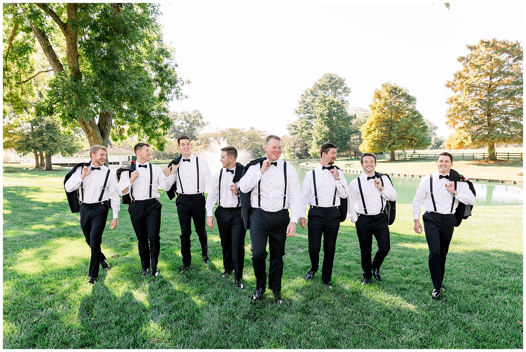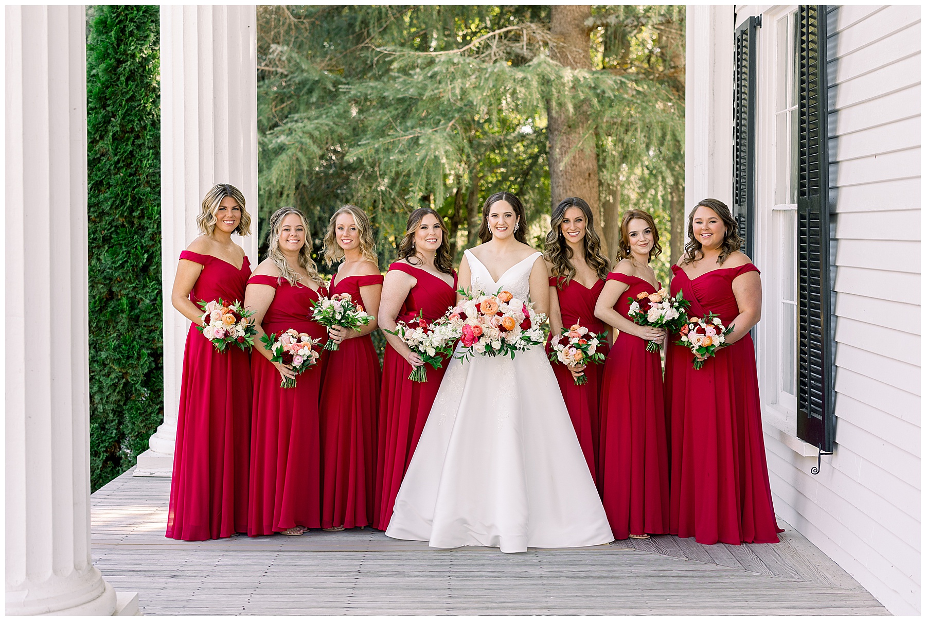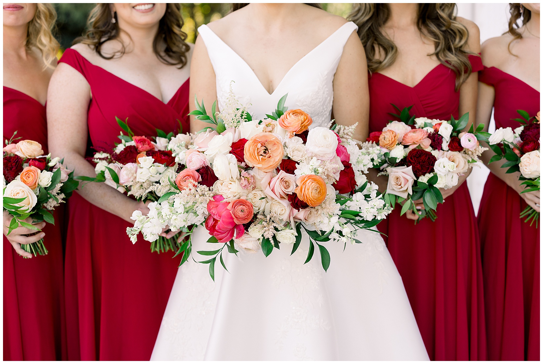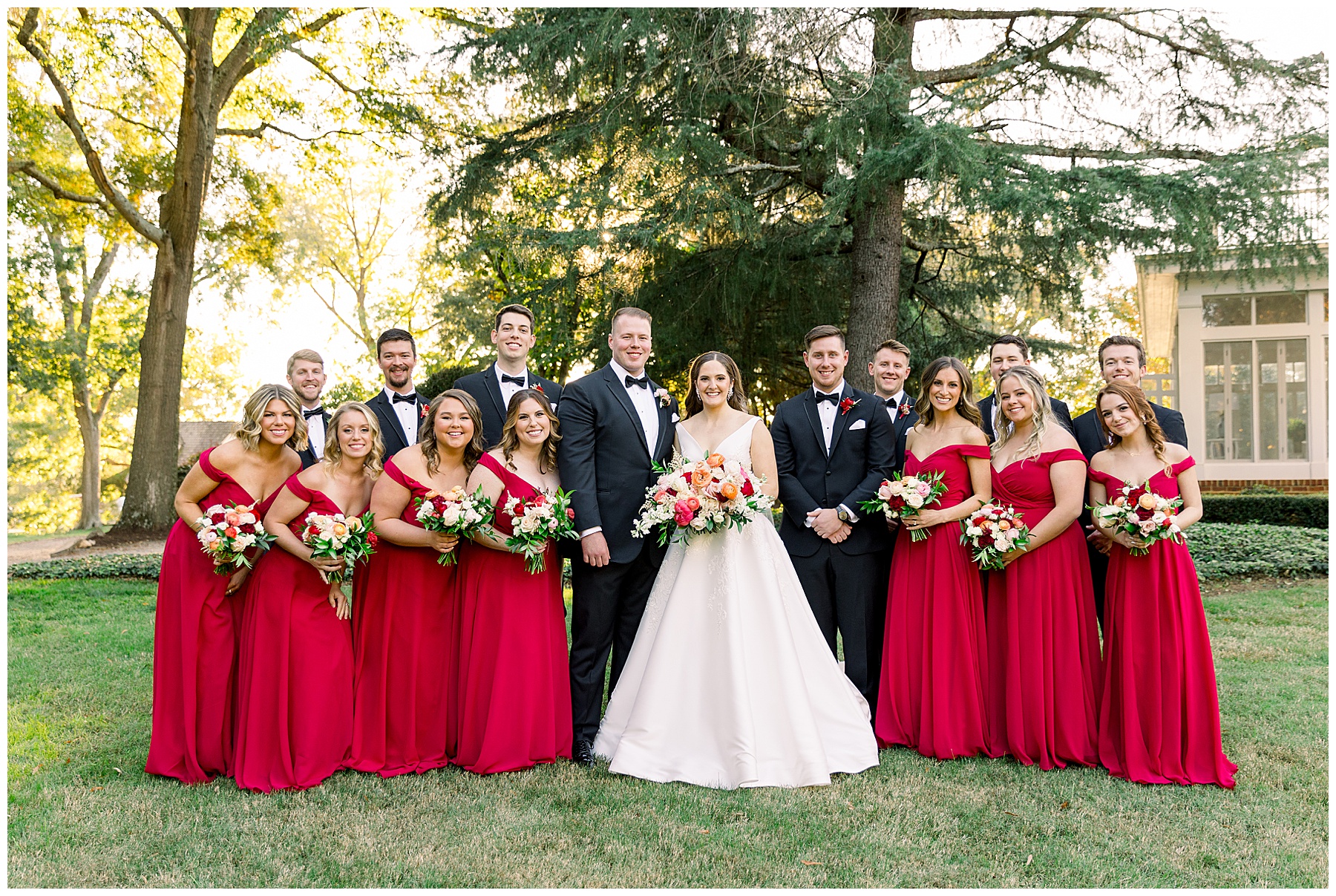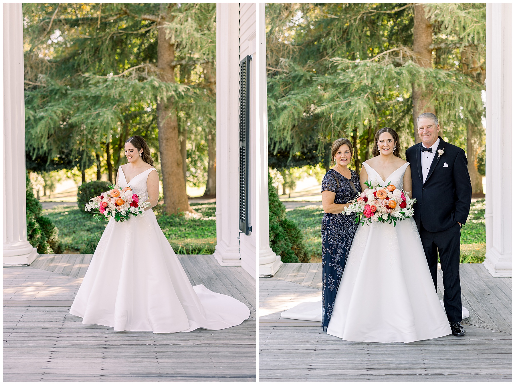 The ceremony took place on the front of the Manor house, and Expressions of Love Florist did an incredible job (as always) with creating beautiful floral pieces – with such texture and colors! The bright colors were such a nice contrast between the black/white of the Manor House. The ceremony was beautiful and I love that Ryan & Kerri chose to have communion together as their first act as husband and wife! It was really meaningful. After the ceremony & all the portraits – Kerri & Ryan dug up their bourbon and then entered their reception!