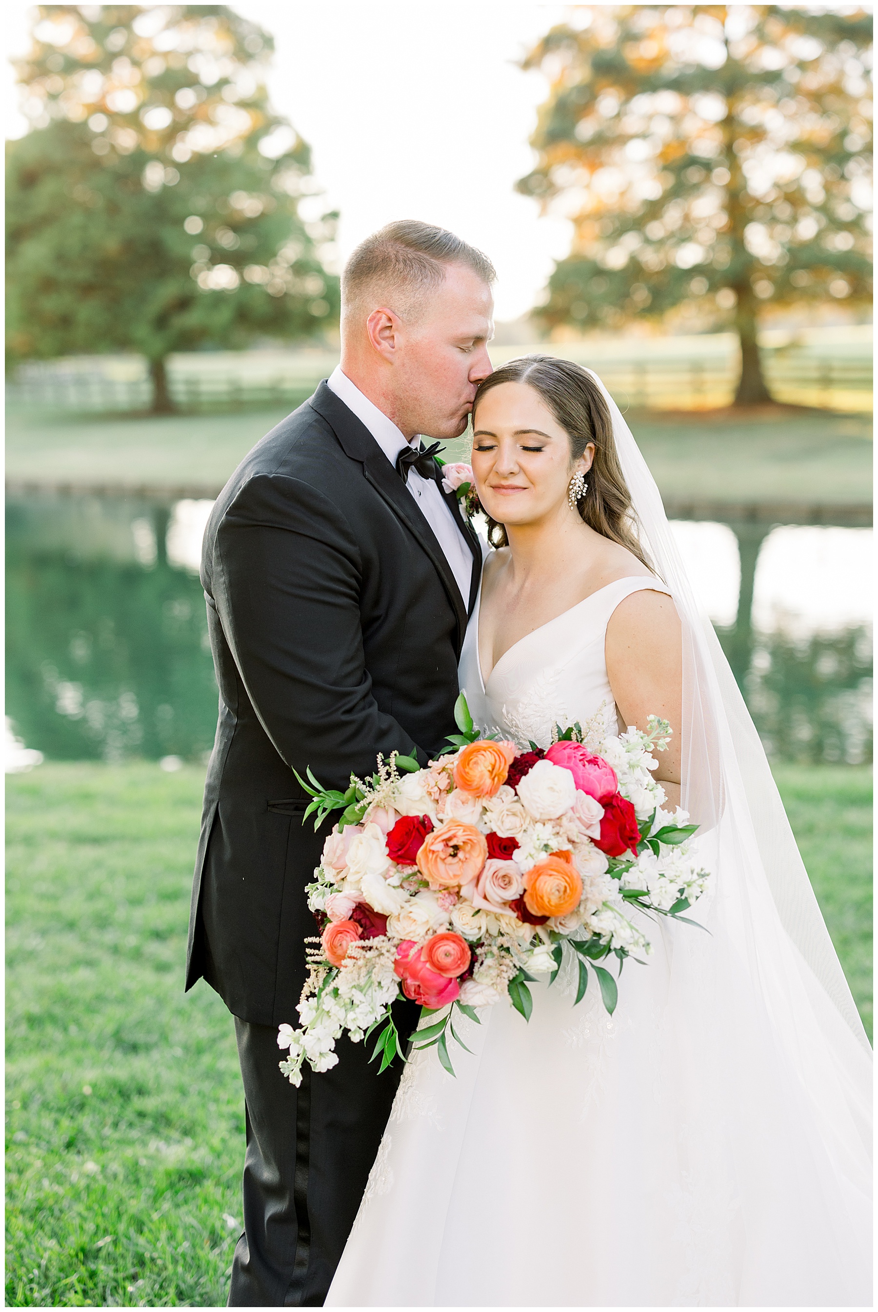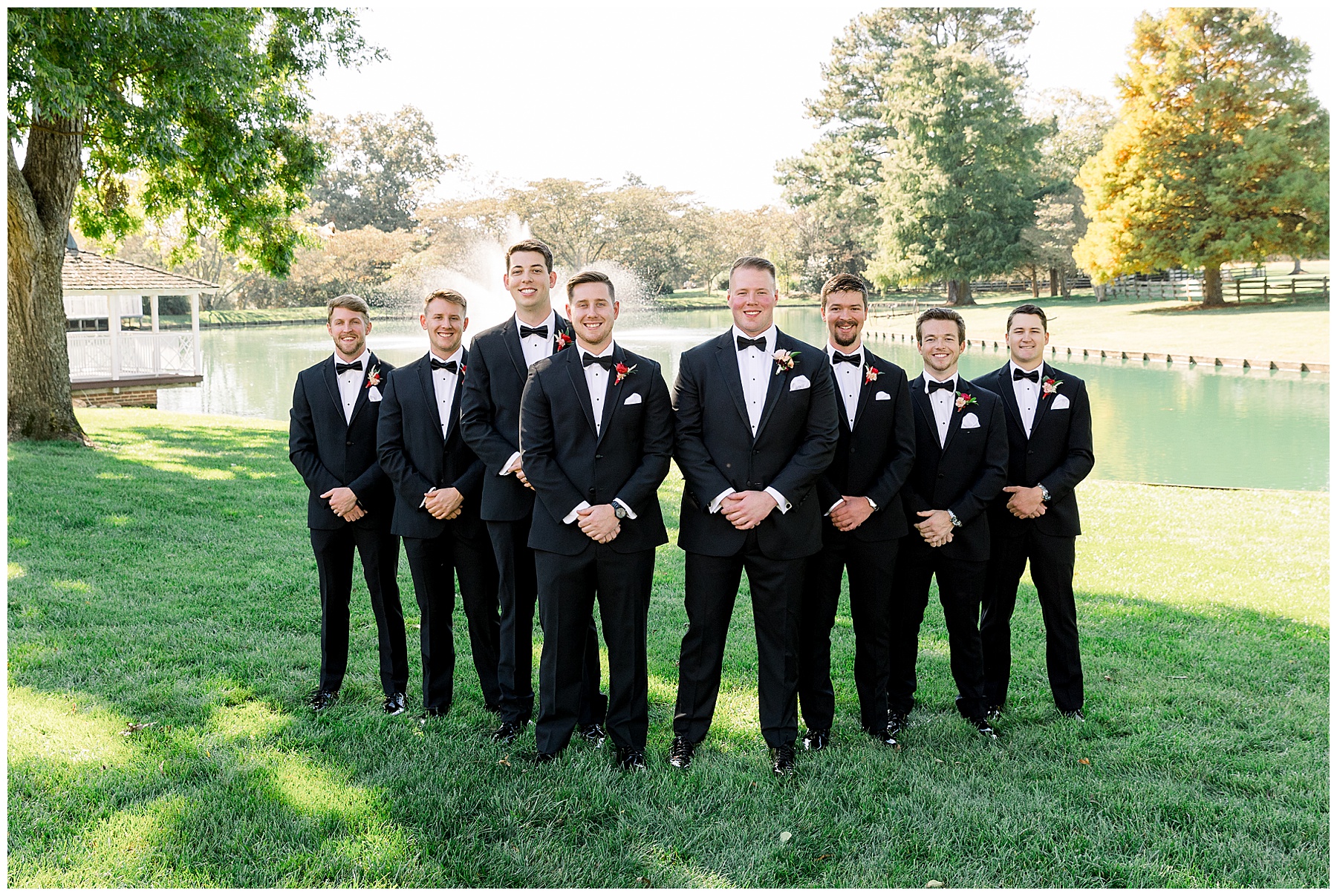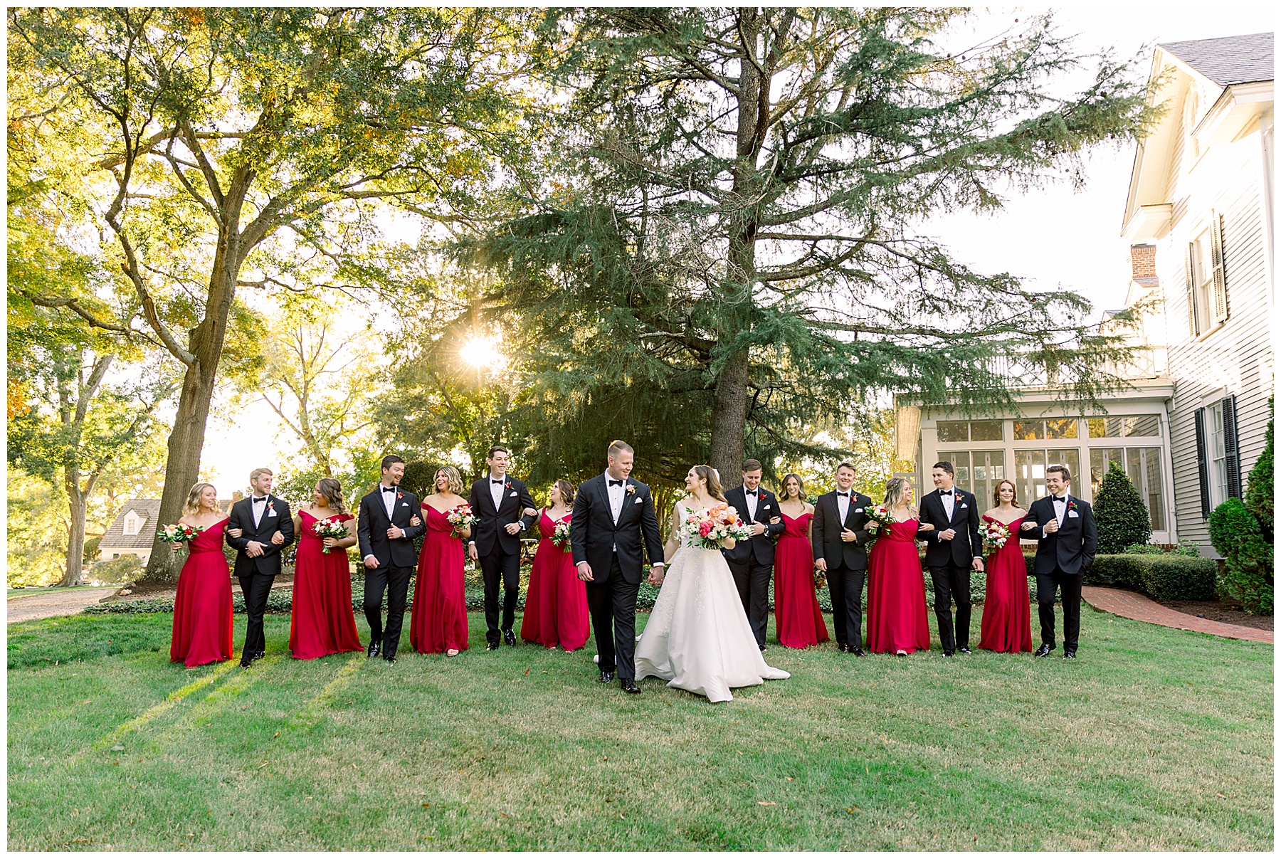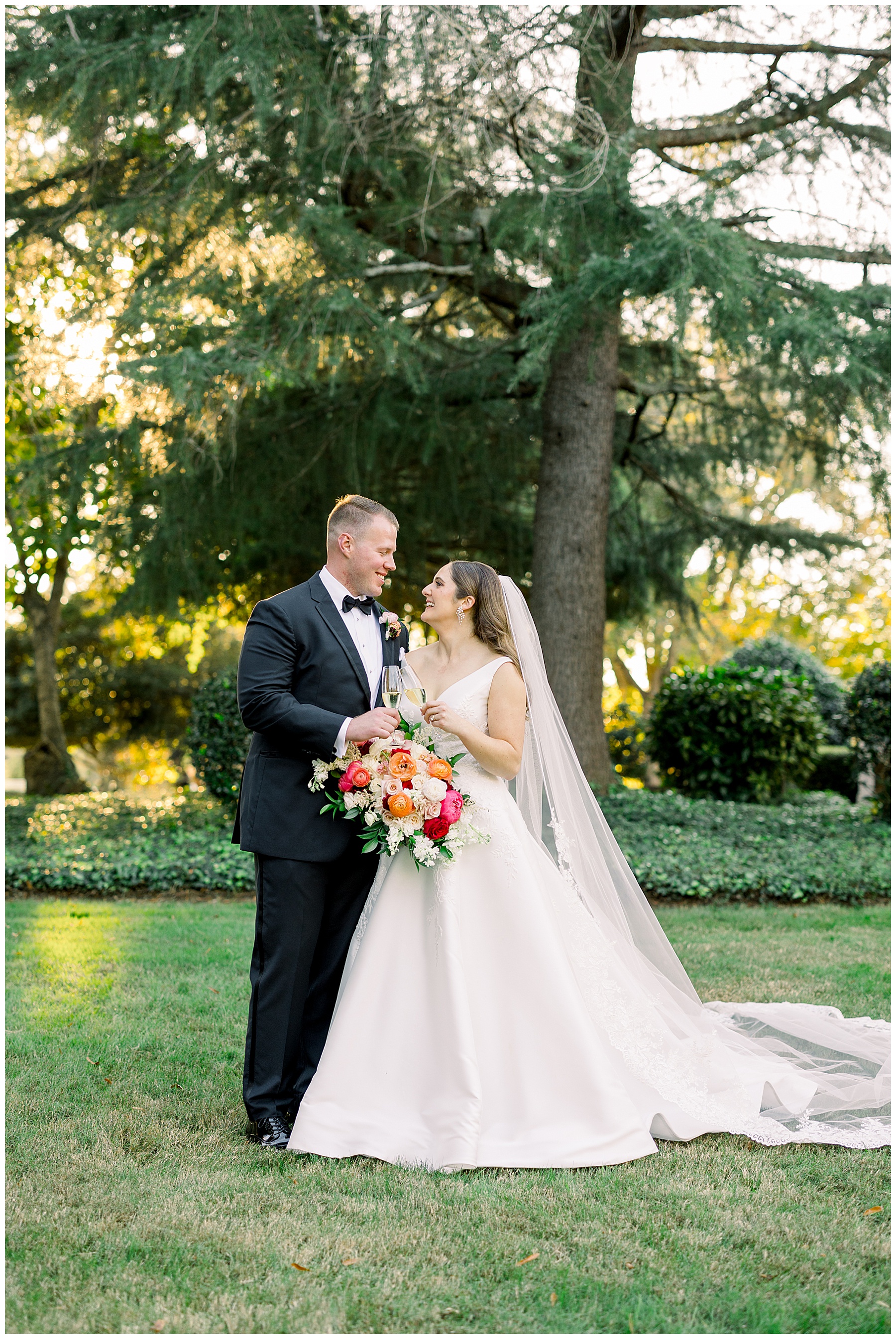 The ceremony took place on the front of the Manor house, and Expressions of Love Florist did an incredible job (as always) with creating beautiful floral pieces – with such texture and colors! The bright colors were such a nice contrast between the black/white of the Manor House. The ceremony was beautiful and I love that Ryan & Kerri chose to have communion together as their first act as husband and wife! It was really meaningful. After the ceremony & all the portraits – Kerri & Ryan dug up their bourbon and then entered their reception!