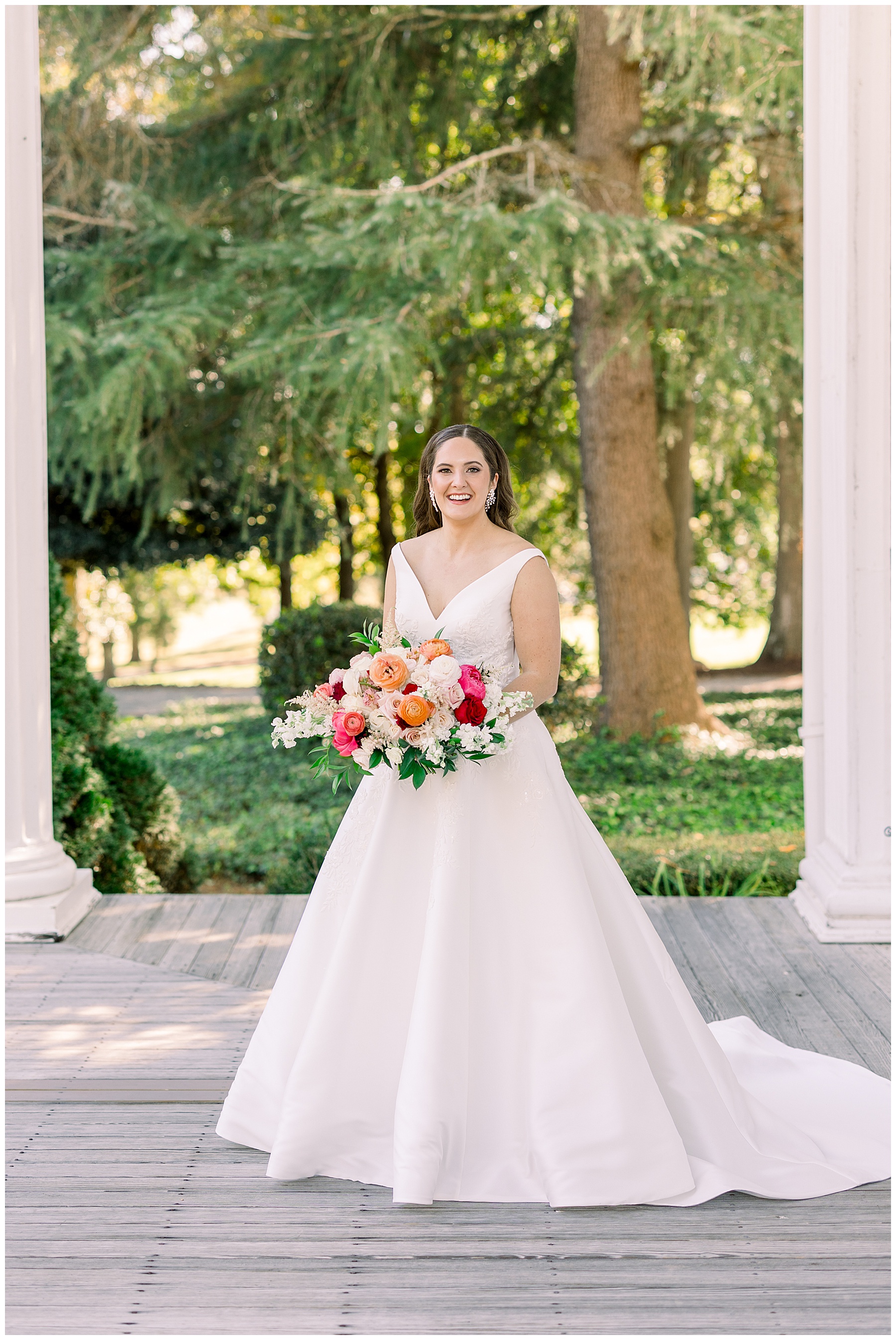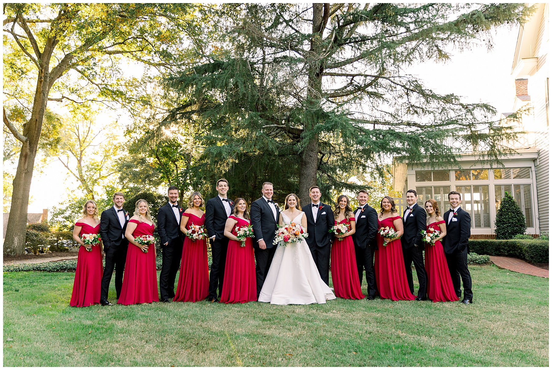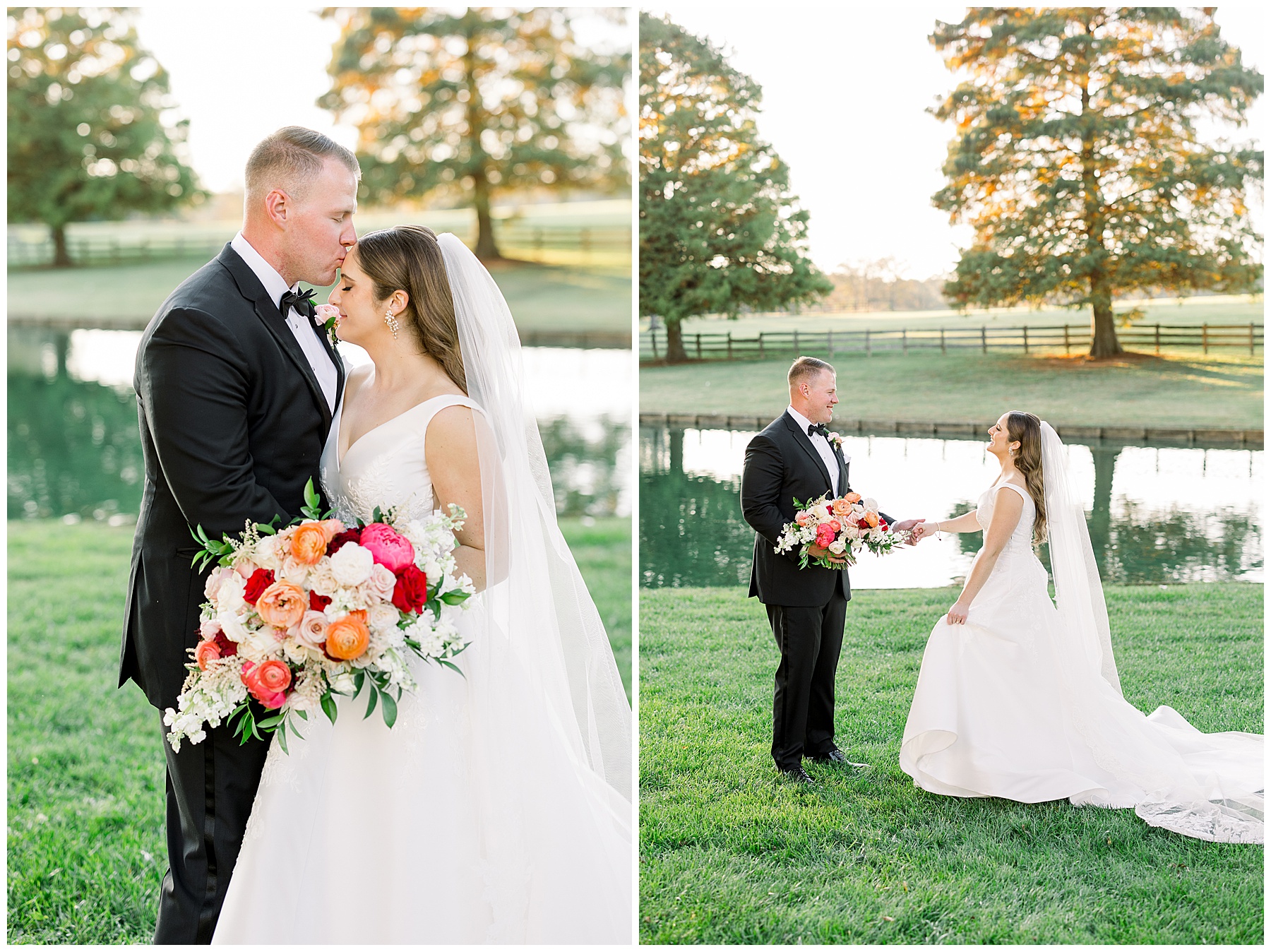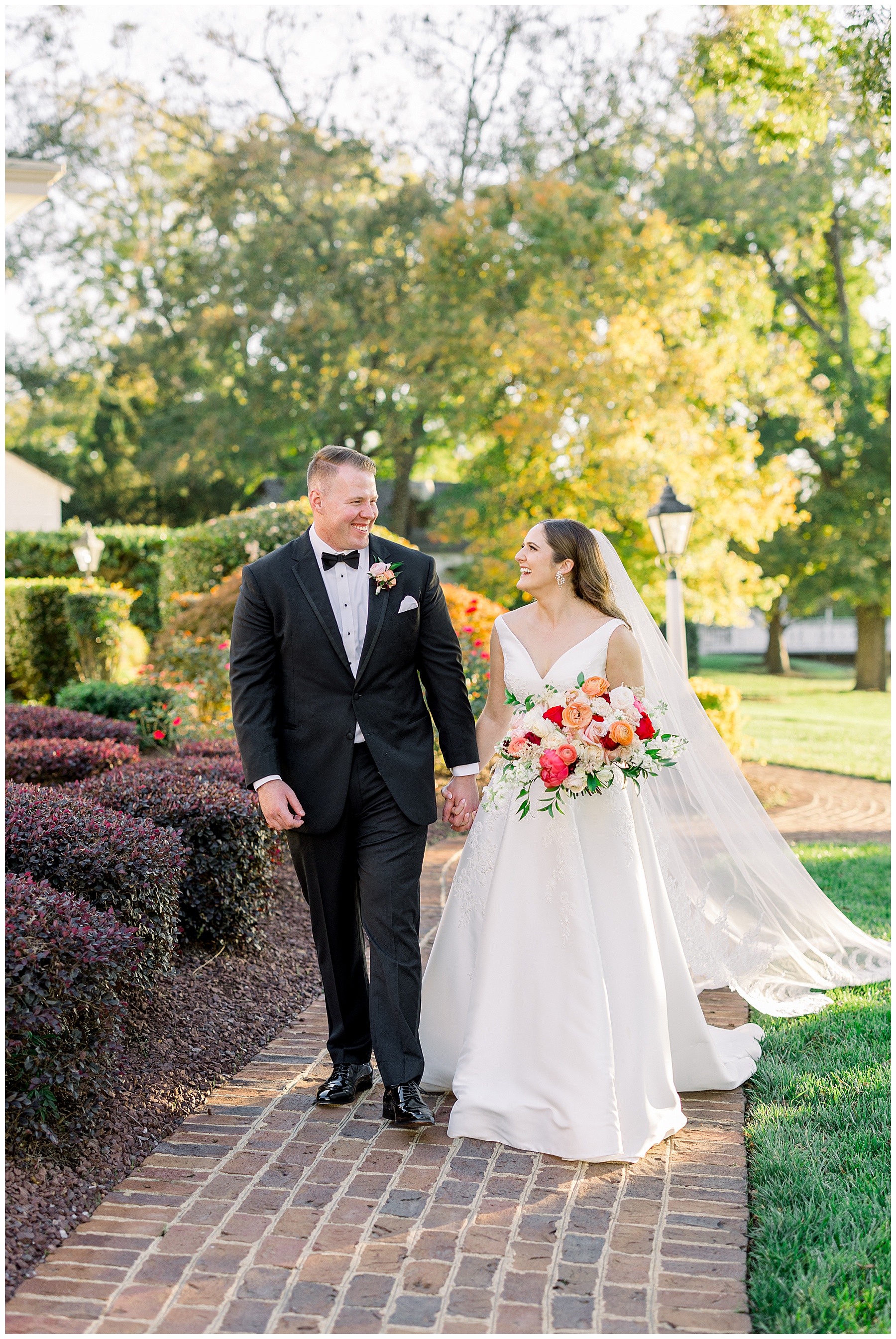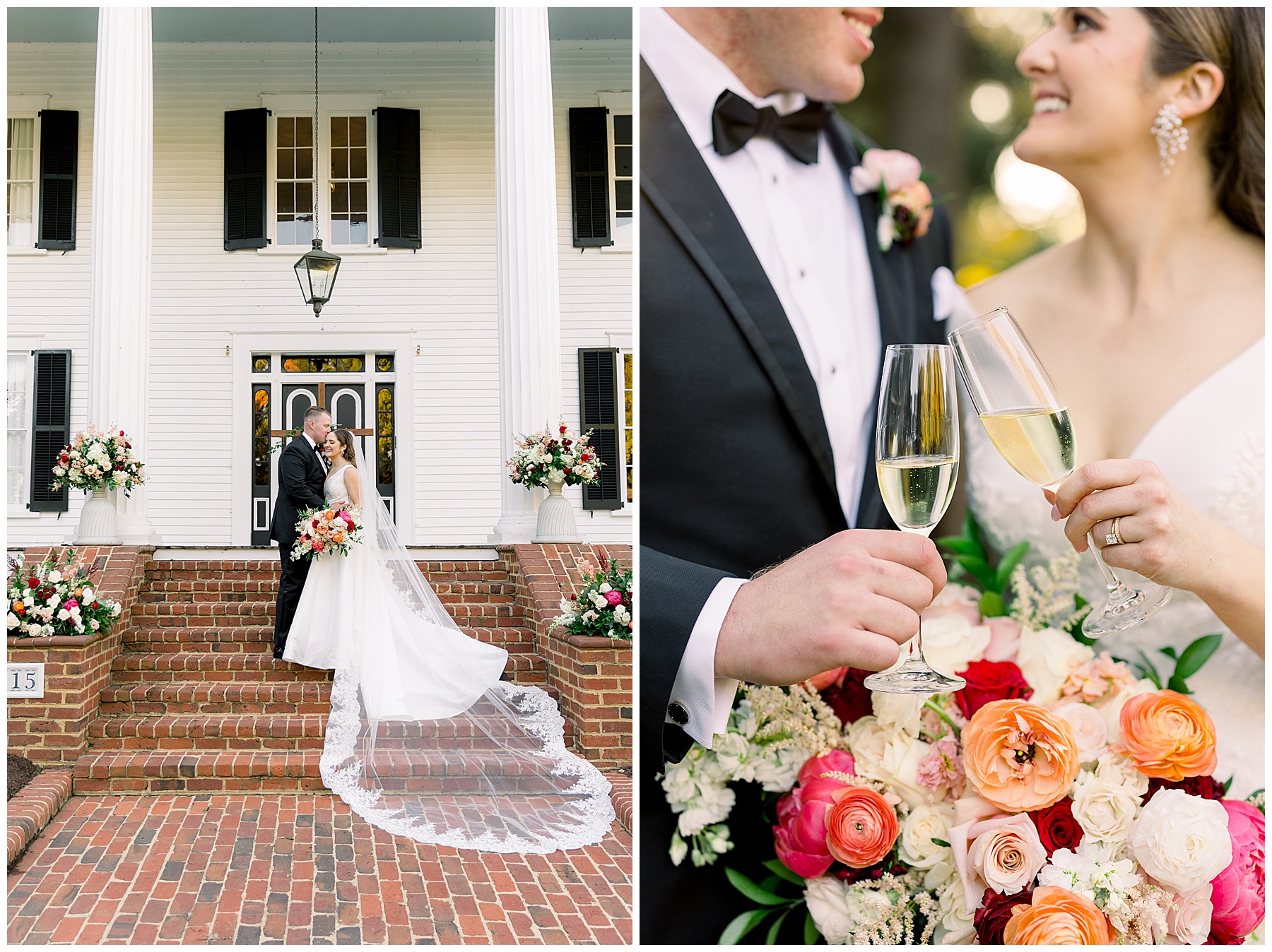 The ceremony took place on the front of the Manor house, and Expressions of Love Florist did an incredible job (as always) with creating beautiful floral pieces – with such texture and colors! The bright colors were such a nice contrast between the black/white of the Manor House. The ceremony was beautiful and I love that Ryan & Kerri chose to have communion together as their first act as husband and wife! It was really meaningful. After the ceremony & all the portraits – Kerri & Ryan dug up their bourbon and then entered their reception!