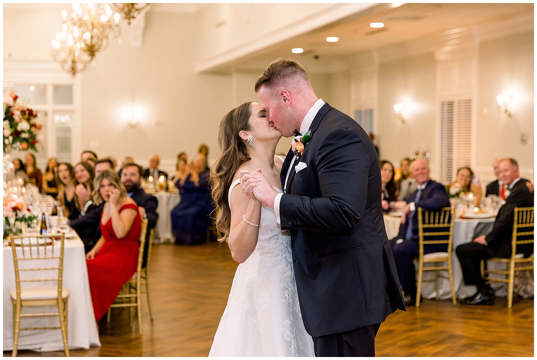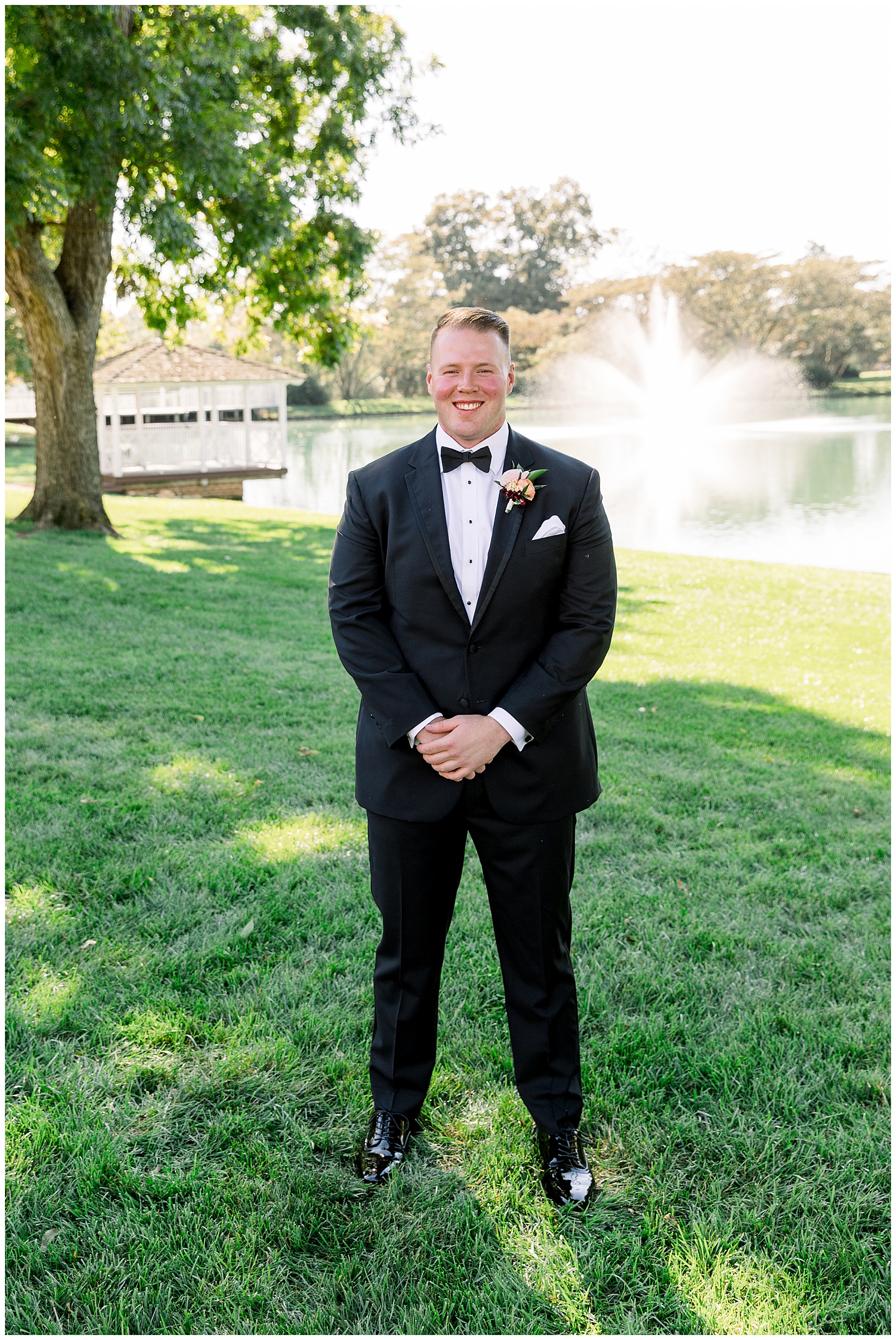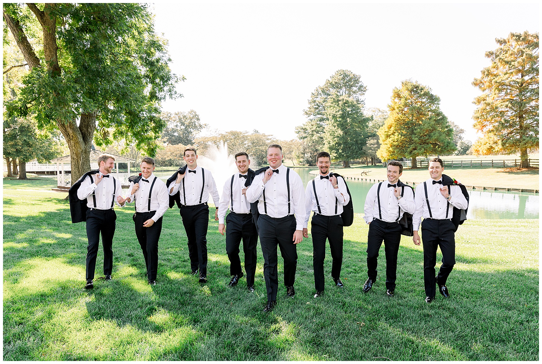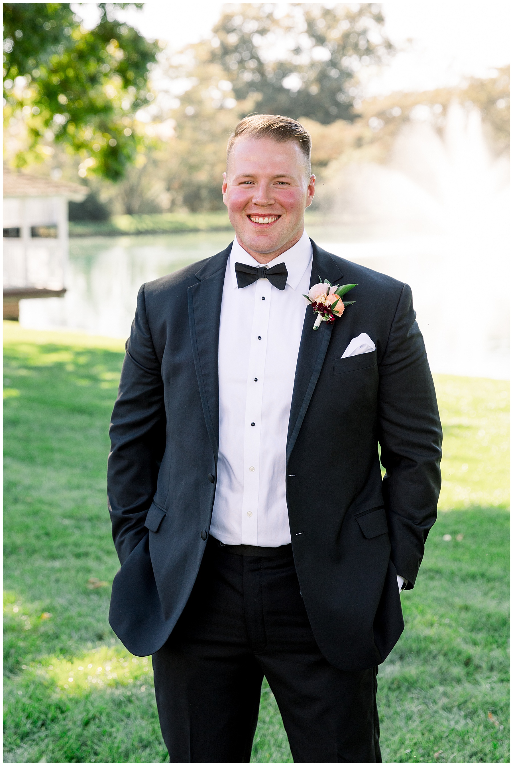 The ceremony took place on the front of the Manor house, and Expressions of Love Florist did an incredible job (as always) with creating beautiful floral pieces – with such texture and colors! The bright colors were such a nice contrast between the black/white of the Manor House. The ceremony was beautiful and I love that Ryan & Kerri chose to have communion together as their first act as husband and wife! It was really meaningful. After the ceremony & all the portraits – Kerri & Ryan dug up their bourbon and then entered their reception!