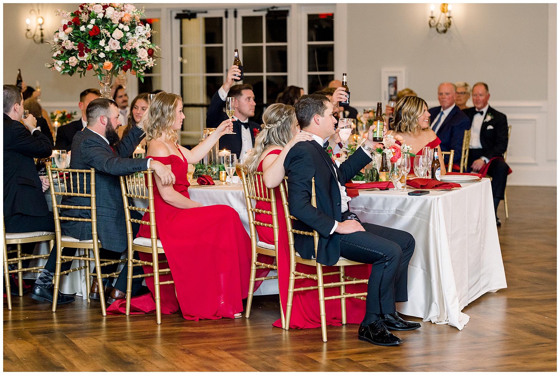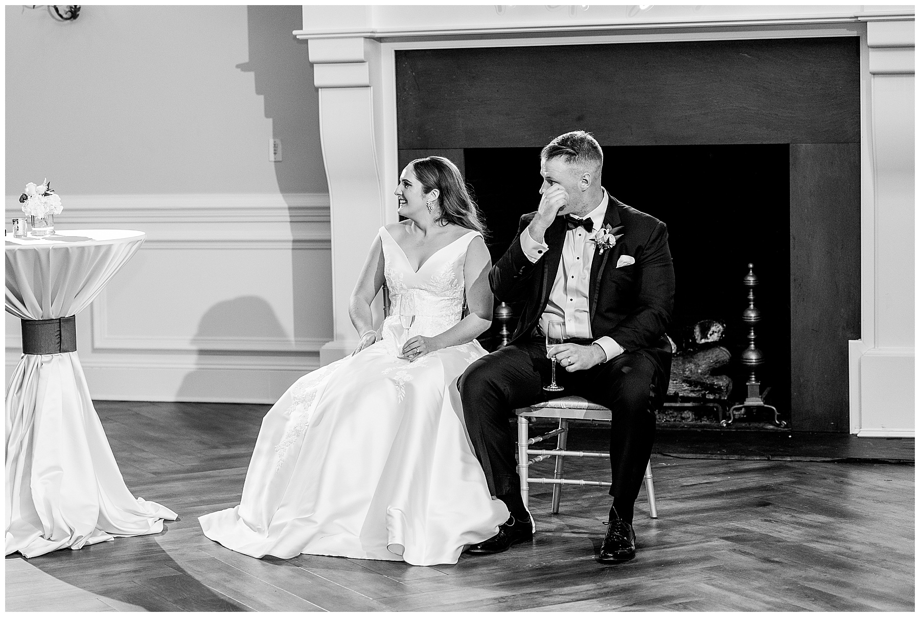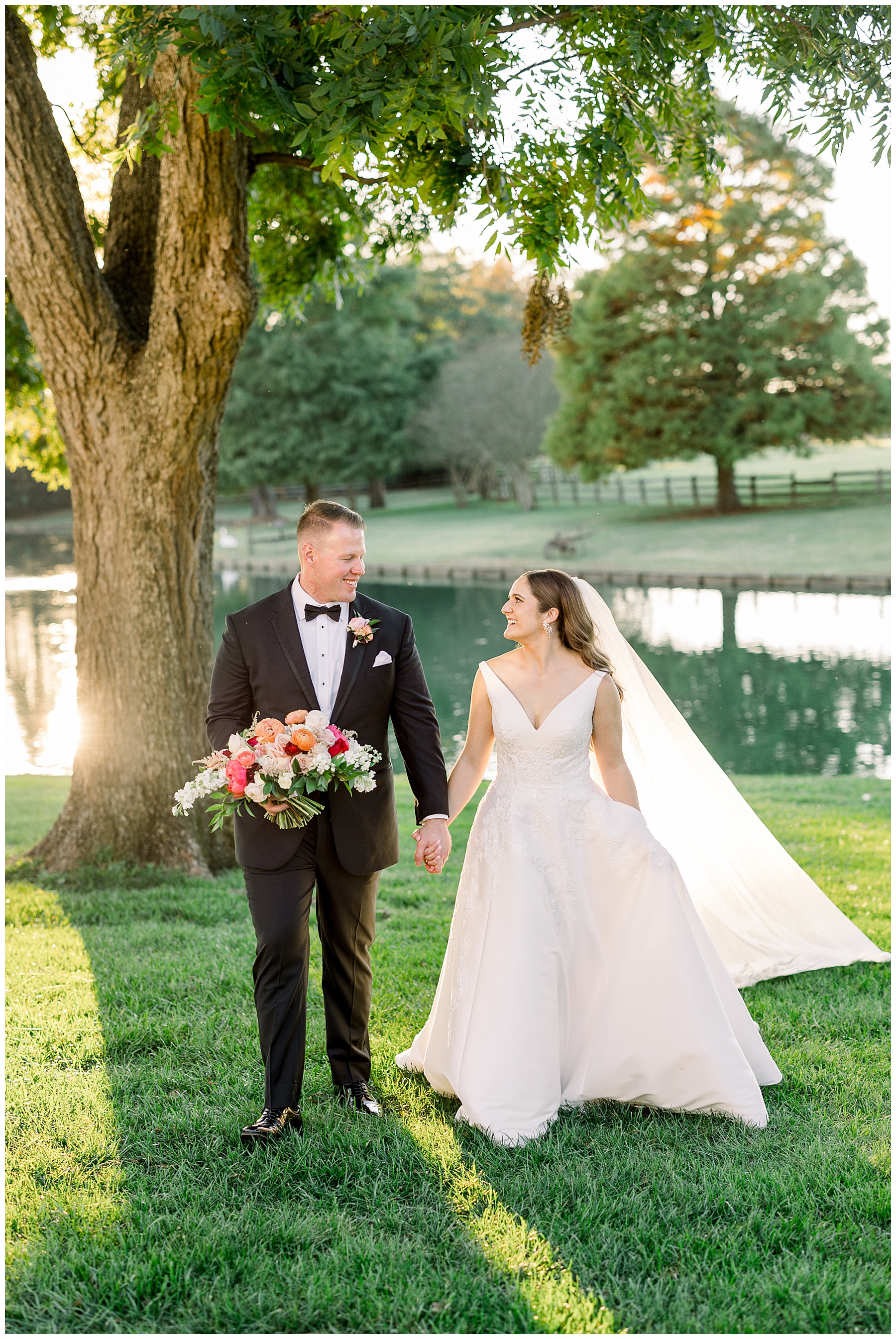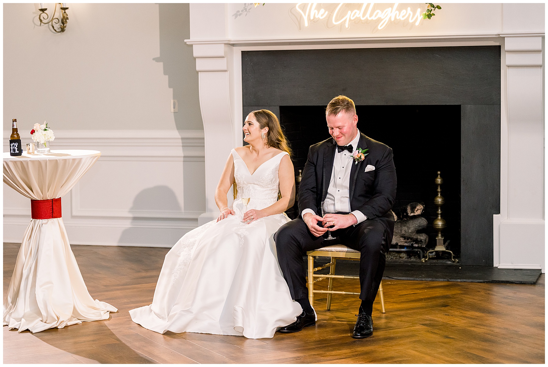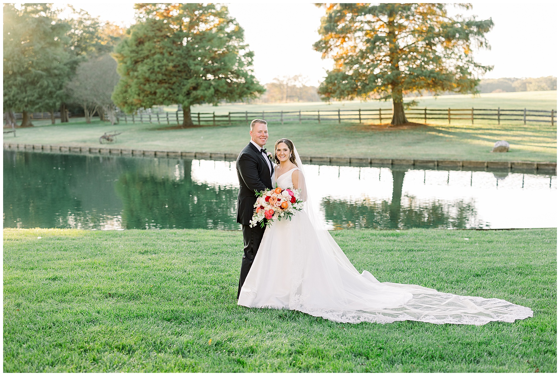 The ceremony took place on the front of the Manor house, and Expressions of Love Florist did an incredible job (as always) with creating beautiful floral pieces – with such texture and colors! The bright colors were such a nice contrast between the black/white of the Manor House. The ceremony was beautiful and I love that Ryan & Kerri chose to have communion together as their first act as husband and wife! It was really meaningful. After the ceremony & all the portraits – Kerri & Ryan dug up their bourbon and then entered their reception!