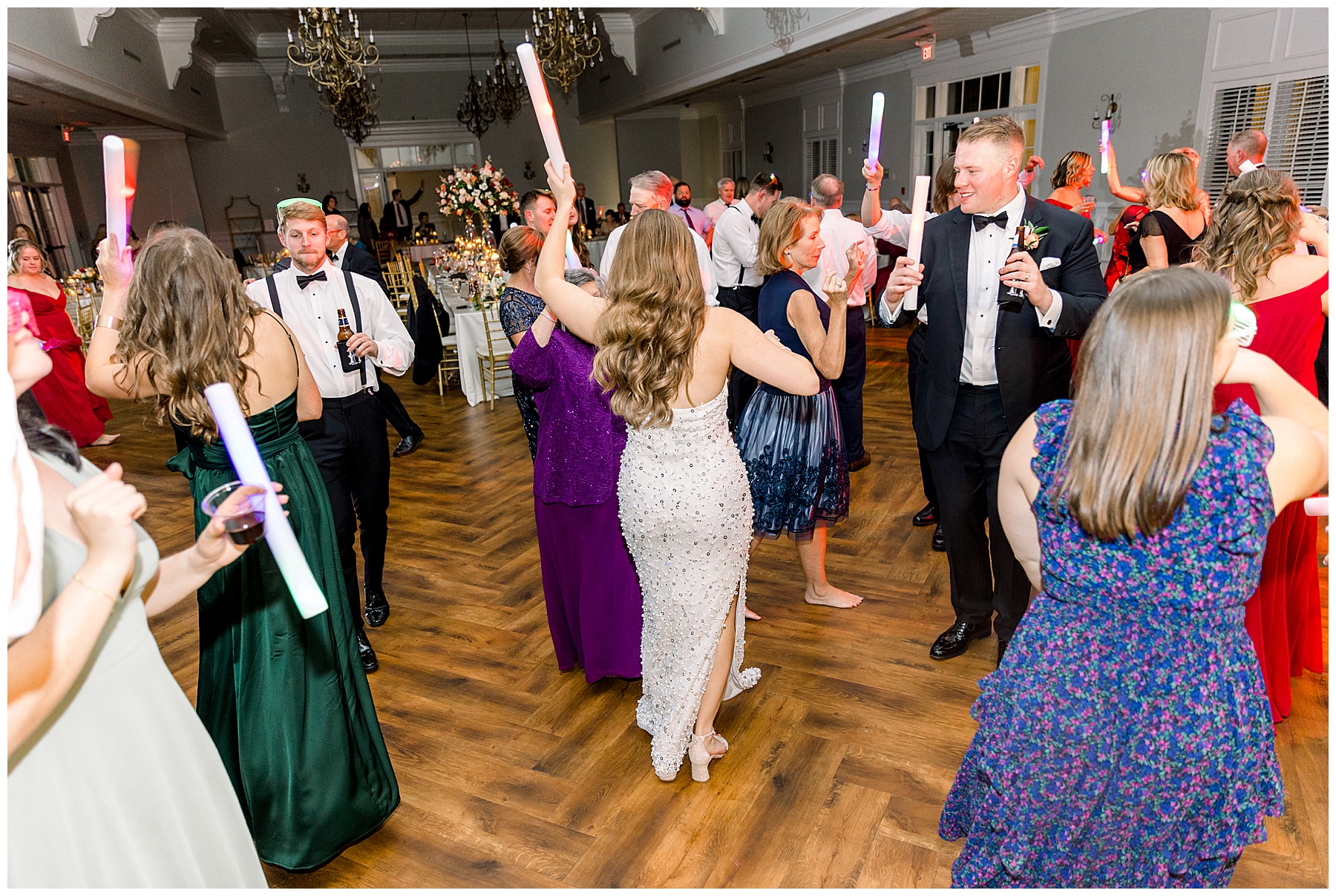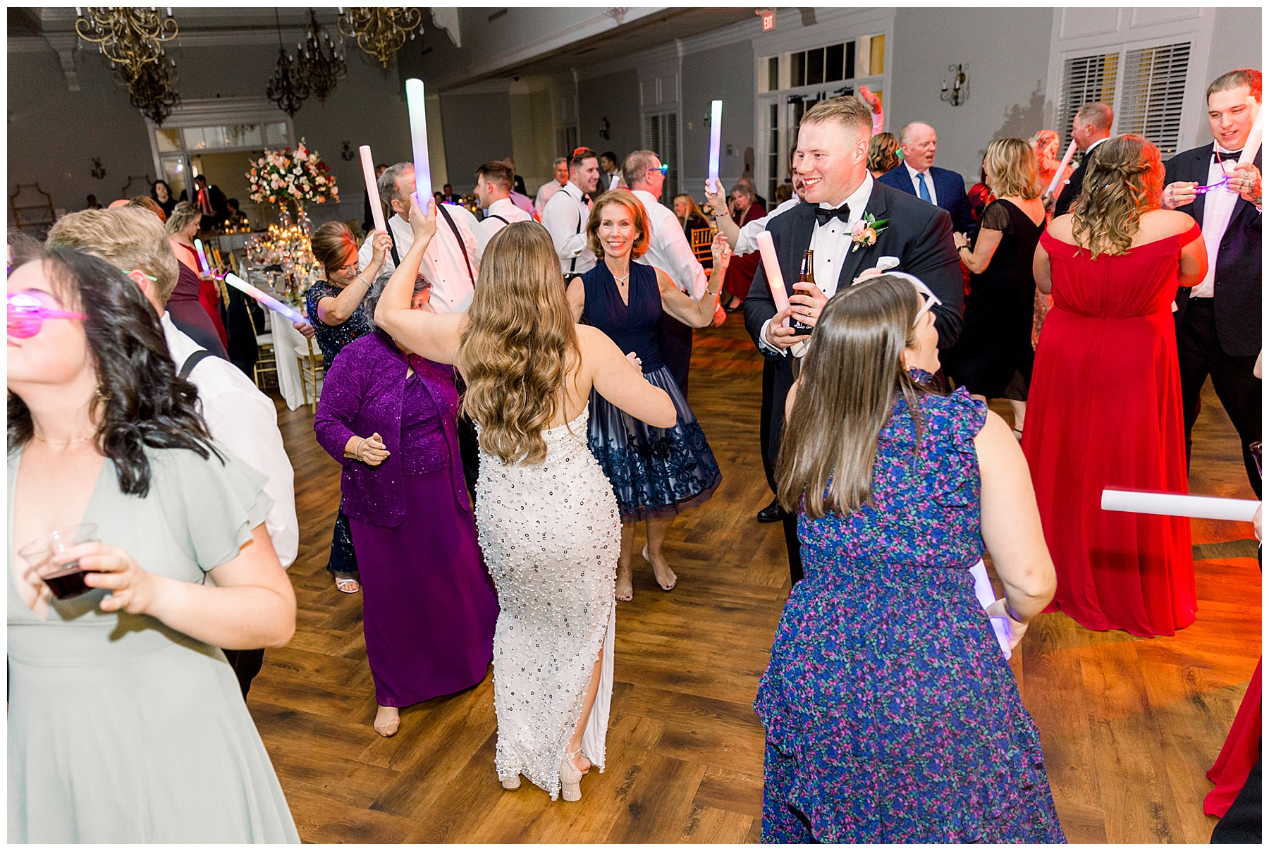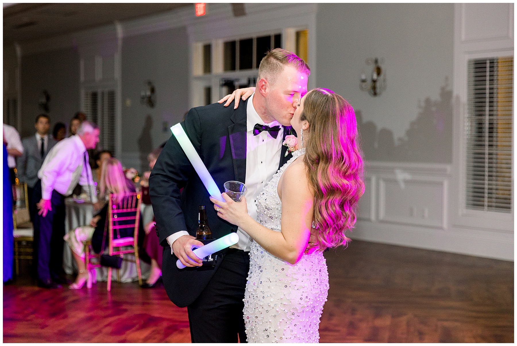 Rocky Top Catering served the guests delicious chicken, Prime Rib, mashed potatoes, rolls, salad, and green beans! Around the Table designed a STUNNING cake with 3 different flavors! The guests were also treated to an open bar, and LOTS of dancing! Dow Oak Events kept the dance floor PACKED, and I had the BEST evening watching how much FUN Kerri and Ryan were having together dancing! I just kept smiling and asking Phillip, “Aren’t they the CUTEST?!” – I think Kerri had the MOST FUN at her wedding, and it was awesome. They passed glow sticks and lighted glasses to their guests, and everyone just enjoyed themselves so much!!!