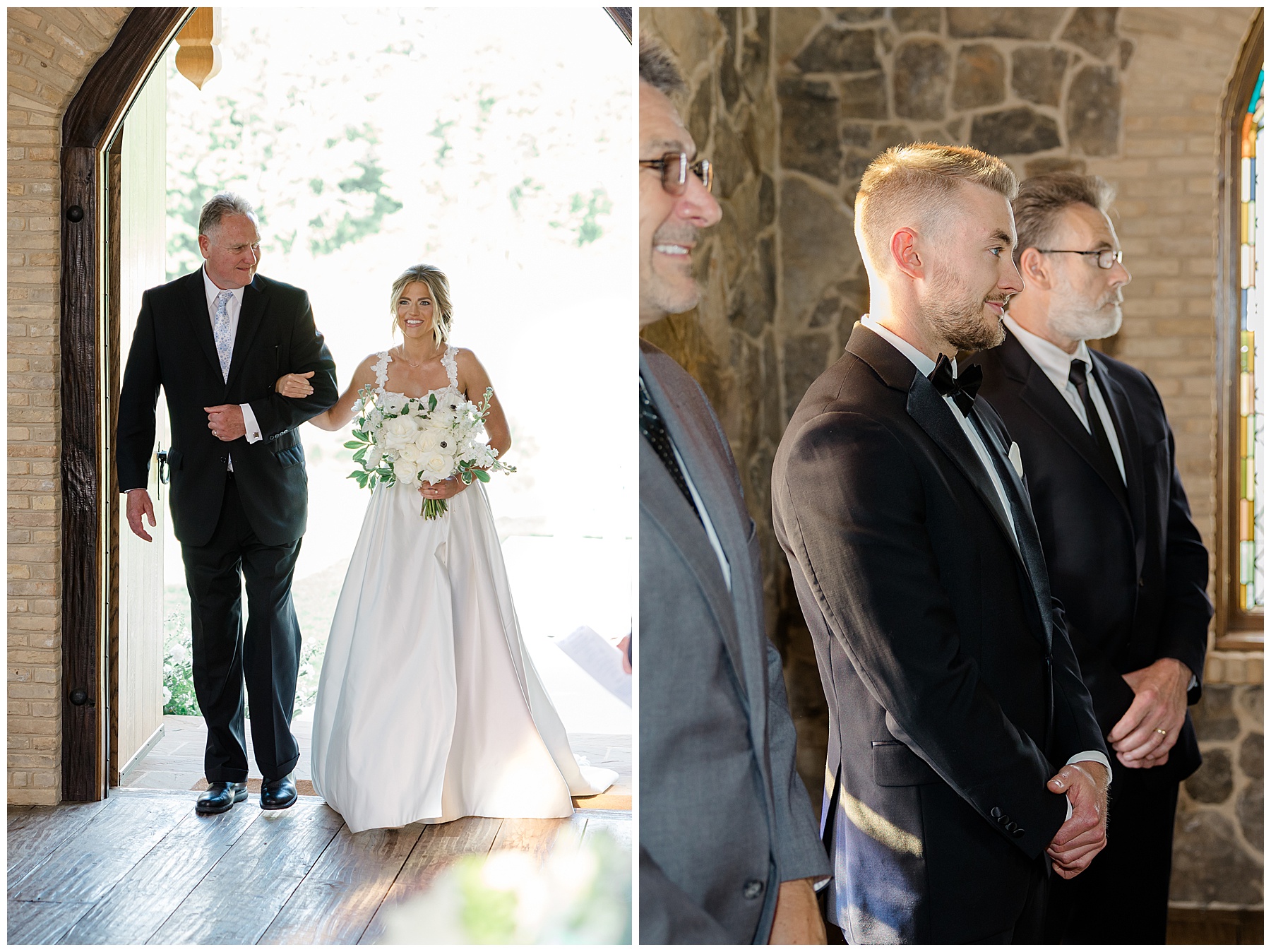 One of the reasons Kristy loved this venue was the idea of THAT MOMENT of those heavy wooden chapel double doors opening as she entered. It was such a beautiful moment seeing Kristy BEAMING at everyone, and Jordan as she walked in. The ceremony was officiated by Pastor Brian Tippett, and he did an incredible job. Kristy had a violinist and cellist for the ceremony music and it was soooooo beautiful.