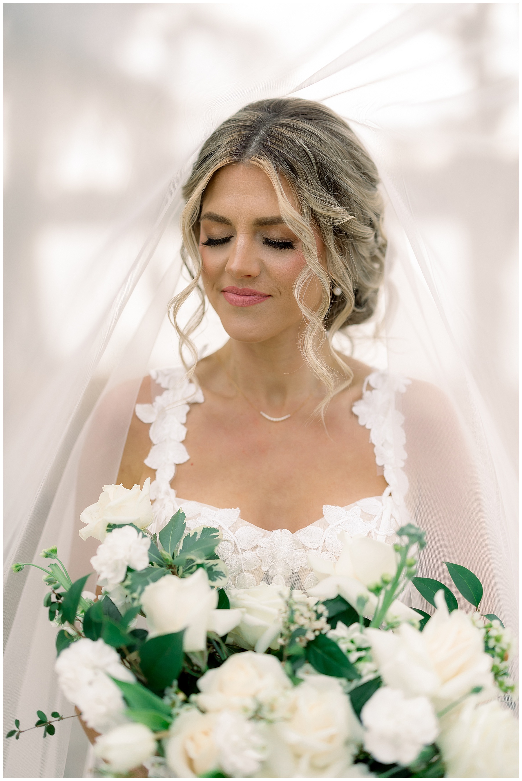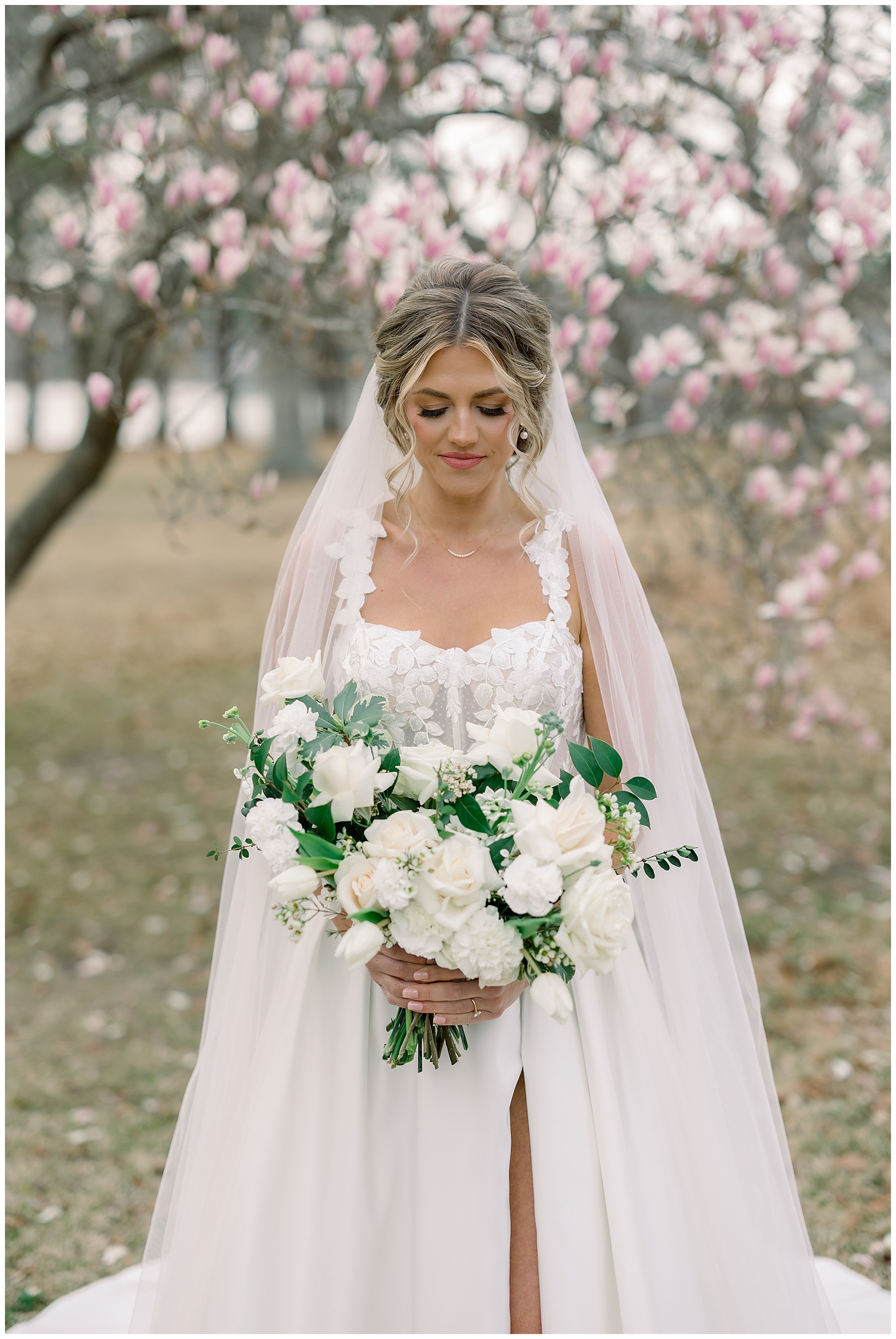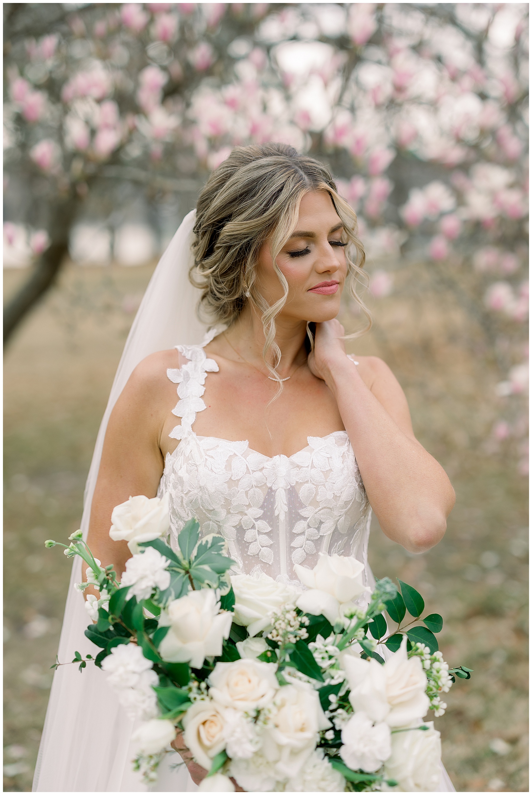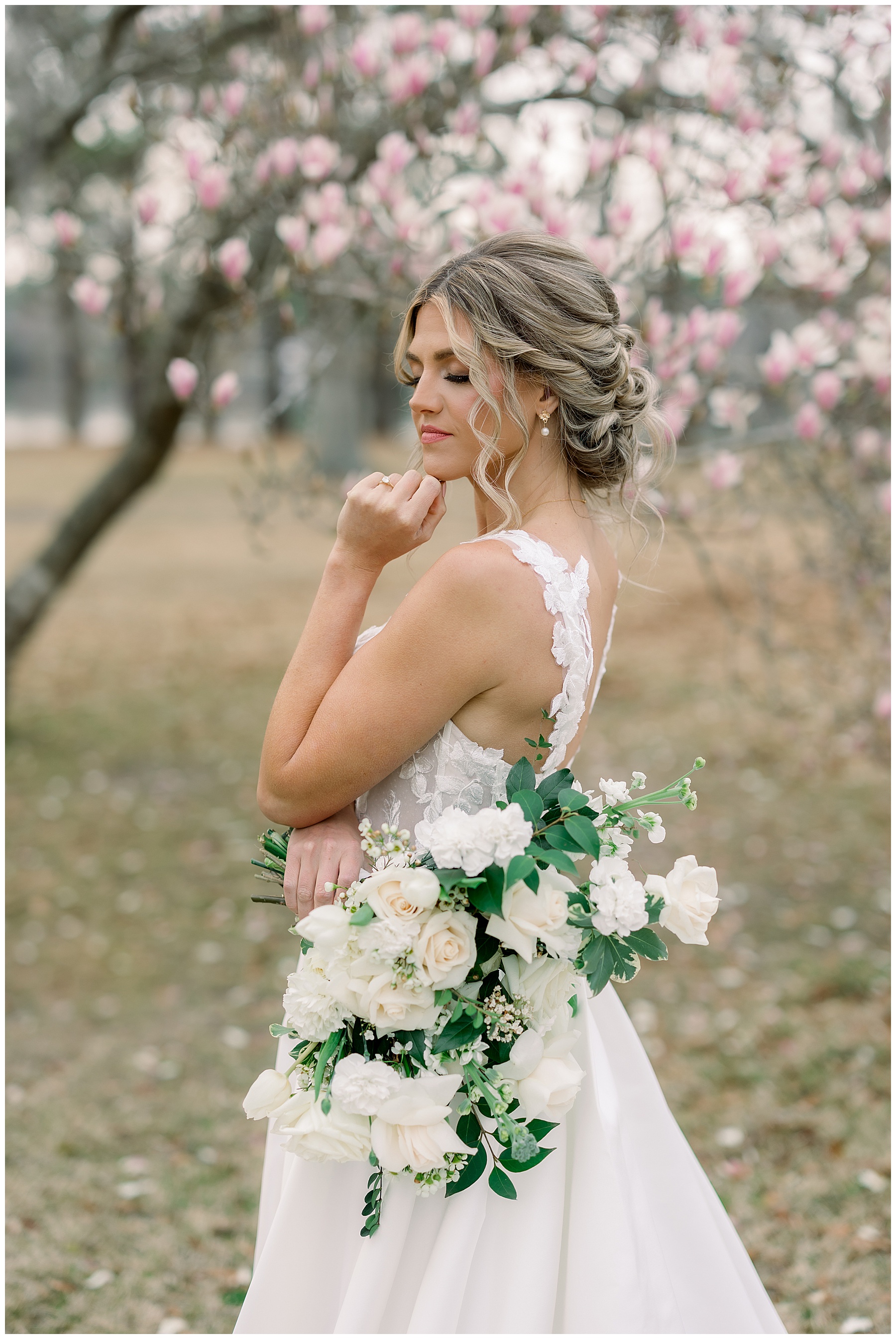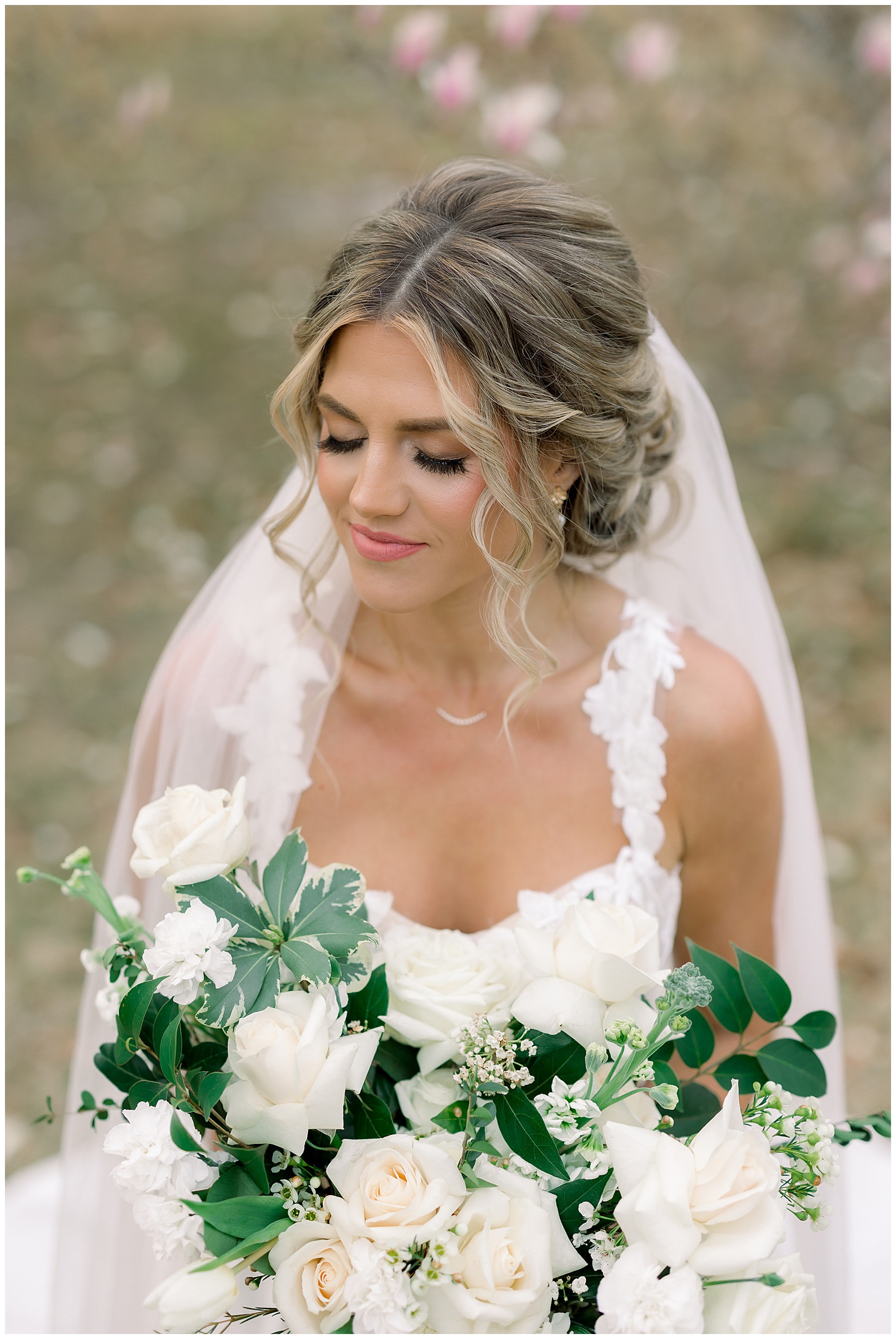 Mom and I had the fun experience of making Kristy’s bouquet, with flowers & greenery sourced from literally 5 places haha – and we tried to showcase a whimsical vibe with fun textures, lots of white, and a more “heart shaped” design shape! It was a whole experience – so we have a TON of respect for all our florist friends who make it look effortless! (No amount of YouTube videos will prepare you for the hand + arm aches of building a bouquet for an hour, haha)