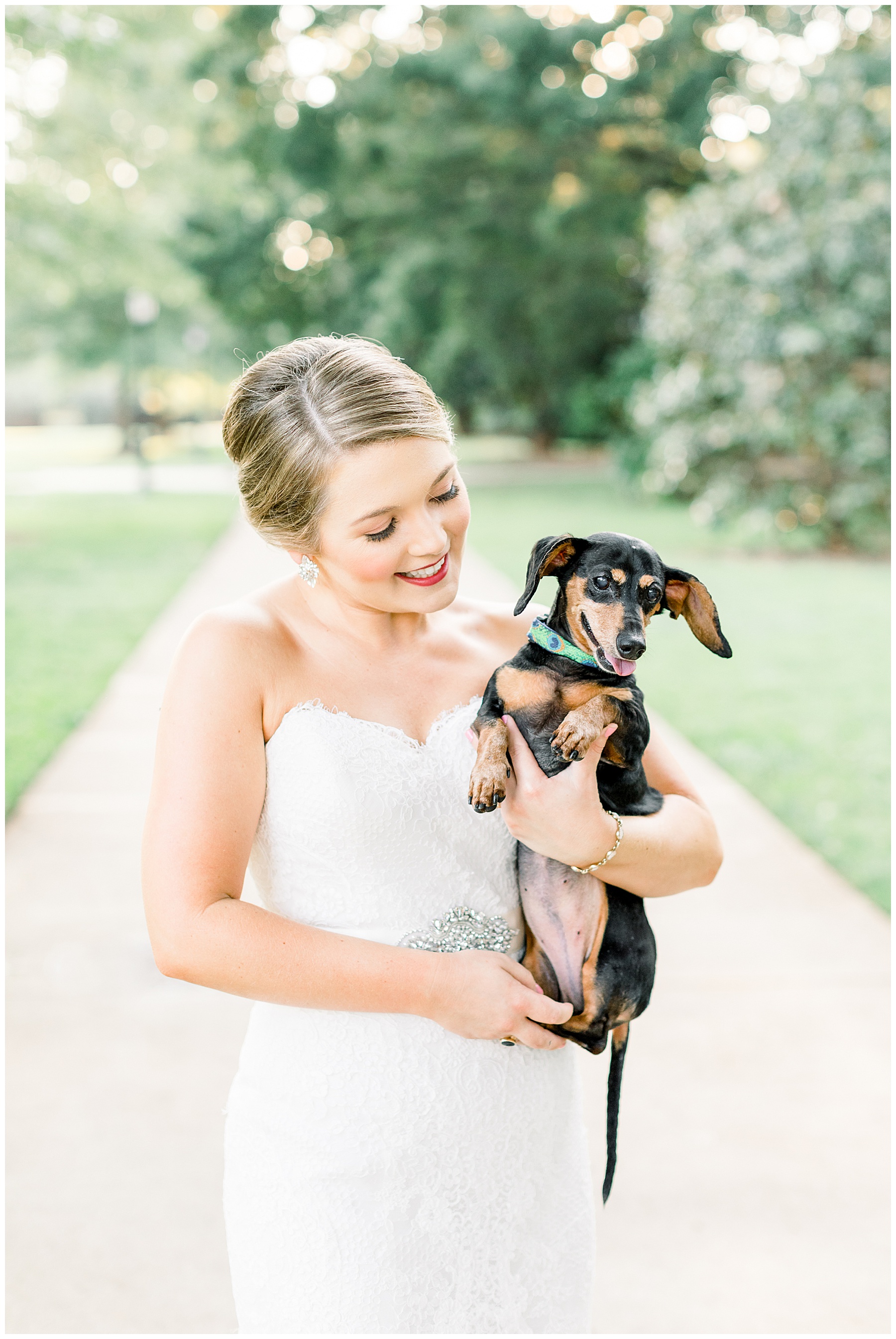 It was a hot summer day with NO breeze for Laura Beth’s Bridal Session, but she handled it like a champ! We walked all over MC’s campus, and I loved hearing stories about Laura Beth’s time in college. It was so fun having her entourage along – her sister Dorothy, her mom Phyllis, and their dogs Luna and Cindy! Everything is better with dogs!