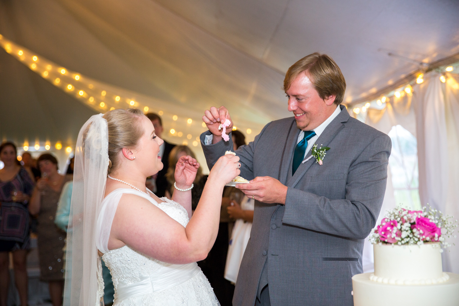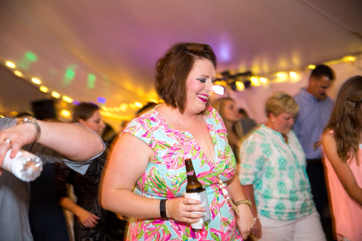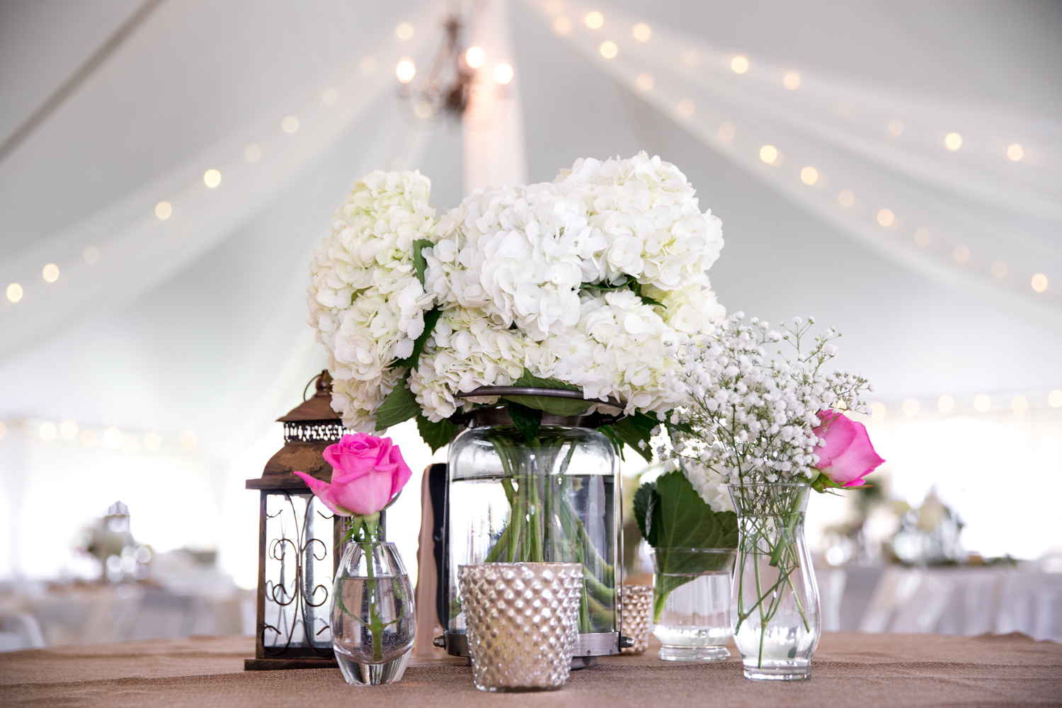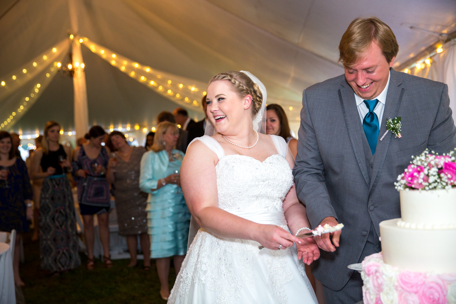 After the ceremony, we headed to the Bluegrass Barn for the reception. (Sound familiar? That’s where Phillip and I got married!) I was absolutely BLOWN AWAY at how Leigh and her planner, Robin Williams had transformed a tent and the downstairs of the barn into a gorgeous, softly colored venue. There were fresh flowers everywhere, and tons of décor.