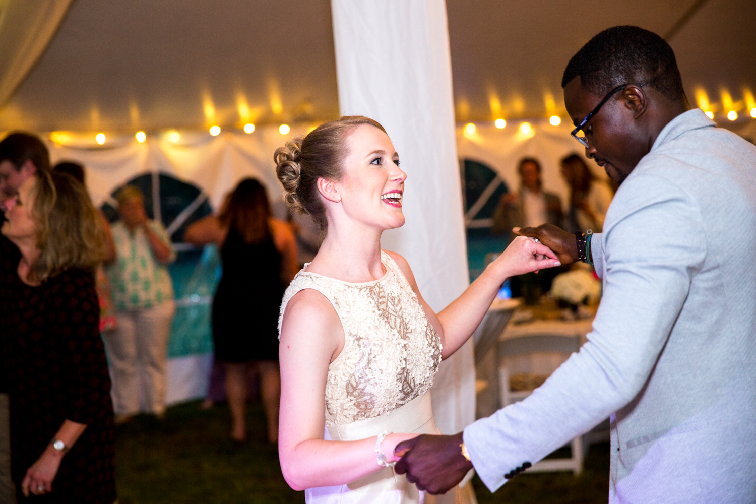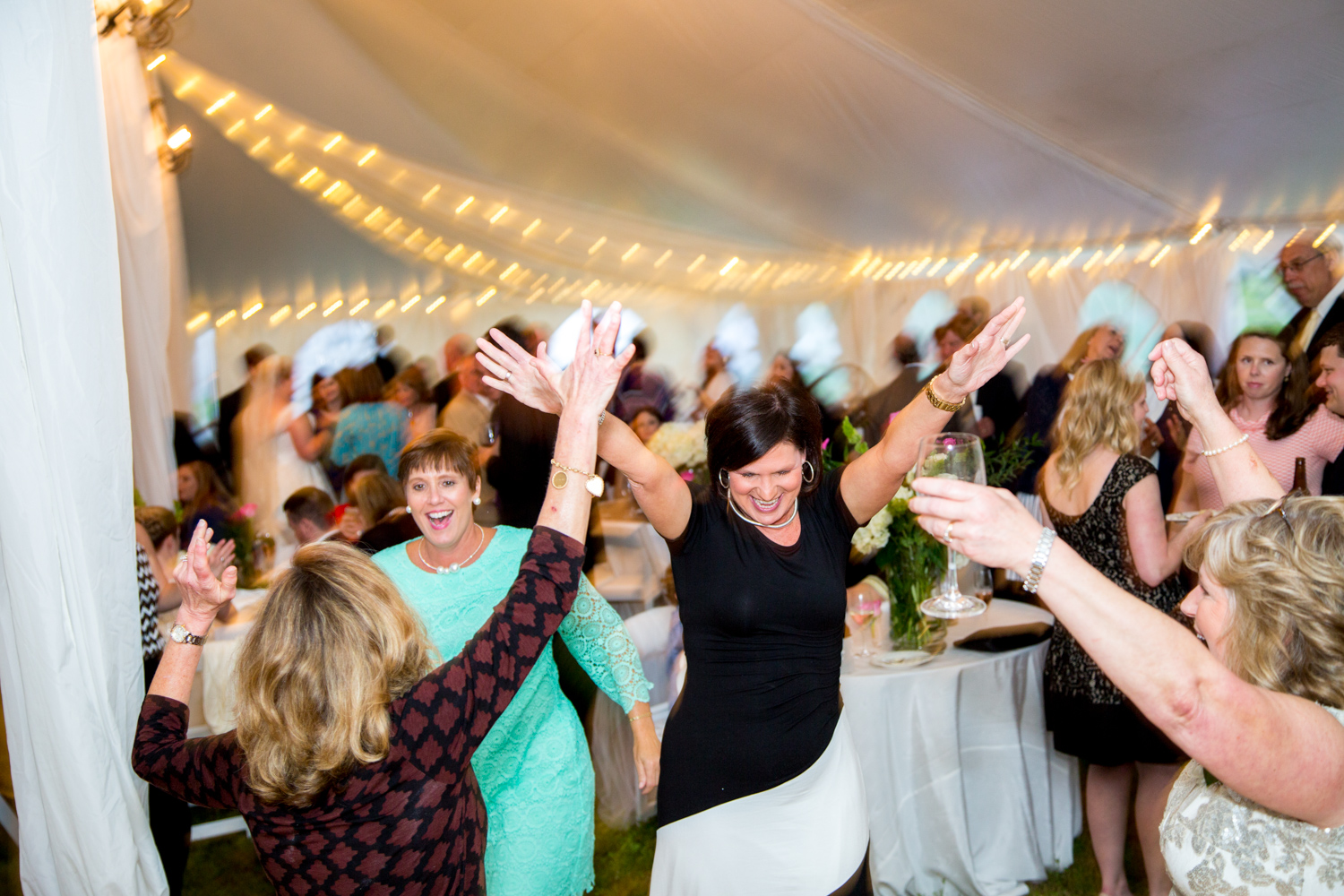 Leigh & Ben’s guests were spoiled with passed heavy hors d’oeuvres, an open bar, and hot food dinner stations around the tent. Dancing commenced for the entire night, and others headed to the photo booth – what a great crowd!