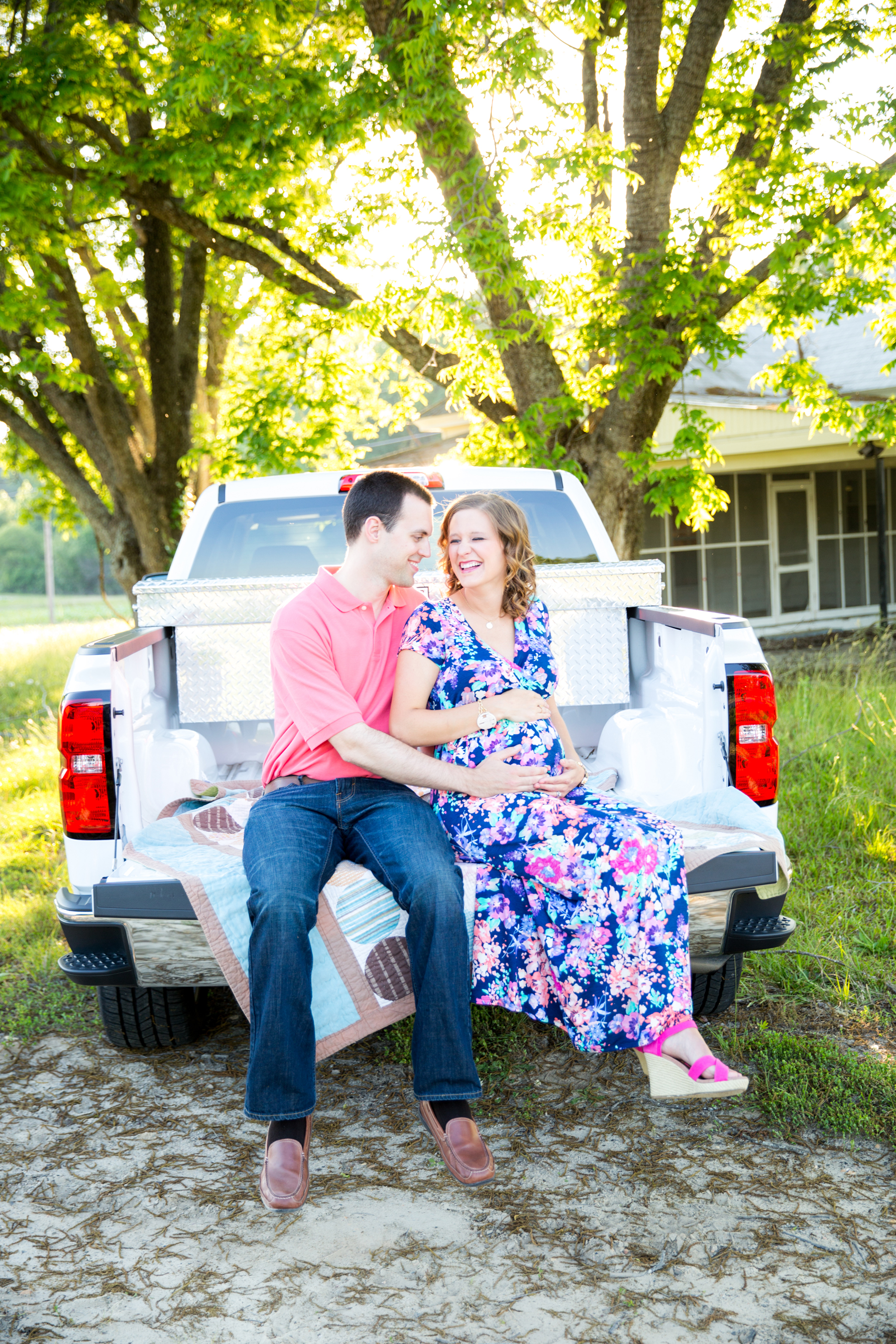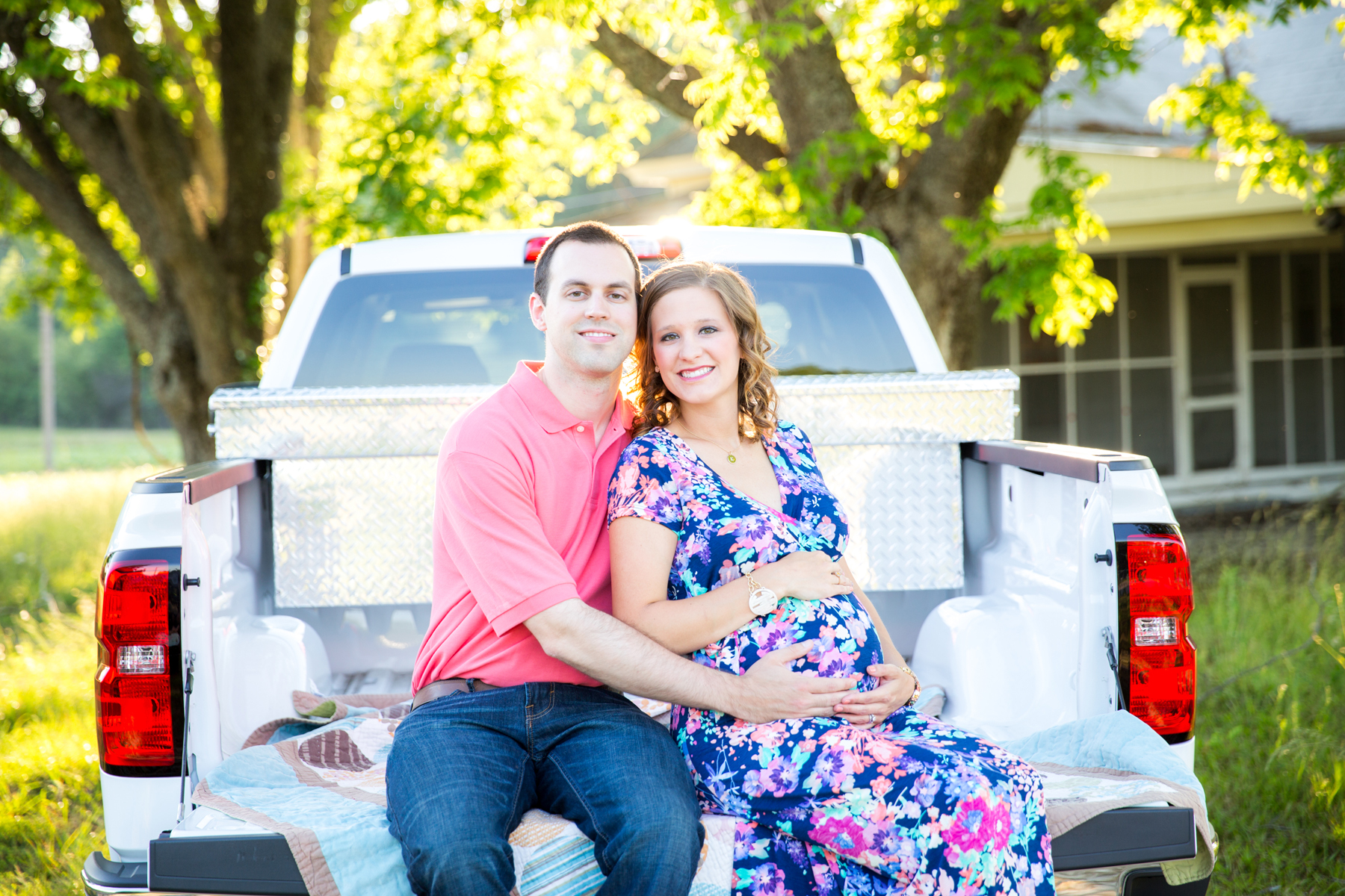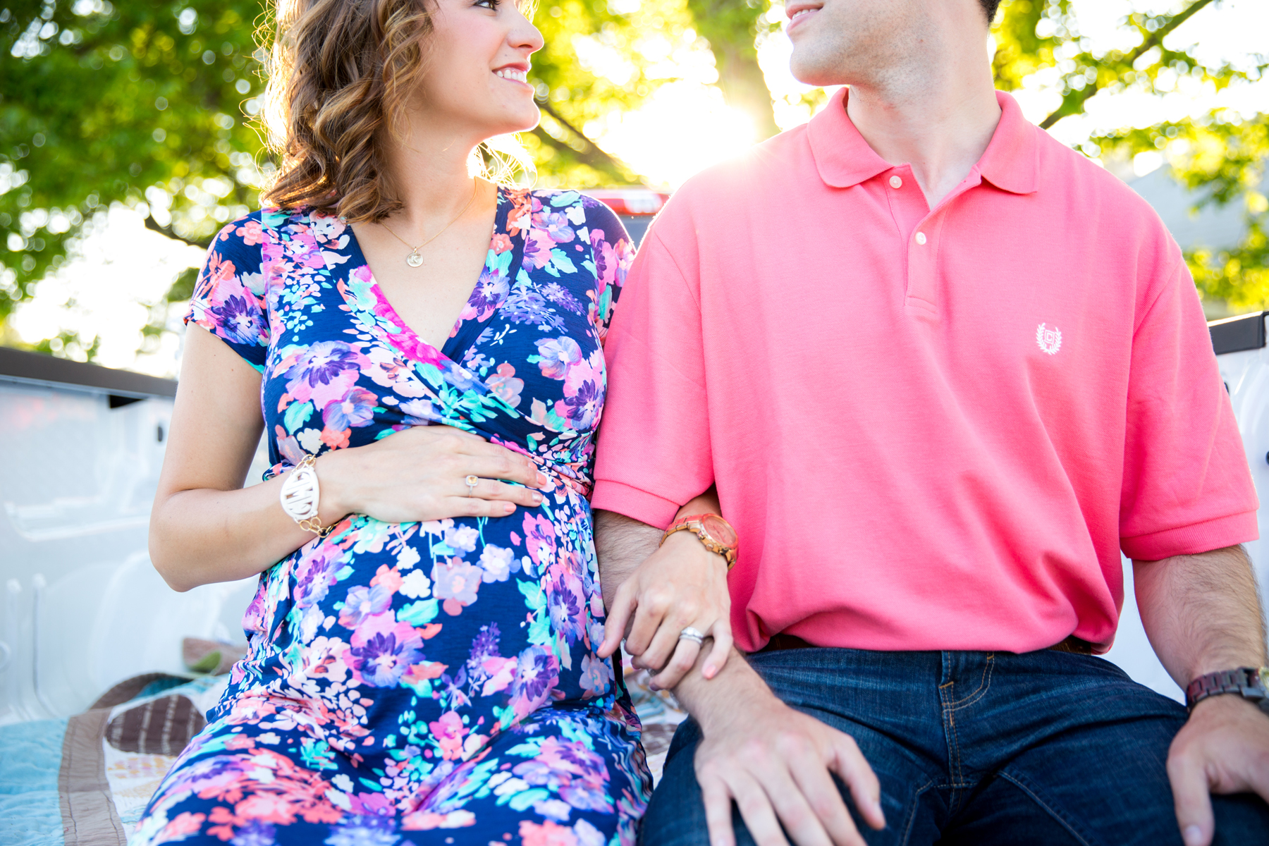 Drake can already sense (dogs have crazy ways) that change is in the air. He’s going to be a sweet big brother – and he posed in the cutest bandana made by Madison. We imitated their Engagement Photographs from a few years ago by shooting in the back of Andrew’s truck – and this time Drake was added! He always behaves so well and takes great photographs.