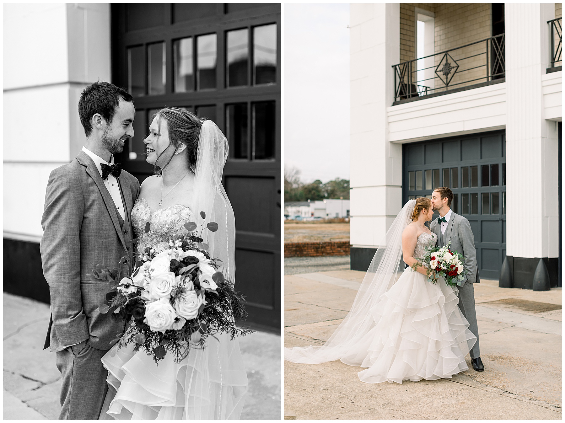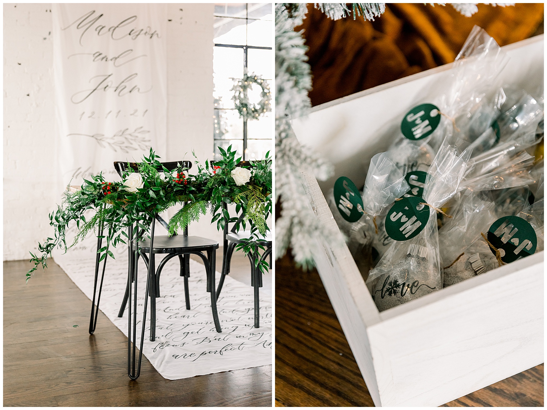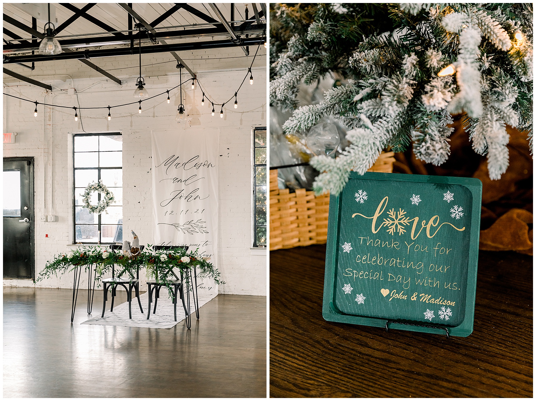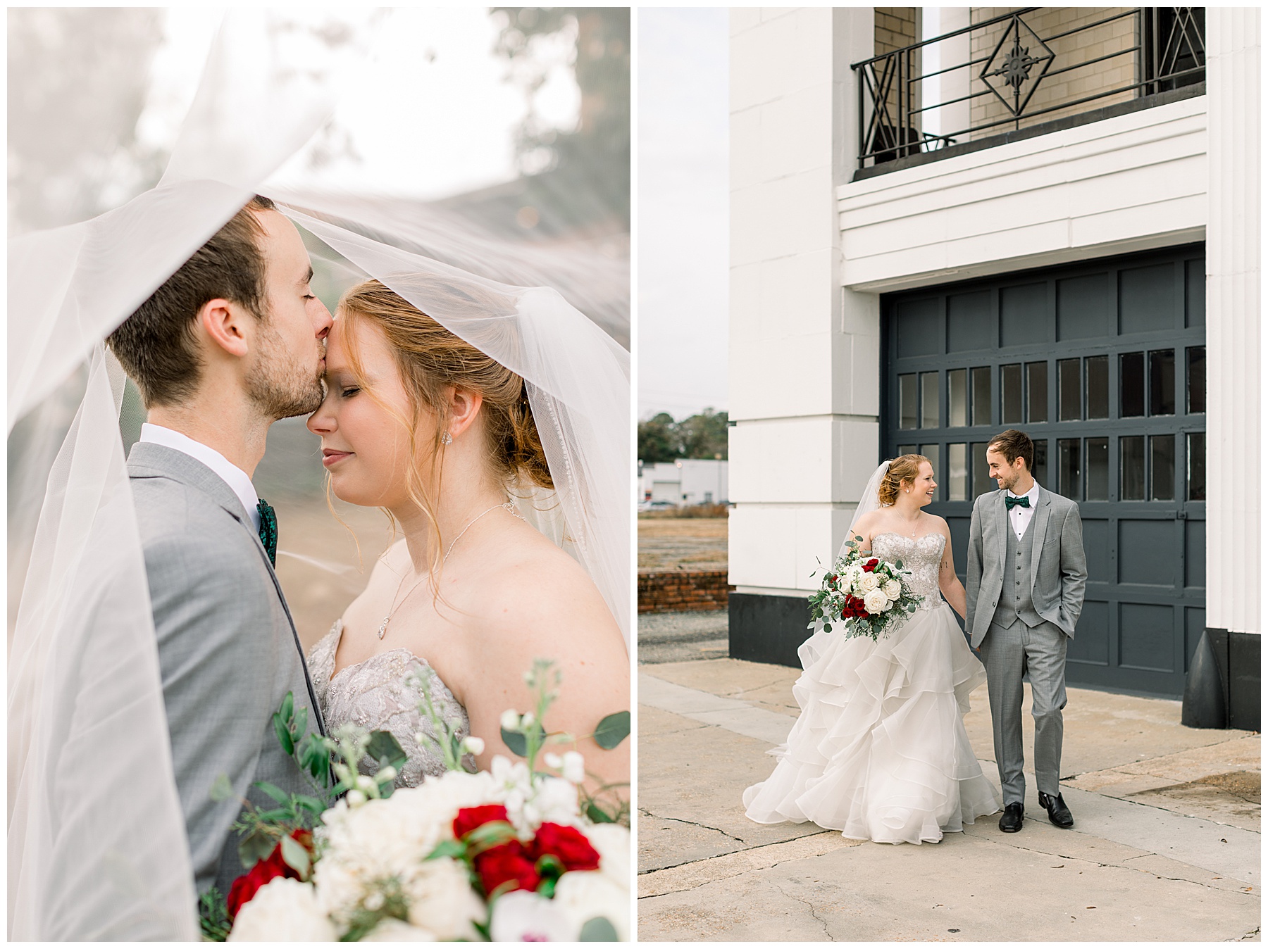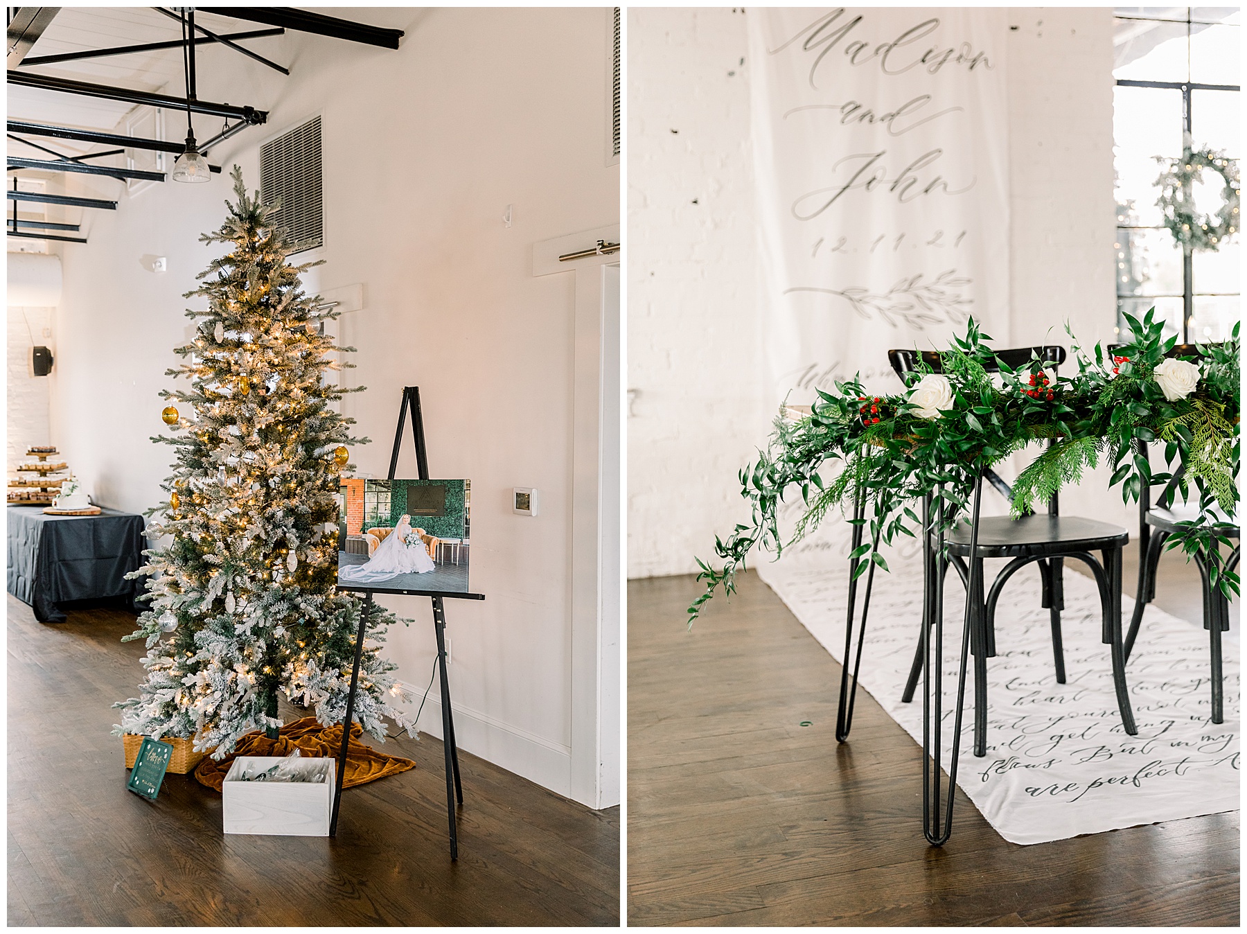 Madison & John’s wedding was also our LAST wedding of 2021 and FIRST wedding at The Firehouse! They planned for a Christmas/winter themed wedding, but randomly North Carolina weather decided to throw them a humid, 70º degree day! Thankfully it wasn’t TOO hot because the day was overcast and we had some gusts of wind to cool things off.