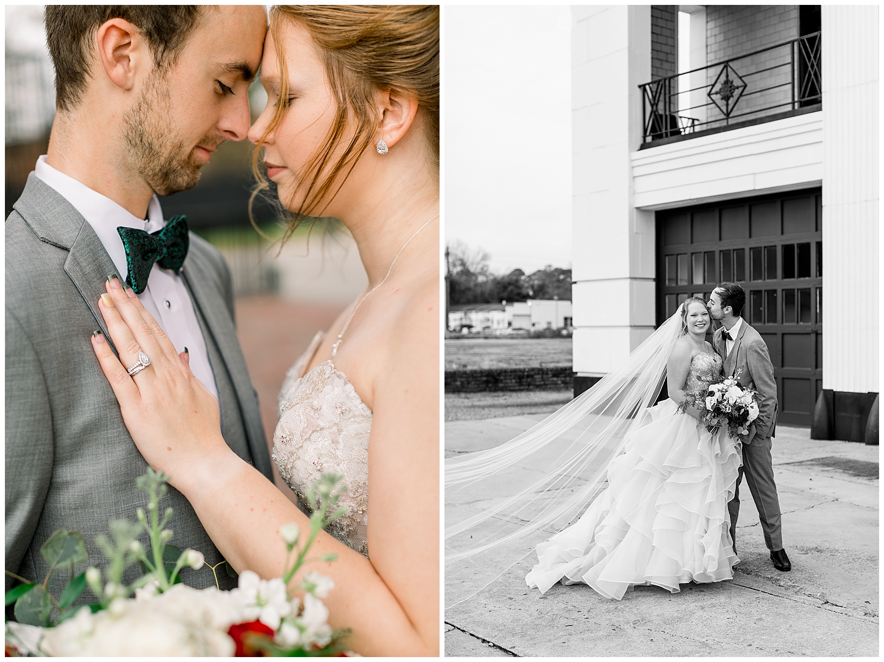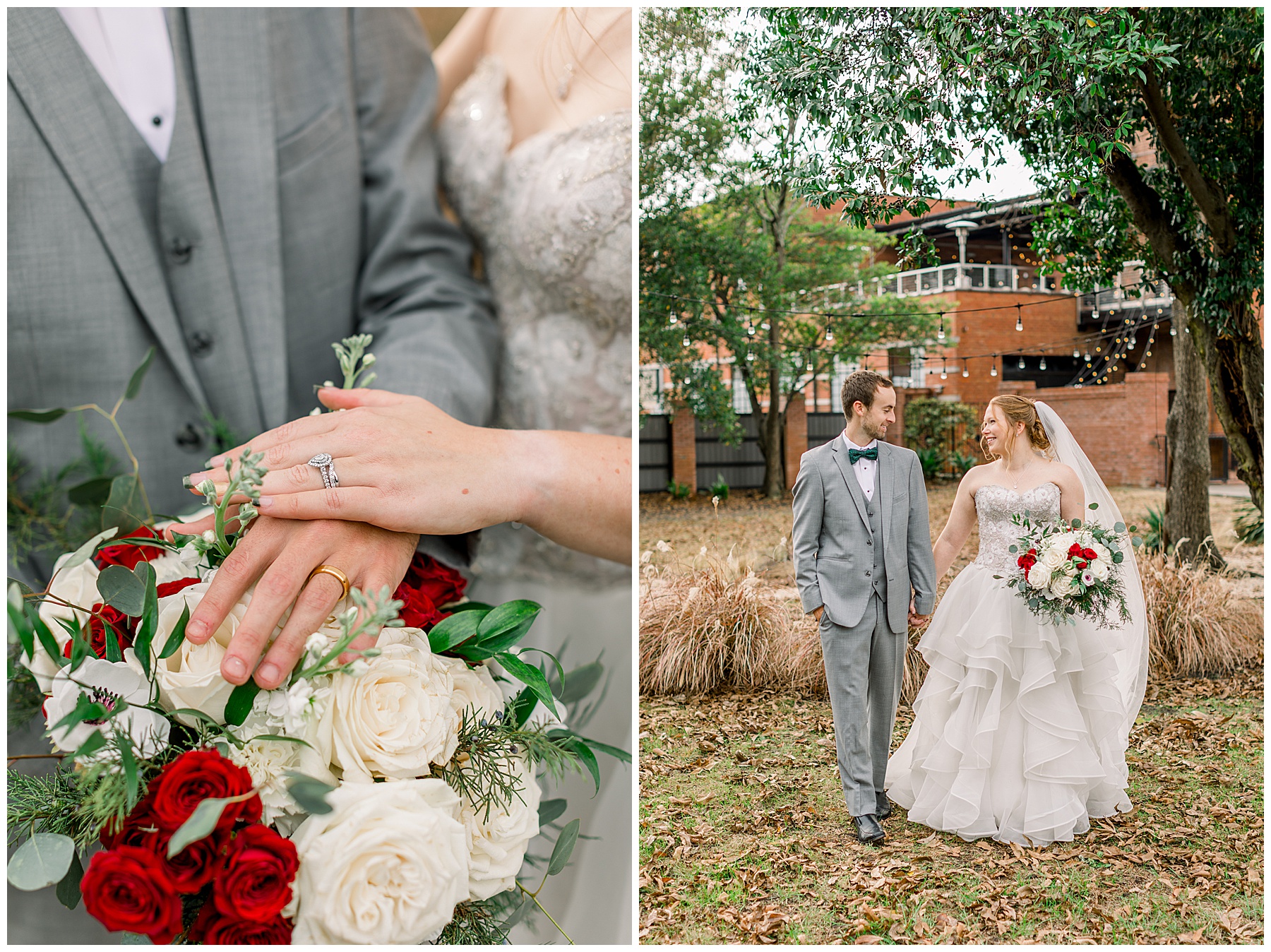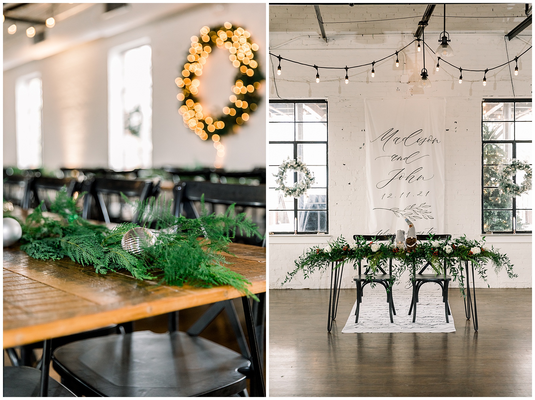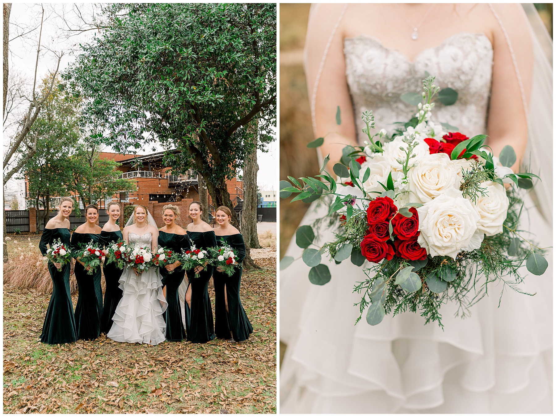 Madison & John’s wedding was also our LAST wedding of 2021 and FIRST wedding at The Firehouse! They planned for a Christmas/winter themed wedding, but randomly North Carolina weather decided to throw them a humid, 70º degree day! Thankfully it wasn’t TOO hot because the day was overcast and we had some gusts of wind to cool things off.