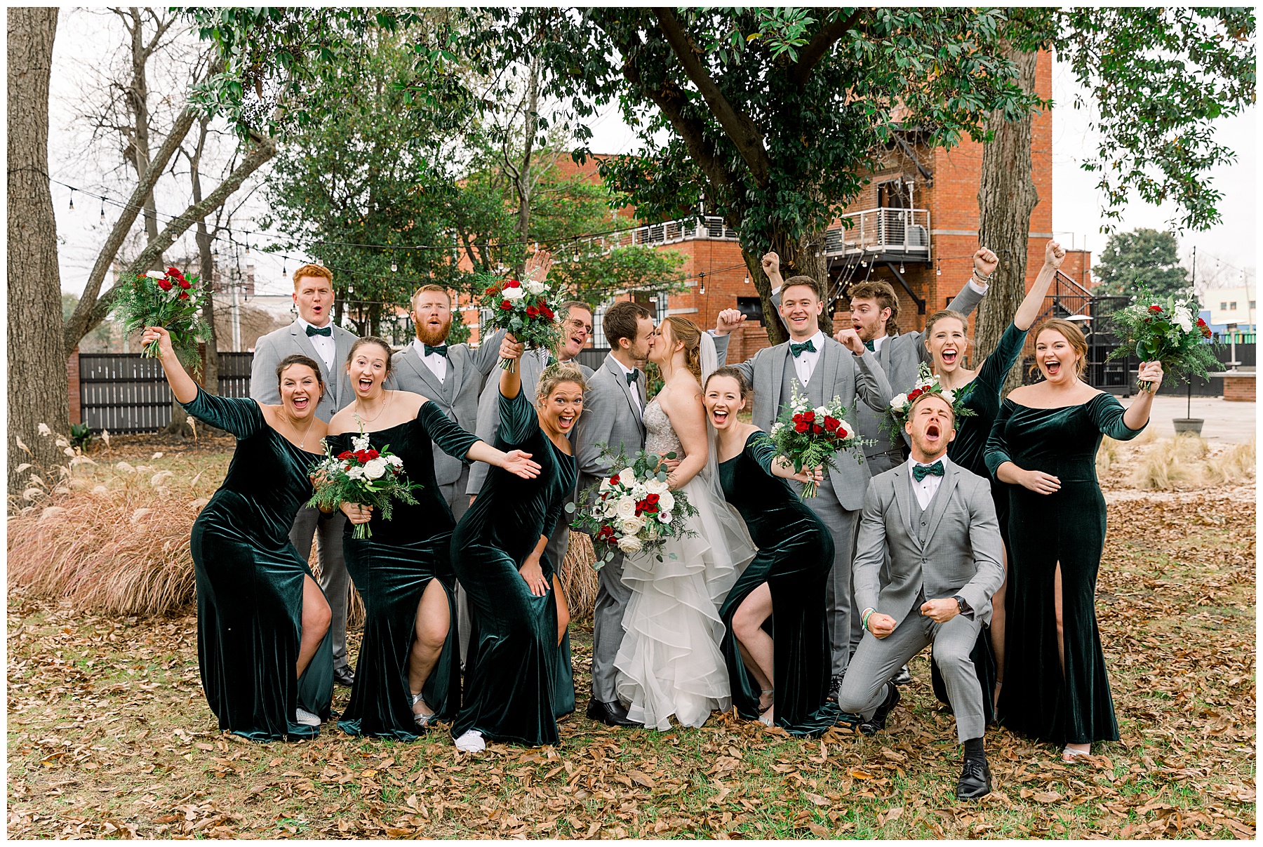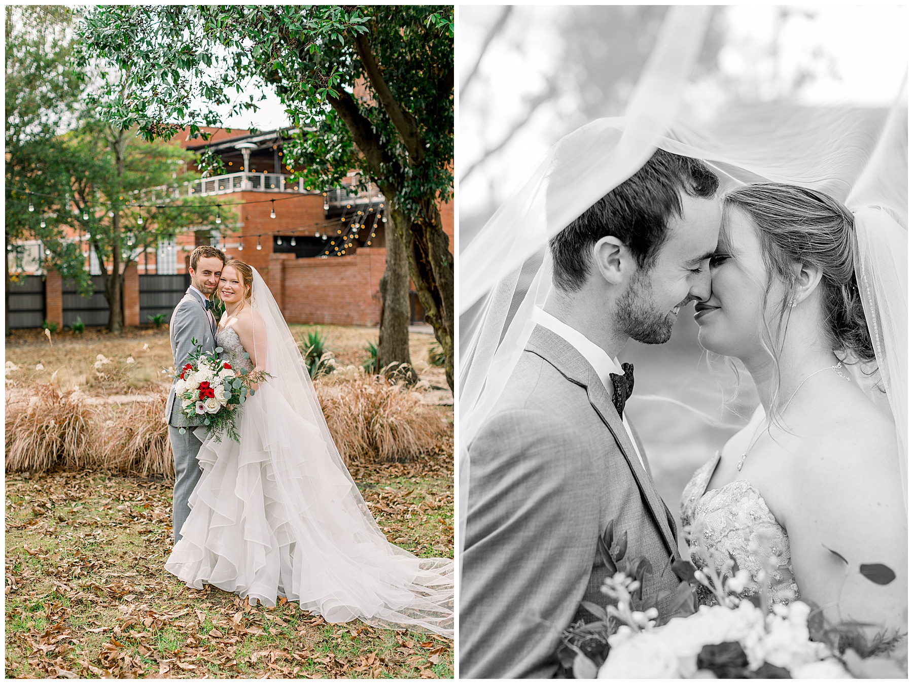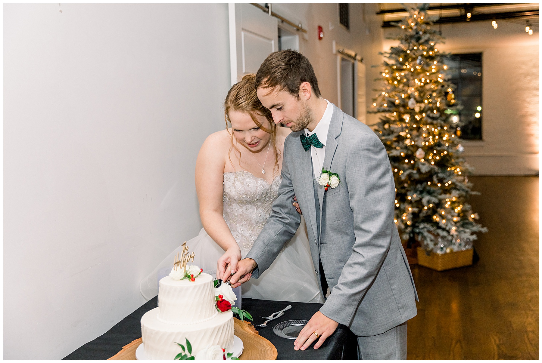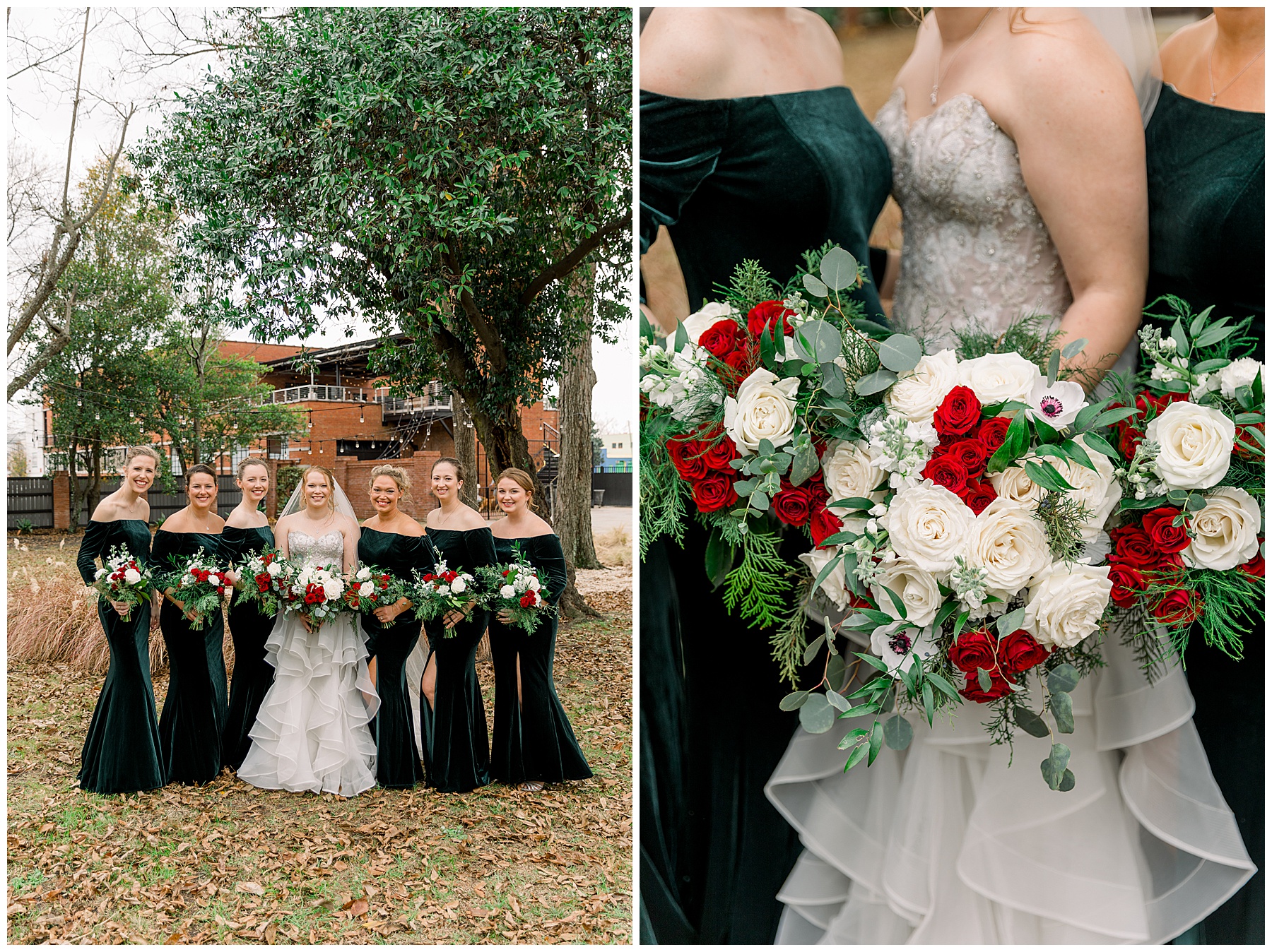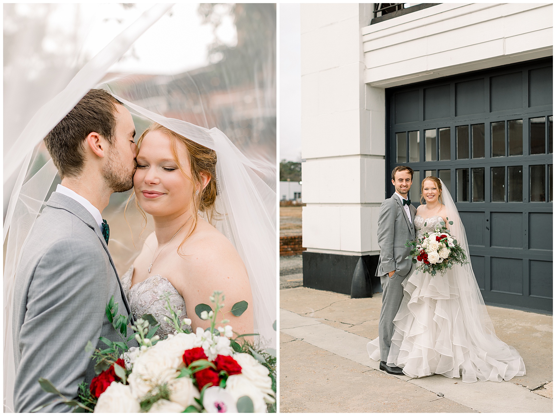 Madison & John’s wedding was also our LAST wedding of 2021 and FIRST wedding at The Firehouse! They planned for a Christmas/winter themed wedding, but randomly North Carolina weather decided to throw them a humid, 70º degree day! Thankfully it wasn’t TOO hot because the day was overcast and we had some gusts of wind to cool things off.