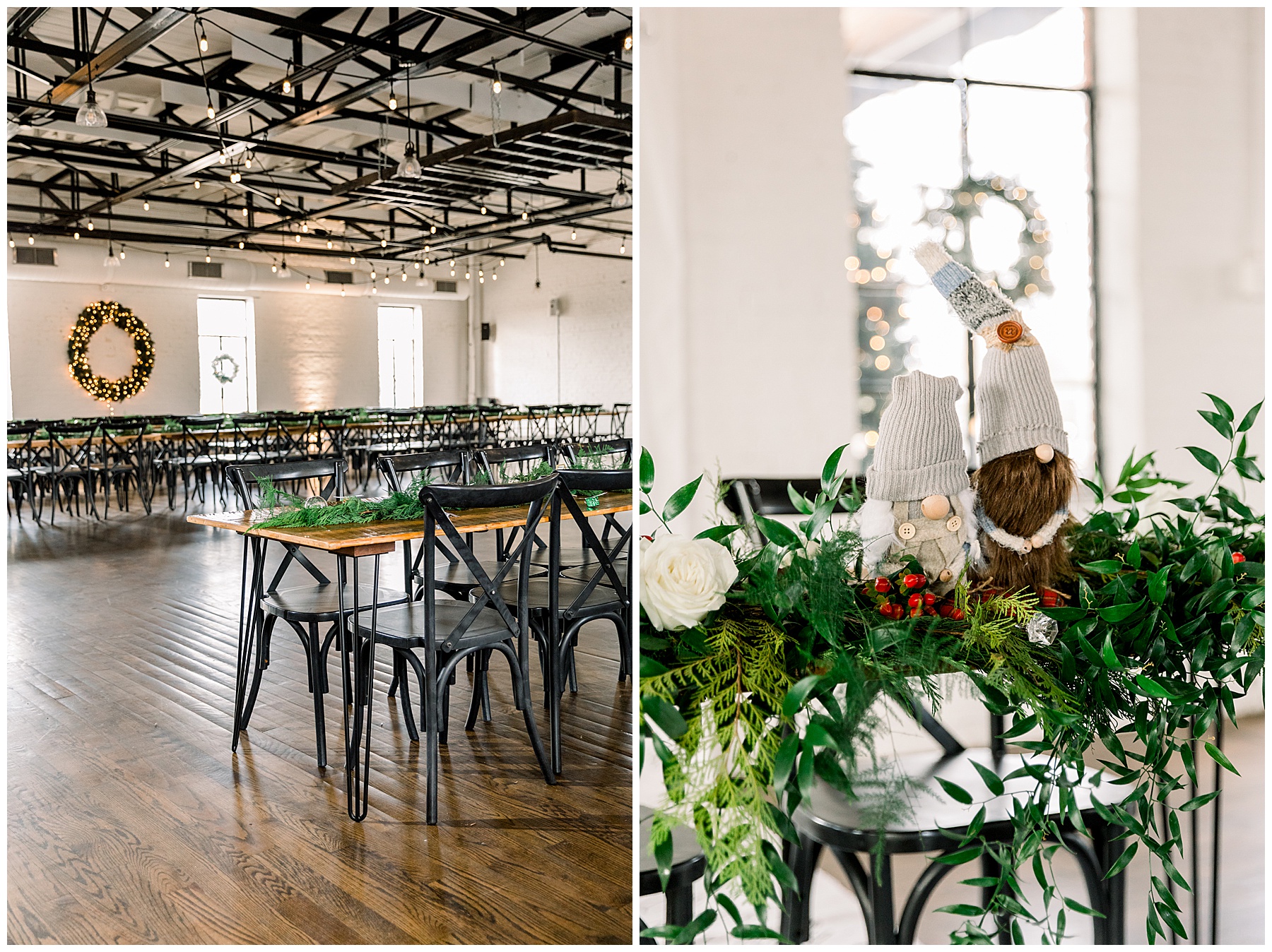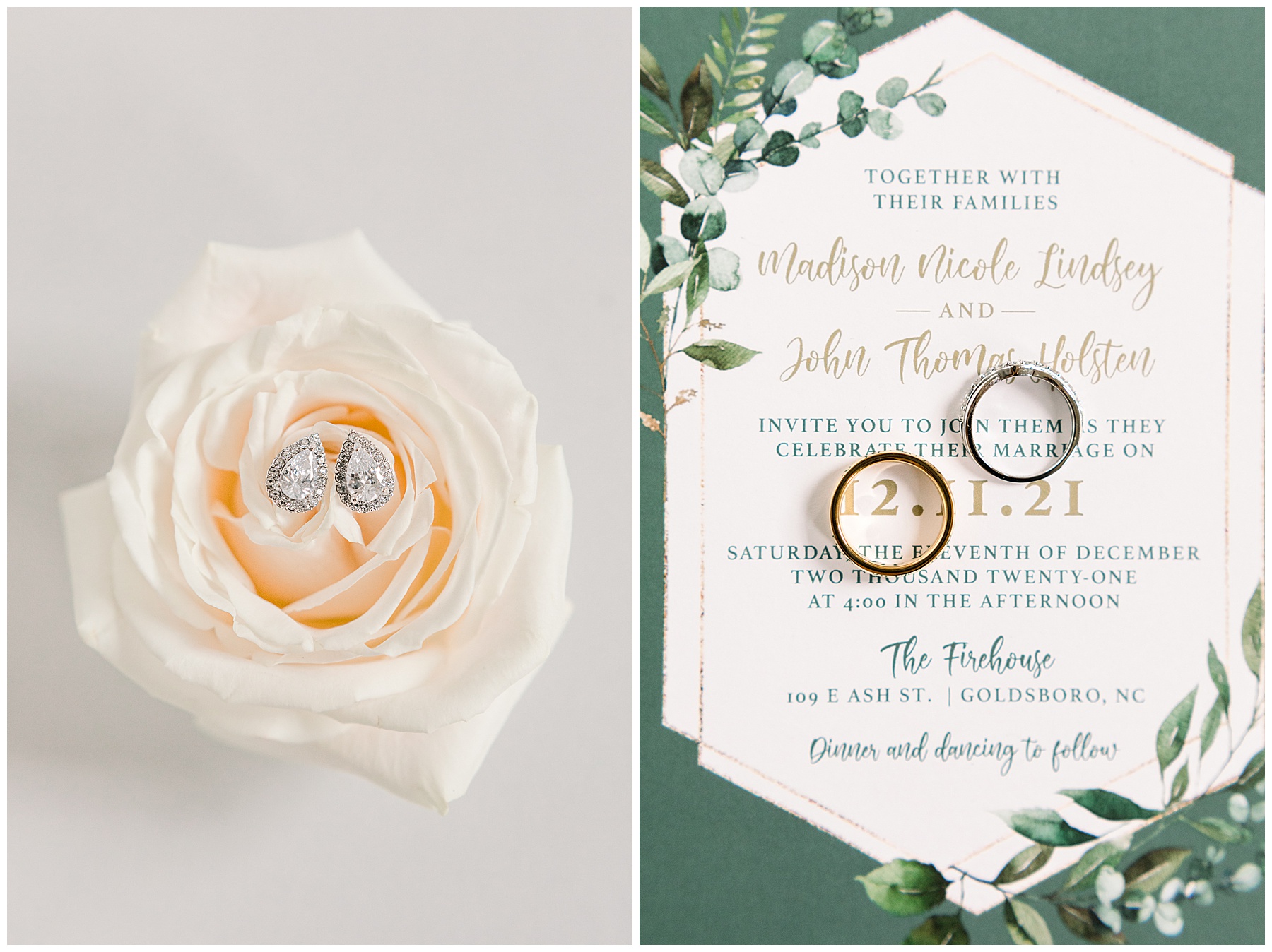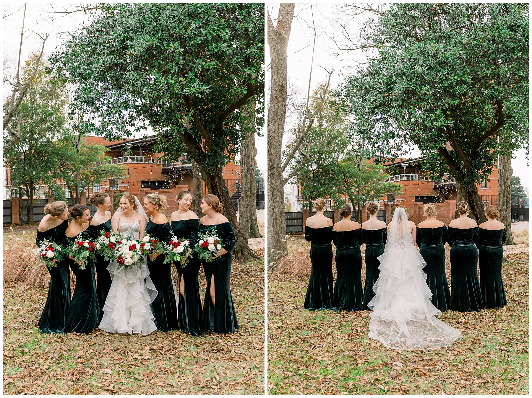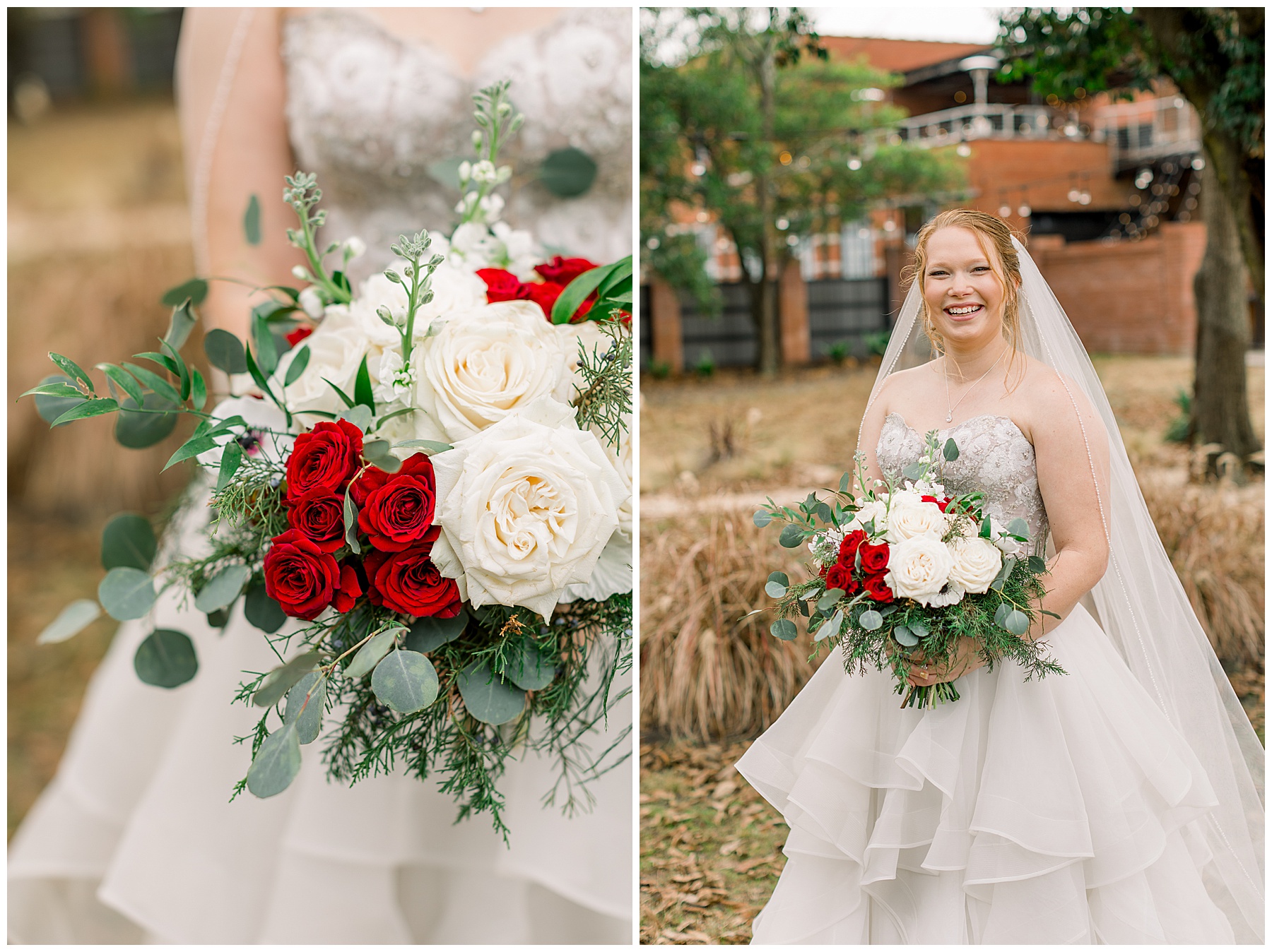 Madison & John’s wedding was also our LAST wedding of 2021 and FIRST wedding at The Firehouse! They planned for a Christmas/winter themed wedding, but randomly North Carolina weather decided to throw them a humid, 70º degree day! Thankfully it wasn’t TOO hot because the day was overcast and we had some gusts of wind to cool things off.