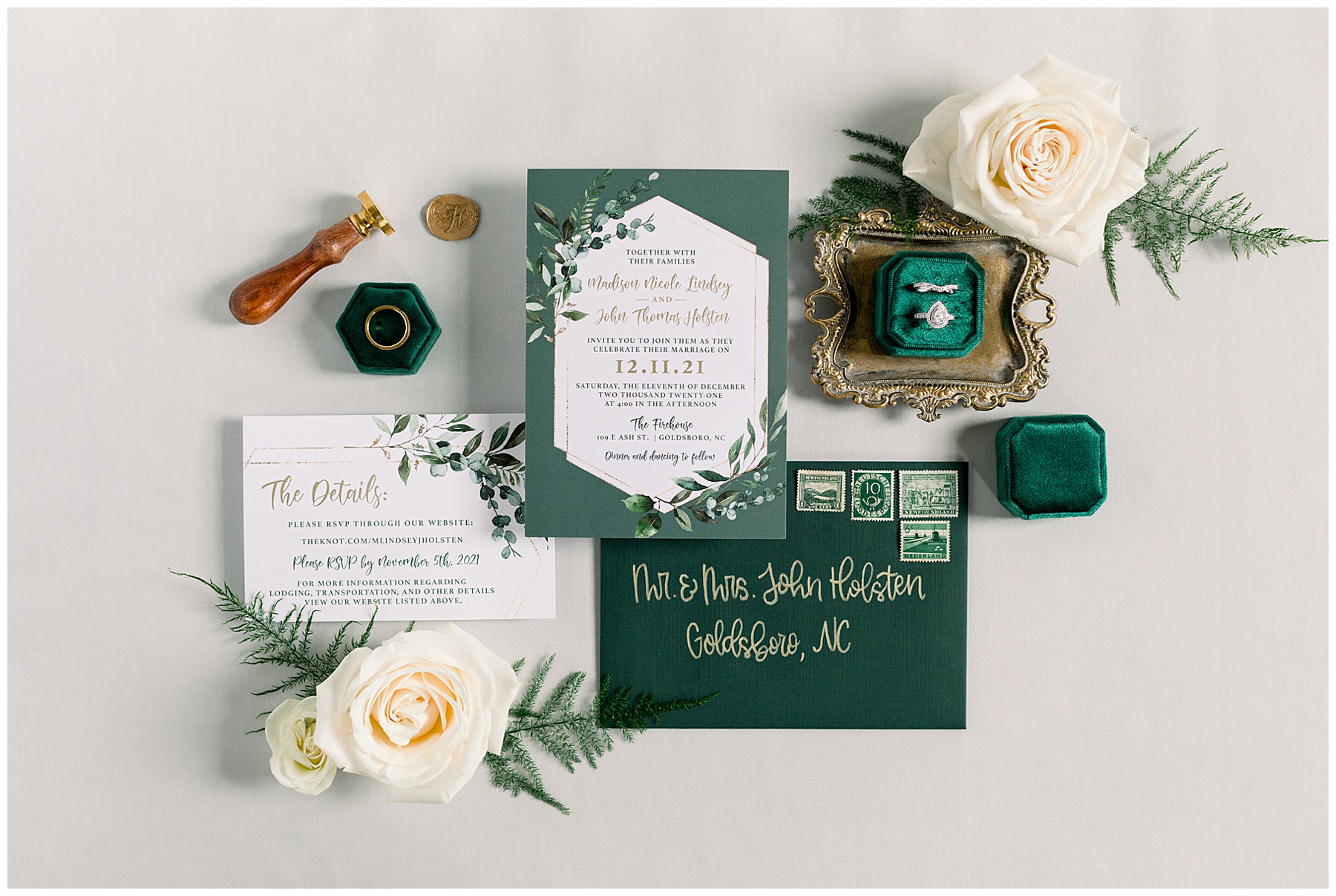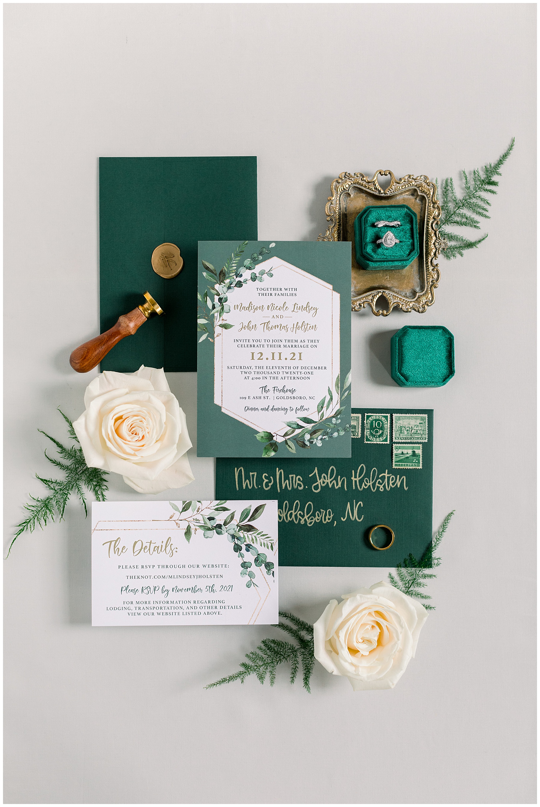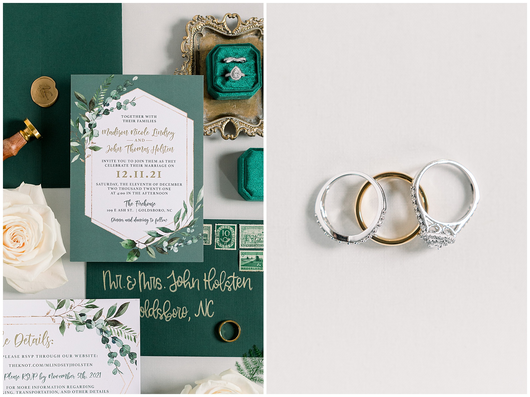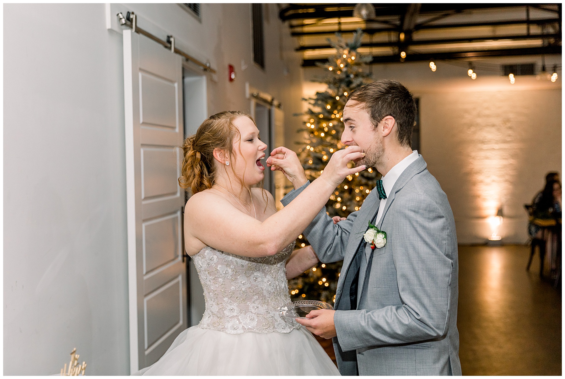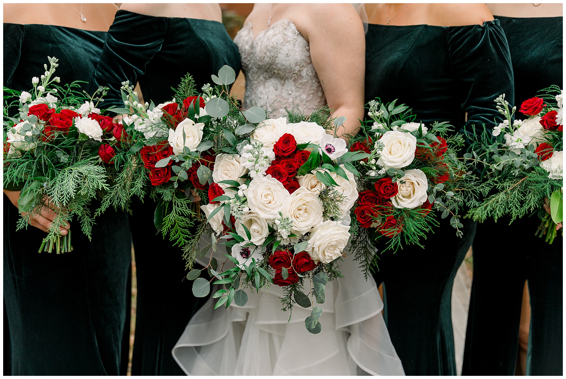 Madison & John’s wedding was also our LAST wedding of 2021 and FIRST wedding at The Firehouse! They planned for a Christmas/winter themed wedding, but randomly North Carolina weather decided to throw them a humid, 70º degree day! Thankfully it wasn’t TOO hot because the day was overcast and we had some gusts of wind to cool things off.