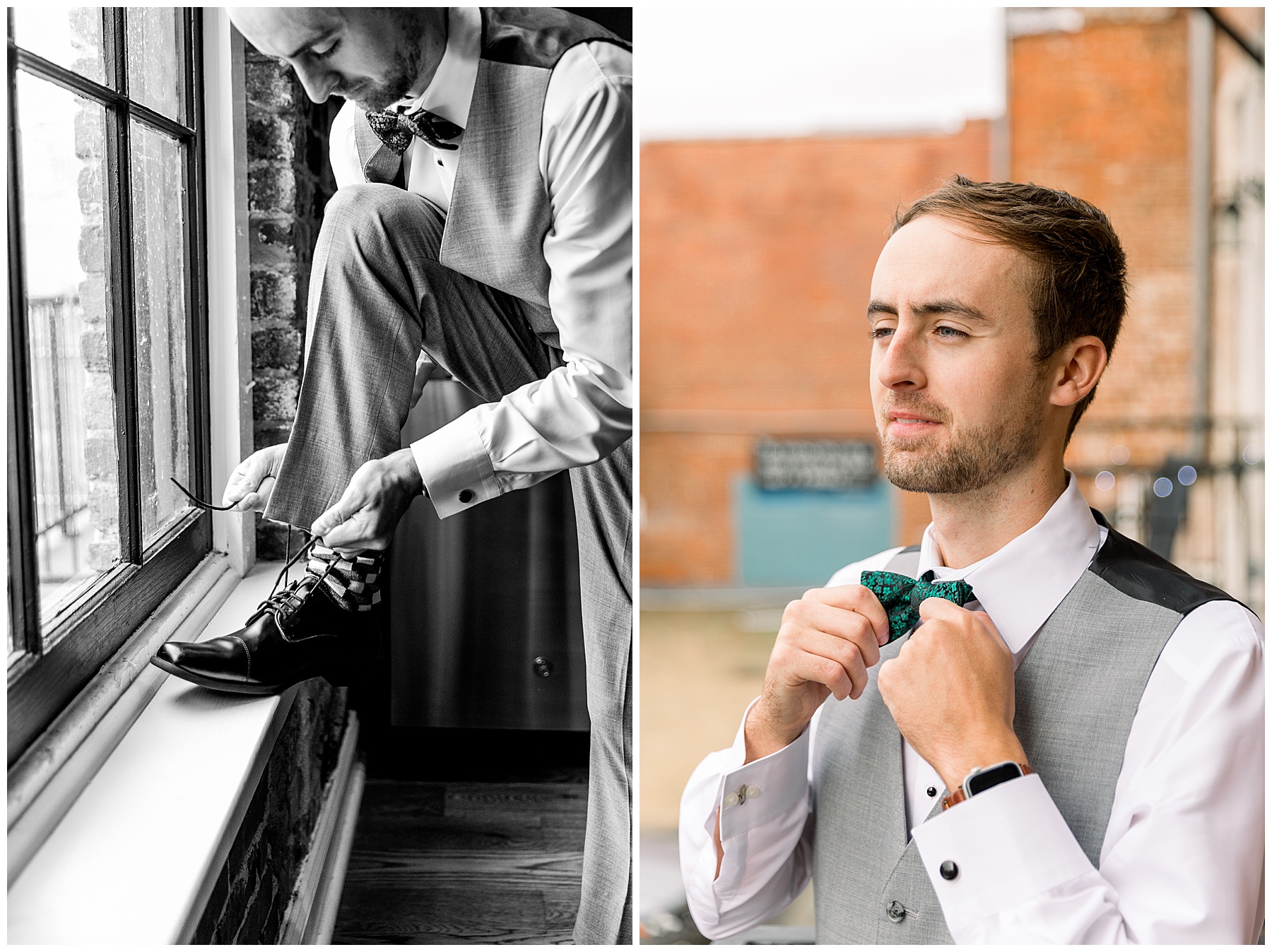 The guys got ready at a little Airbnb downtown, and had a fun time exploring around downtown Goldsboro and taking photos with the urban backdrops!