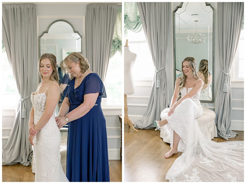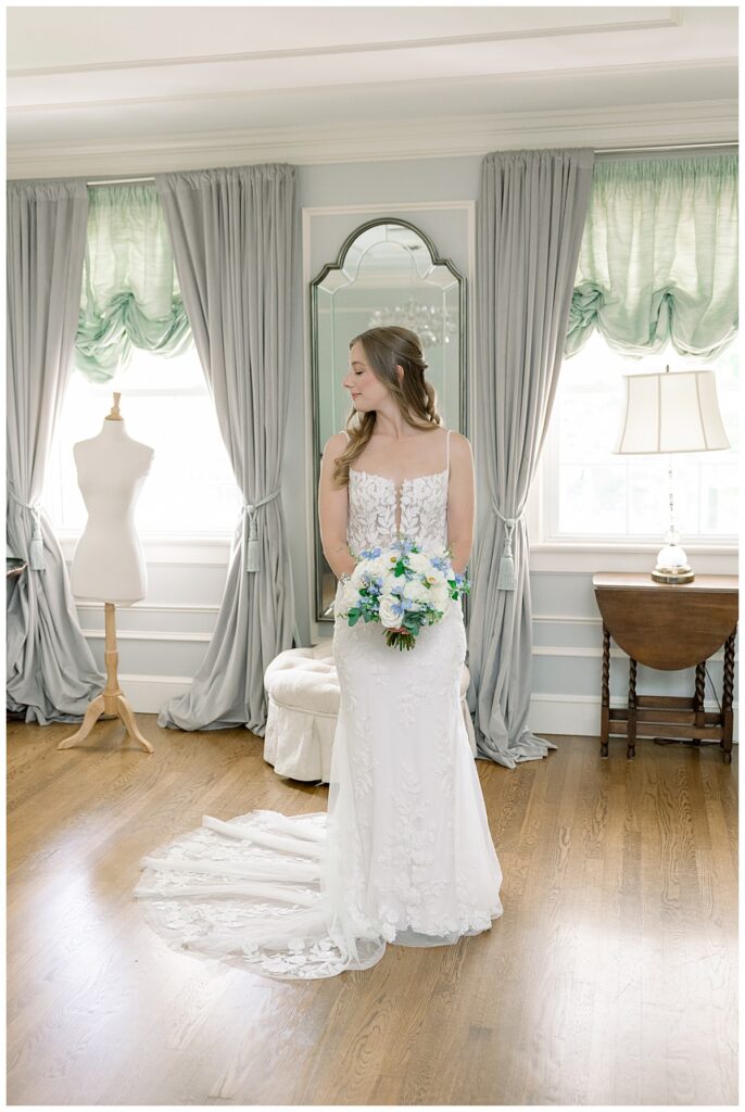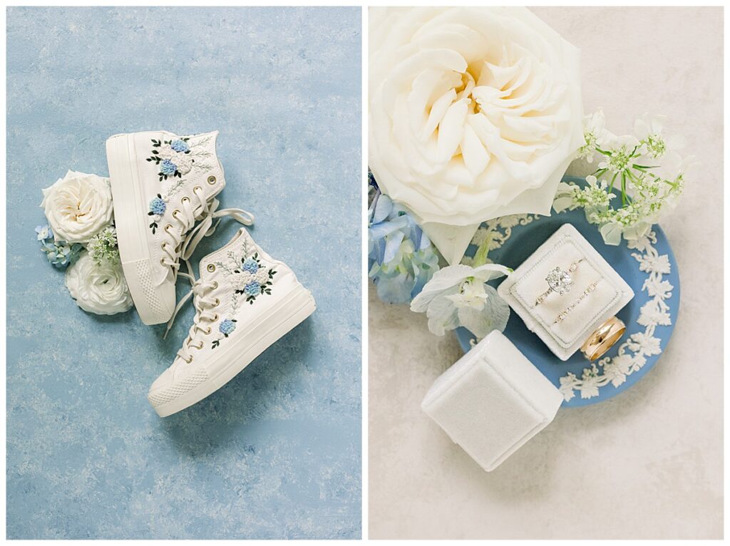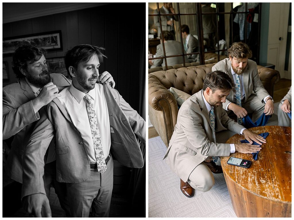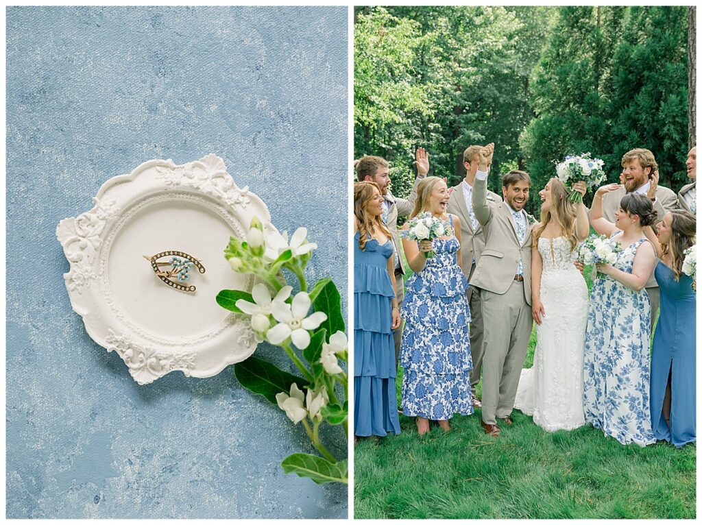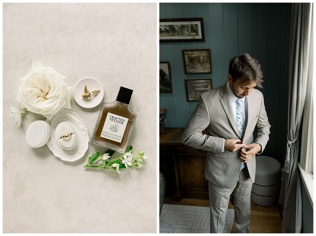 We started off the day at the new Highgrove Cottage (so cute!) and photographed details while the girls got glammed! The Tease + Blush team did an incredible job and even finished early! I loved photographing all of Margaret’s blue items- a few special things to note: Jacob’s ring is his grandfather’s wedding band, the little pin is 5th generation of ladies to wear it on their wedding day in Margaret’s family, and Margaret’s wedding band is custom made – it took weeks without her own engagement ring so they could match it perfectly!