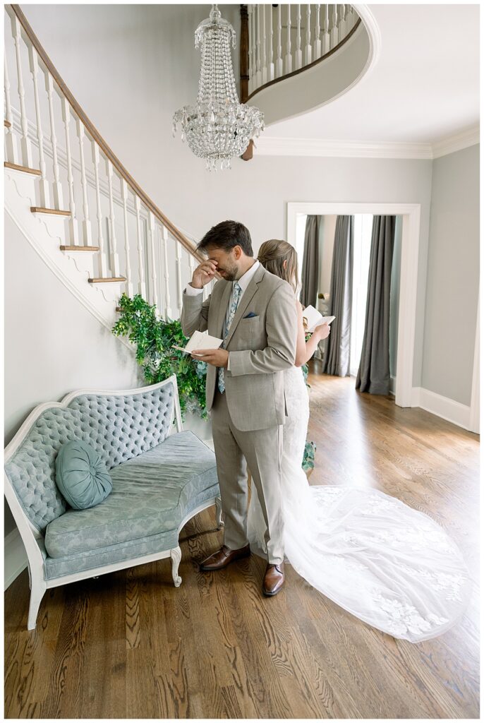 Everyone arrived to the Highgrove Estate and we photographed all of their getting ready. Margaret had a sweet First Look with her dad, Robb (he was amazing and so helpful and kind all day!) and then Jacob + Margaret wrote letters to exchange with each other before their First Look. It was such a special moment to witness their love and emotion.