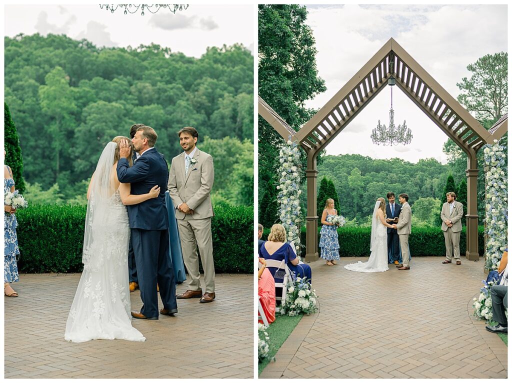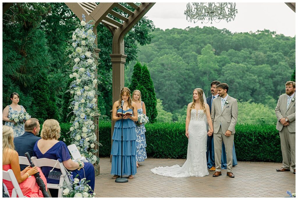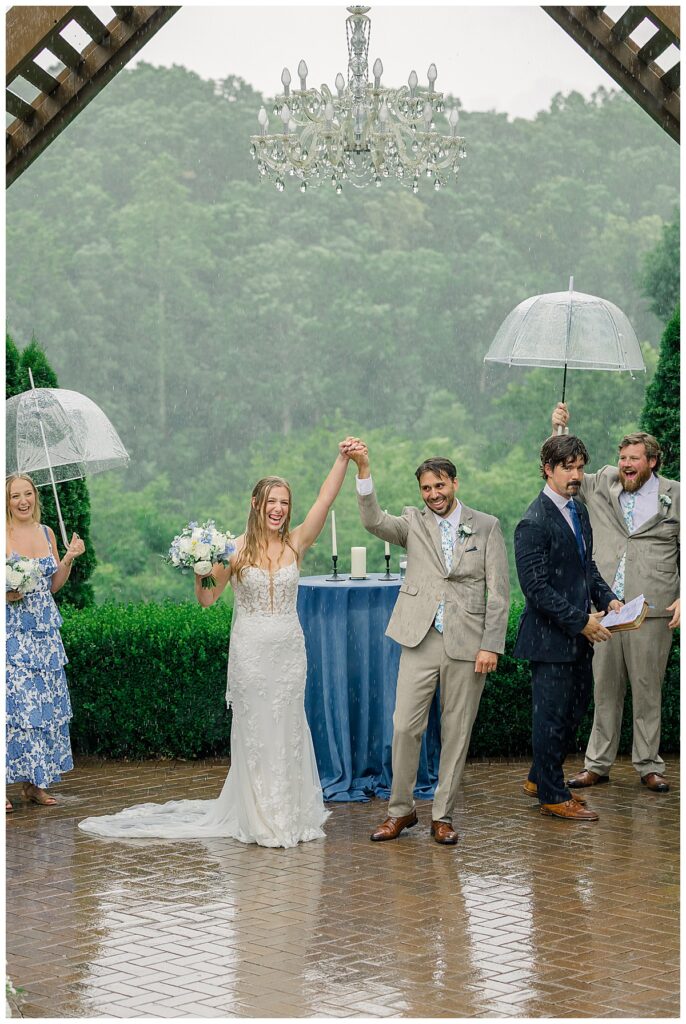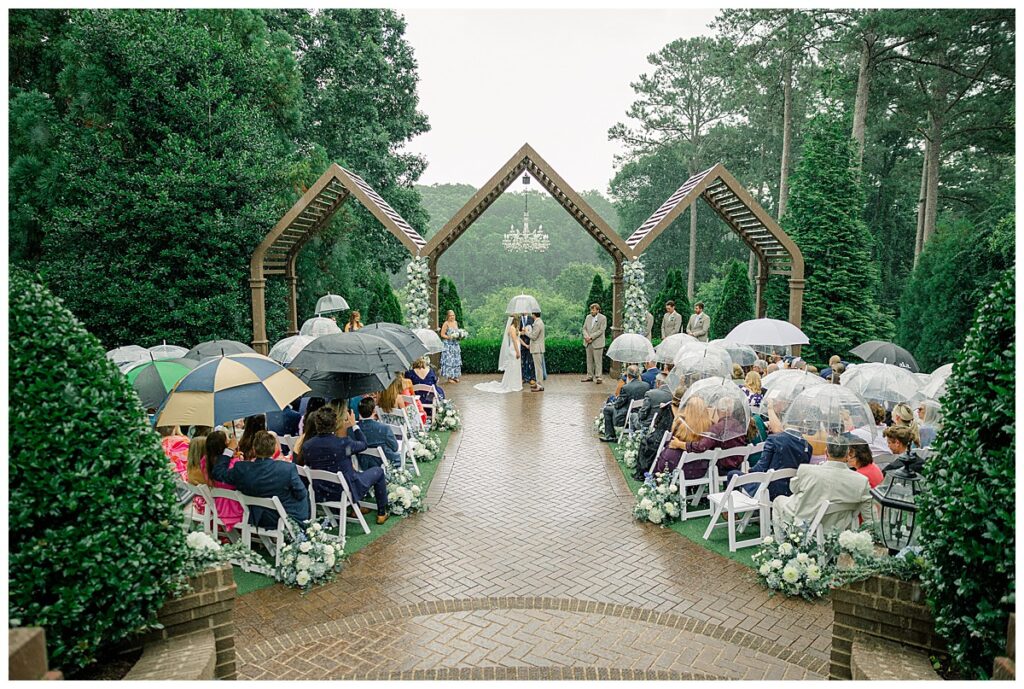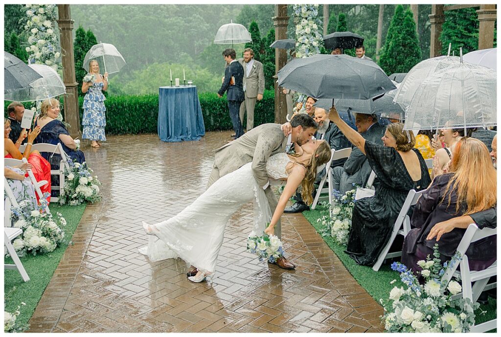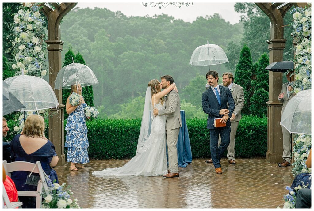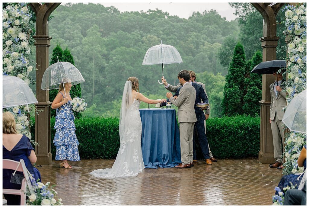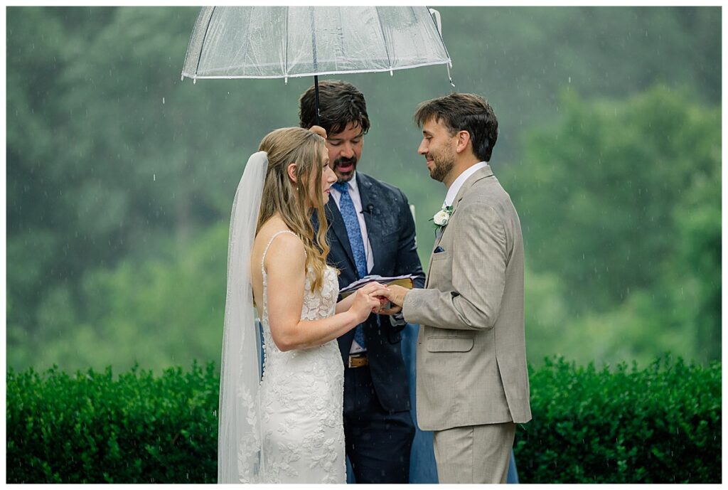 Thankfully, we were able to photograph most of their photos pre-ceremony because of their First Look – because once it was time for their ceremony, a surprise rainstorm was rolling in! Shortly into their ceremony, the rain started lightly, and then started coming down harder!!! Jacob and Margaret were great sports – including all their guests – and everyone just embraced the rain!! What a memory they made even IN THE RAIN!!