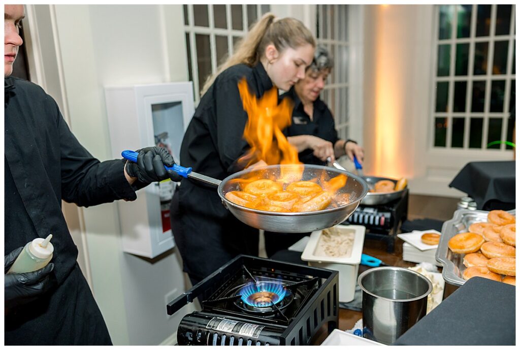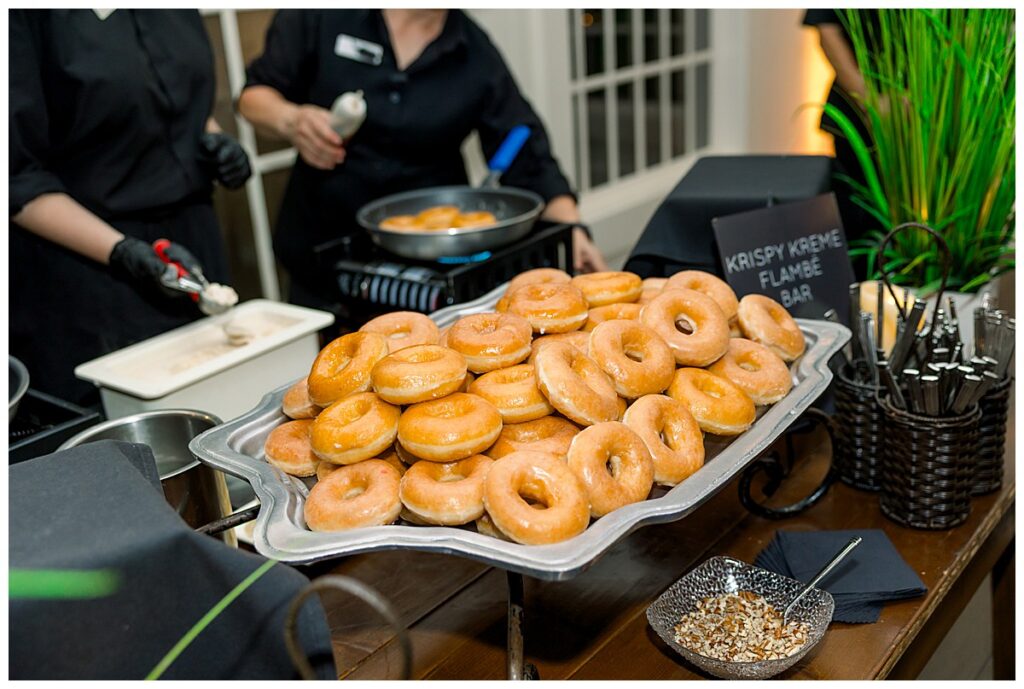 They spoiled their guests with an amazing cocktail hour – my favorite thing I saw was a French Fry Bar, with lots of toppings & freshly fried sweet potato & regular French fries! What a cool idea! The reception kicked off with lots of dancing, an outfit change, a Krispy Came Flambe Bar, specialty drinks (cocktail napkins with their pup, Moose on them!) a Photo Booth, and sweet speeches/toasts too. It was awesome to see such a fun crowd, and also to hear their family/friend talk about what incredible people Jacob & Margaret are.